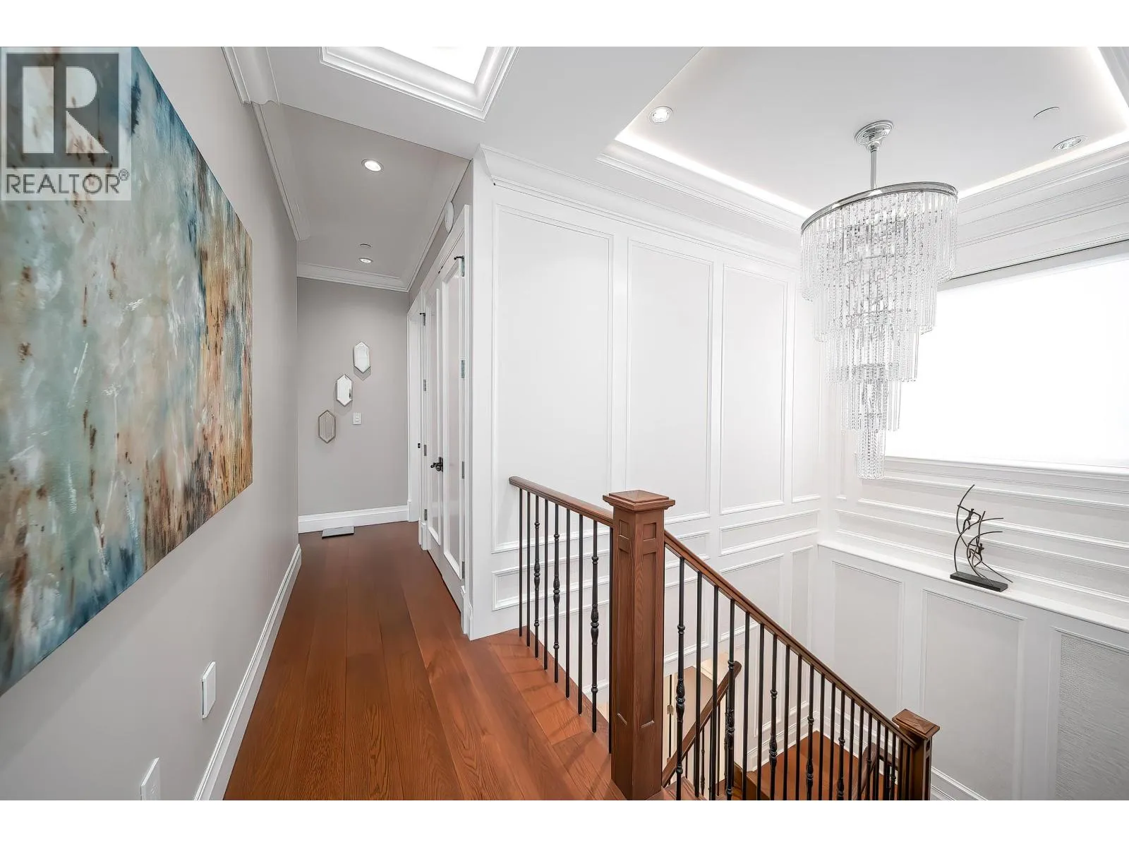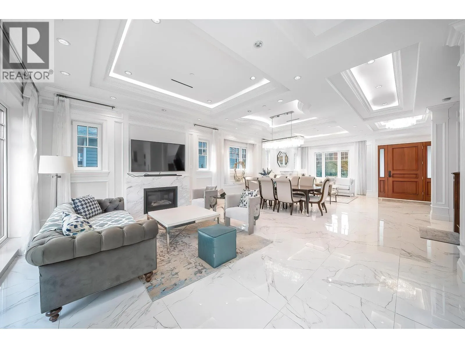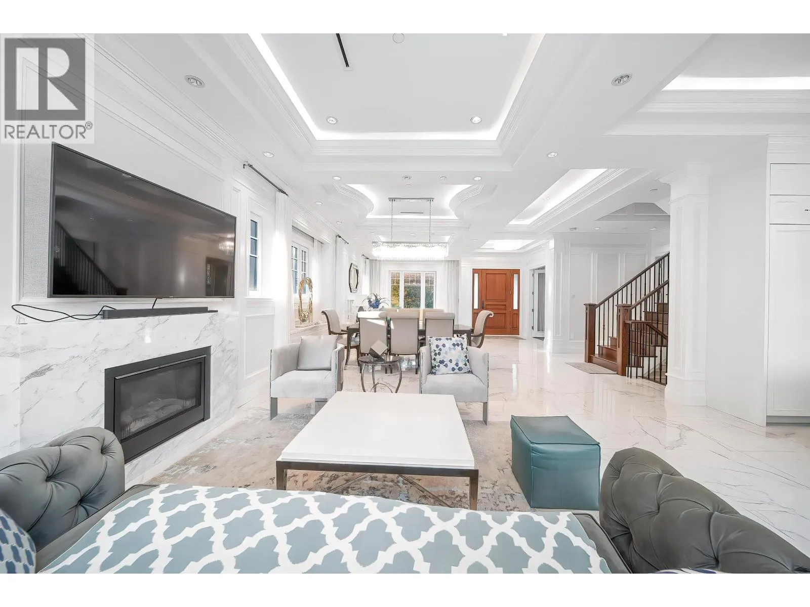 Stunning near-new Kerrisdale home offering 6 bedrooms and 7 bathrooms with a well-designed, spacious layout. Features include high ceilings, premium finishes, and elegant detailing throughout. Gourmet kitchen with high-end appliances and custom cabinetry, ideal for family living and entertaining. Bright living and dining areas open to a beautifully landscaped private backyard. Upstairs offers generous bedrooms with ensuites, including a luxurious primary suite with spa-inspired bathroom and walk-in closet. Fully finished basement provides additional living space. Situated on a rare 60´ lot on a beautiful Kerrisdale street, surrounded by newer luxury homes. Prime location close to Crofton House, Magee Secondary, Kerrisdale shopping, dining, community centre, and parks. (id:27476)