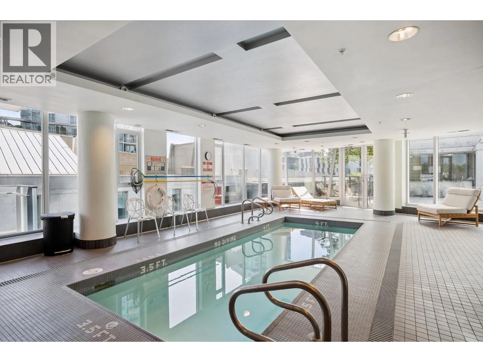 This exquisite 1-bedroom, 1-bathroom residence showcases exceptional quality and design throughout. Enjoy a sleek Italian Dada kitchen with premium Gaggenau appliances, brushed hardwood flooring, and a luxurious bathroom adorned with Italian marble slabs and glass walls. High ceilings and floor-to-ceiling windows fill the home with natural light, creating a spacious and elegant atmosphere. Residents enjoy first-class amenities including a fully equipped gym, swimming pool, saunas, and 24-hour concierge service. The unit comes with 1 parking space, 1 storage locker, and an assigned bike storage on the parking level. Perfectly located just steps to the Coal Harbour Community Centre, Seawall, Stanley Park, and a short walk to the financial district. This rare offering is ideal for those seeking a work-from-home lifestyle - with the flexibility to obtain a business license or use it as a commercial live/work space (contact agent for details). (id:27476)