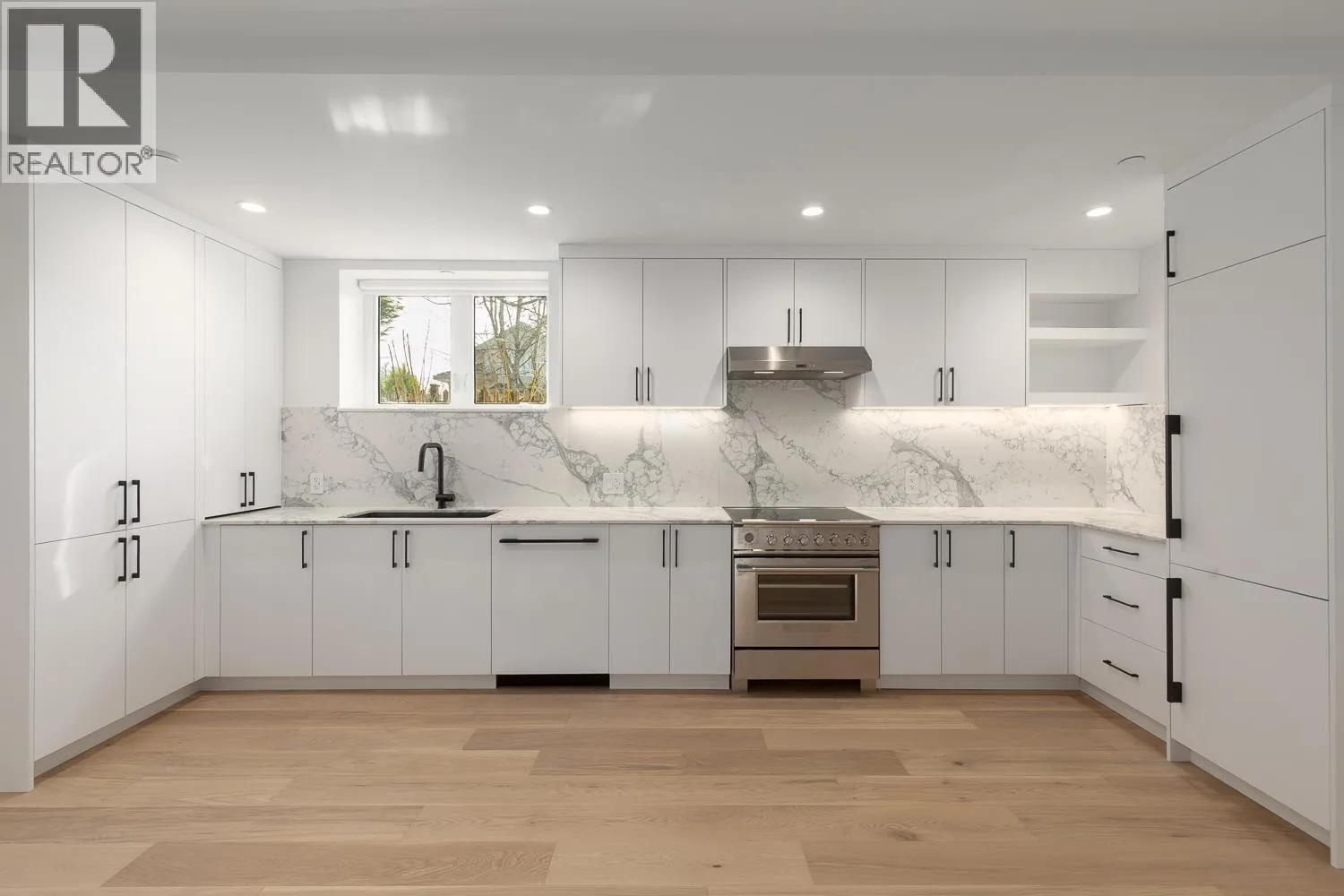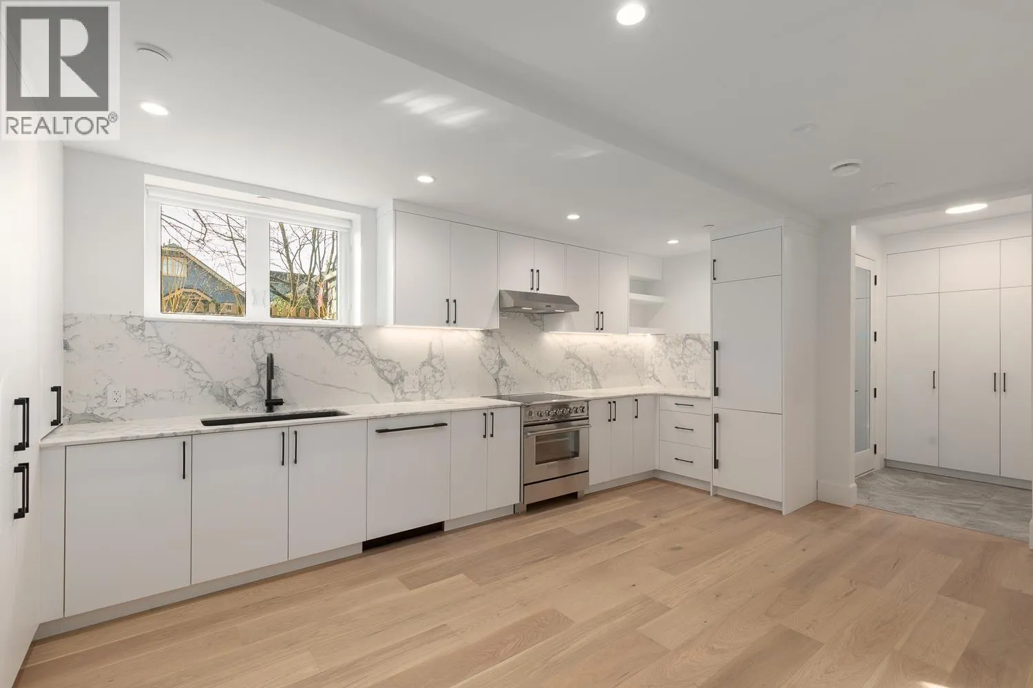 Welcome home to this 2-bedroom, 1-bathroom garden suite that seamlessly blends convenient living with modern design. This functional floor plan features spacious living and dining, a linear Fisher & Paykel kitchen with quartz countertops, sleek cabinetry, and ample storage, 2 well-appointed bedrooms, and in-suite laundry. Heat pump provides year round comfort for heating and cooling. Ideally located, you are in a quiet pocket that is just steps away from Kingsway for all eateries, shops, cafes, amenities, and transit. (id:27476)