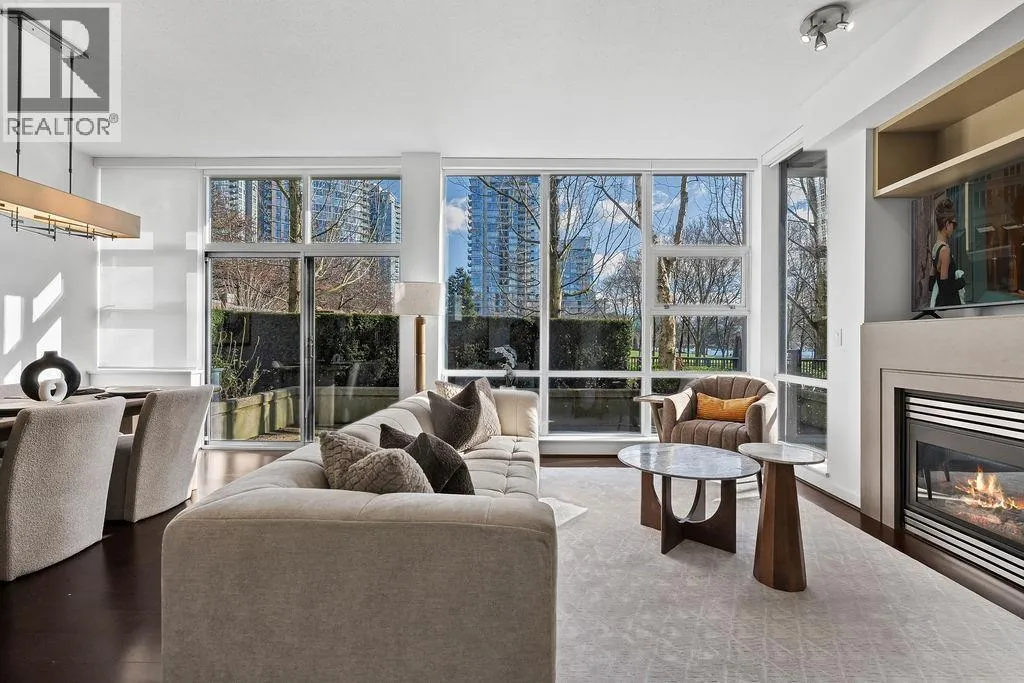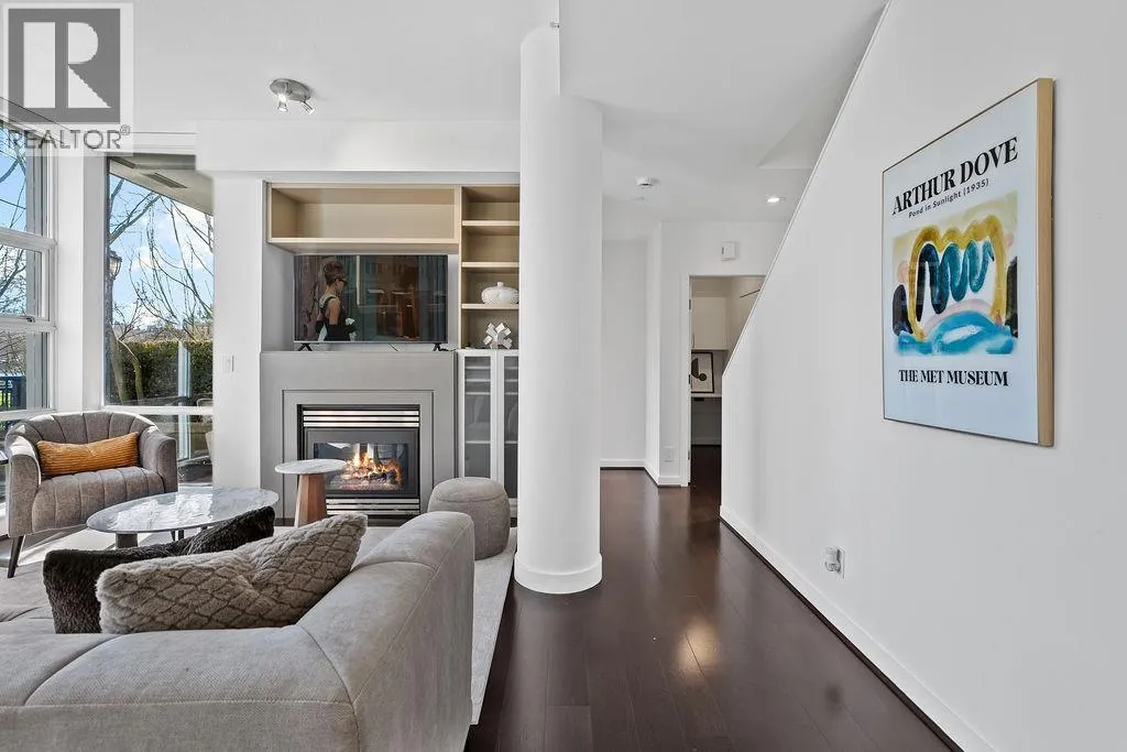 Sophisticated and rarely available FURNISHED waterfront luxury townhome at The Icon in the heart of Yaletown. This 3 bed, 2.5 bath home features over-height ceilings, expansive windows, and an open-concept layout. Main level offers spacious living/dining with gas fireplace, stainless steel appliances with gas range, and a large private patio. Upstairs includes 2 generous bedrooms, 2 full baths, and a versatile den/3rd bedroom. Balcony overlooks George Wainborn Park and the Vancouver Seawall. Amenities: pool, hot tub, gym, theatre, 24 hour concierge. 1 parking spot. Professionally managed by RE/MAX Crest Realty. Make this HOME today! Minimum lease 3 months...maximum stay 3 months. (id:27476)