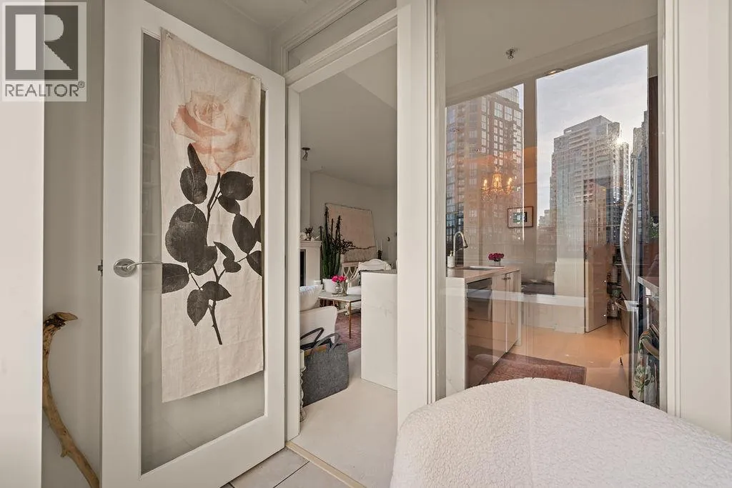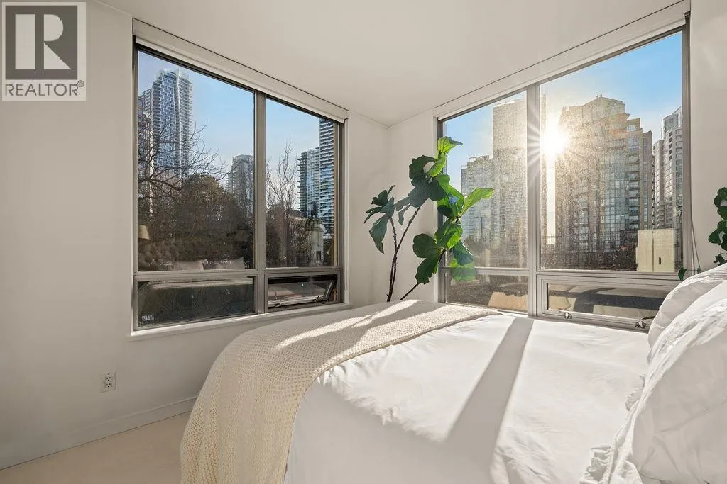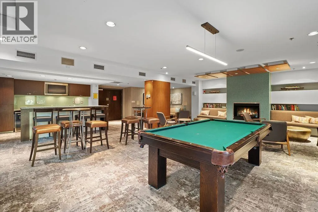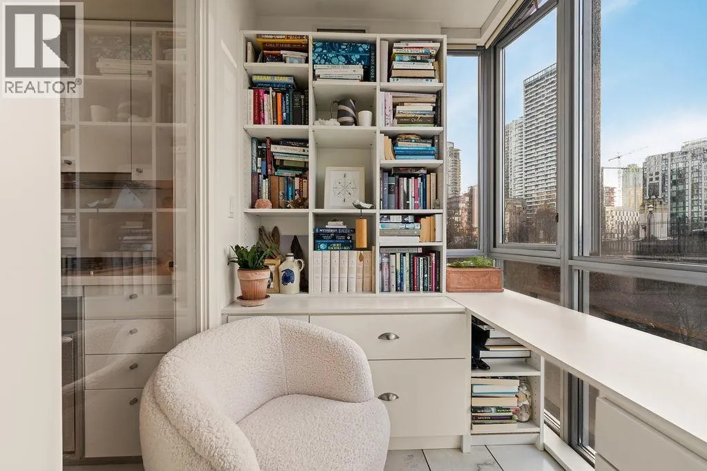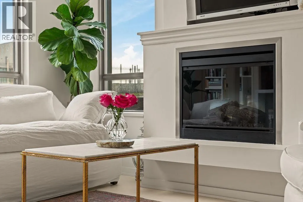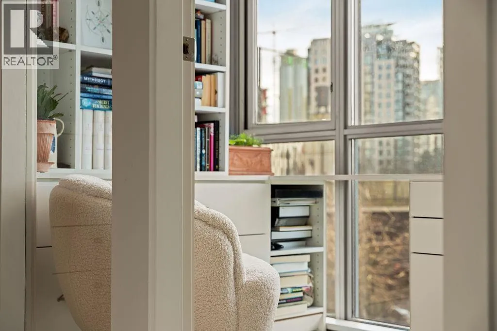 Experience refined coastal living at Alvar, in sought-after BEACH DISTRICT! This beautifully renovated 1 BED + DEN home offers an elegant, open-concept layout in one of the BEST BUILDINGS in the area. Expansive windows flood the space with natural light, complementing the airy 9-foot ceilings and the sophisticated white interior feels warm, welcoming & effortlessly timeless! Storage is abundant with a huge pantry and storage locker. The den/office with built-ins creates the perfect work-from-home retreat. Cozy fireplace anchors the living space, adding charm & comfort. A/C, 1 parking and pet-friendly (2 pets), it's a dream! Building amenities include a BBQ, Gym, Media Room, Hot Tub.Every detail has been carefully curated, resulting in a space that feels elevated, serene, and move-in ready. (id:27476)