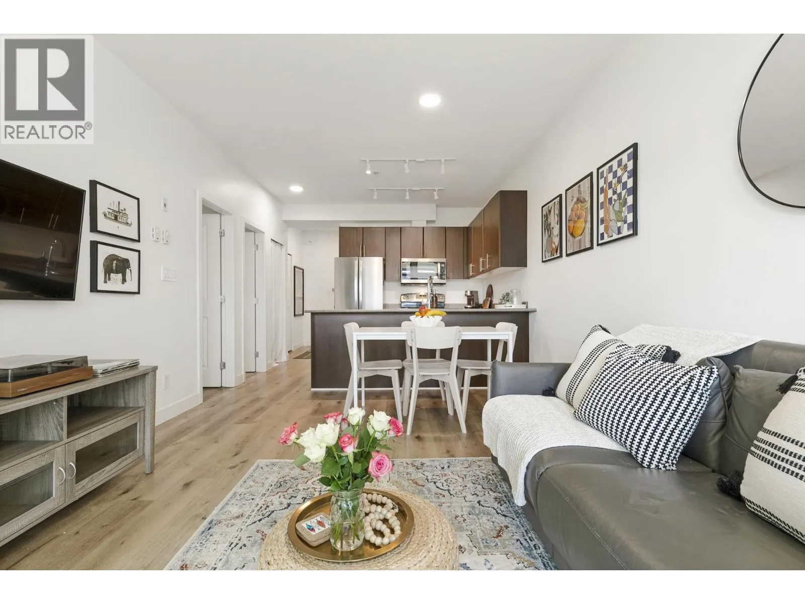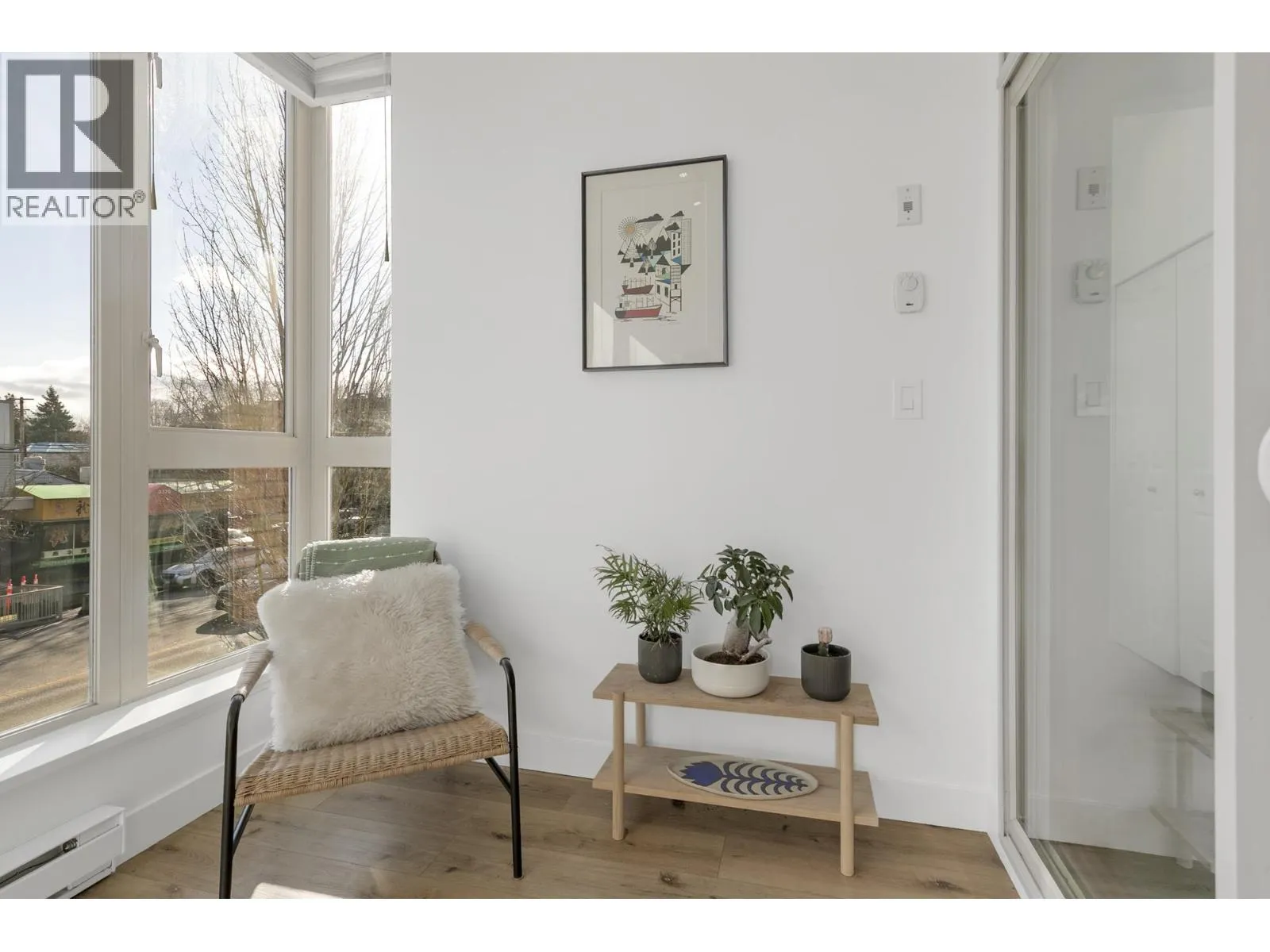 Welcome to Mondella in the heart of the vibrant Fraser neighbourhood. This bright 834 sqft 2 bed, 1 bath +solarium+ flex/storage home offers an efficient open-concept layout with 9' ceilings and large east-facing windows that fill the space with natural light. Thoughtful updates include luxury vinyl flooring, fresh paint, new lighting, blinds, and newer W/D. The versatile solarium provides a perfect year-round home office or additional living space, while generous in-suite storage adds everyday convenience. Built in 2008, this well-managed, pet- & family-friendly building (2 dogs or 2 cats) features secure parking and an amenity room with patio. Enjoy an unbeatable 96 Walk Score steps to parks, schools, transit, and Fraser Street's popular cafes, restaurants, and shops. (id:27476)