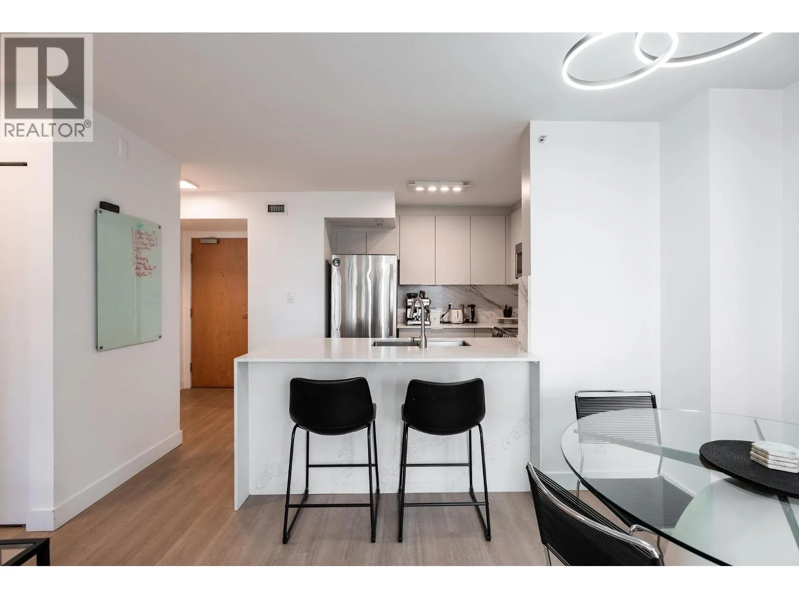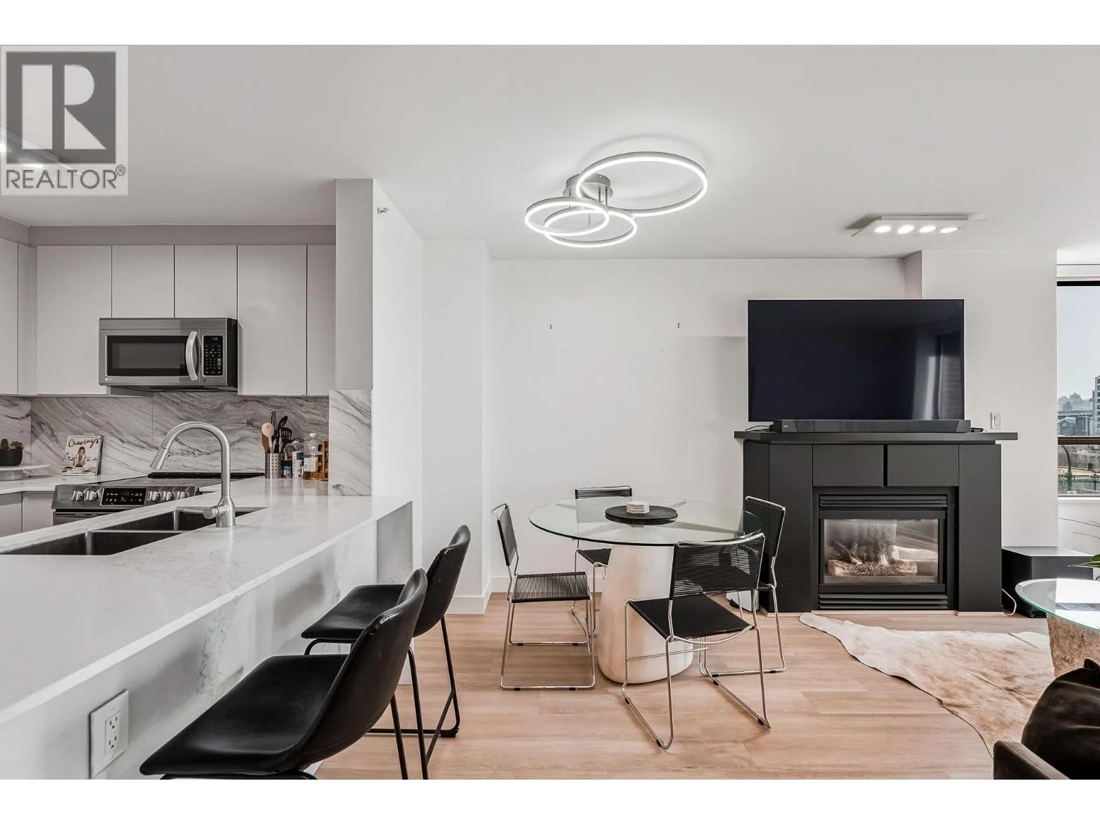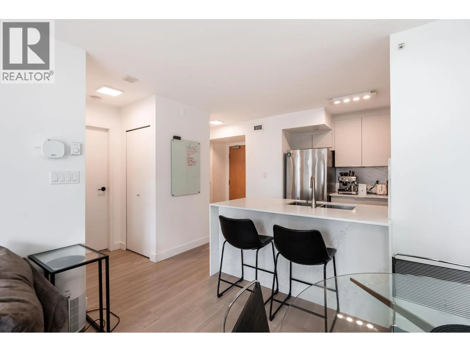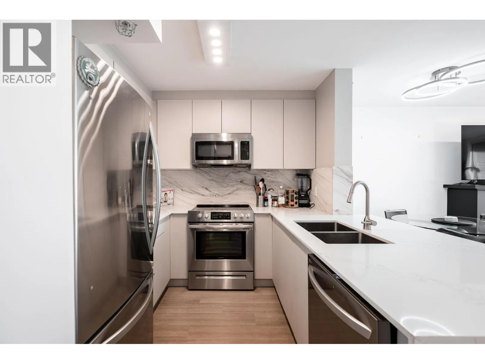 STUNNING FULLY RENOVATED extra-large 1 bed, 1 bath + den + solarium in this highly sought-after, Bosa-built concrete high-rise! Complete top-to-bottom renovation - nothing left untouched. GORGEOUS kitchen with high-end EuroRite cabinetry, quartz countertops & elegant marble backsplash. LUXURIOUS bathroom with heated tile floors for year-round comfort & deep soaker tub. Beautiful LVP flooring throughout, updated lighting & all new appliances & fixtures. Custom closets maximize every inch of space. Solid concrete construction means peace & quiet in your urban retreat. UNBEATABLE LOCATION directly across from Sunset Beach - enjoy walking the sea wall, stunning sunsets & the best of downtown living steps from your door. This is move-in ready perfection. One parking. Pets OK! Don´t miss it! (id:27476)