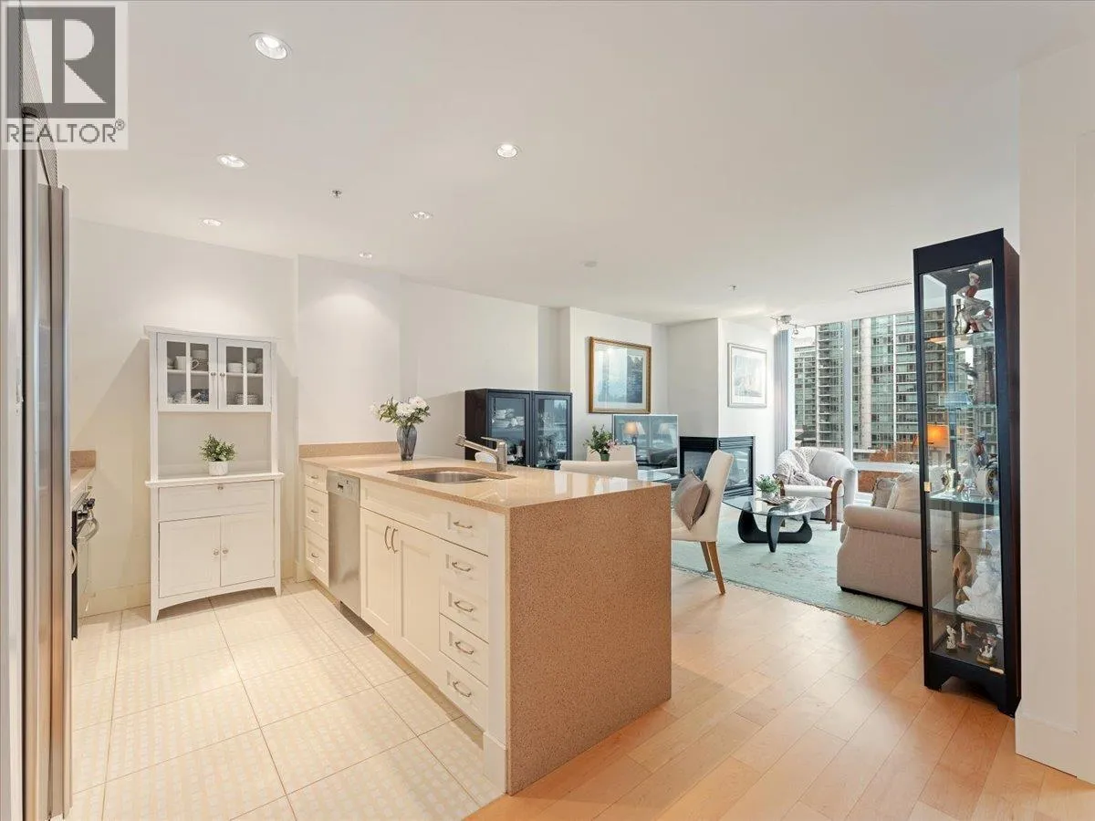 Experience luxury living at Cascina in Coal Harbour. This elegant one-bedroom home offers beautiful views of Coal Harbour, Stanley Park and the North Shore mountains. Fully renovated featuring white kitchen cabinetry, a waterfall island, Caesarstone counters and Sub-Zero/Bosch appliances. The living room includes a gas fireplace, automatic blinds and opens to a balcony with lovely water and city outlooks. Enjoy A/C, high-end hardwood flooring, a spacious bathroom with heated floors, and a generous bedroom that fits a king-size bed. Meticulous condition with access to top-tier amenities: indoor pool, gym, sauna, hot tub, library, party room and 24-hour concierge. (id:27476)