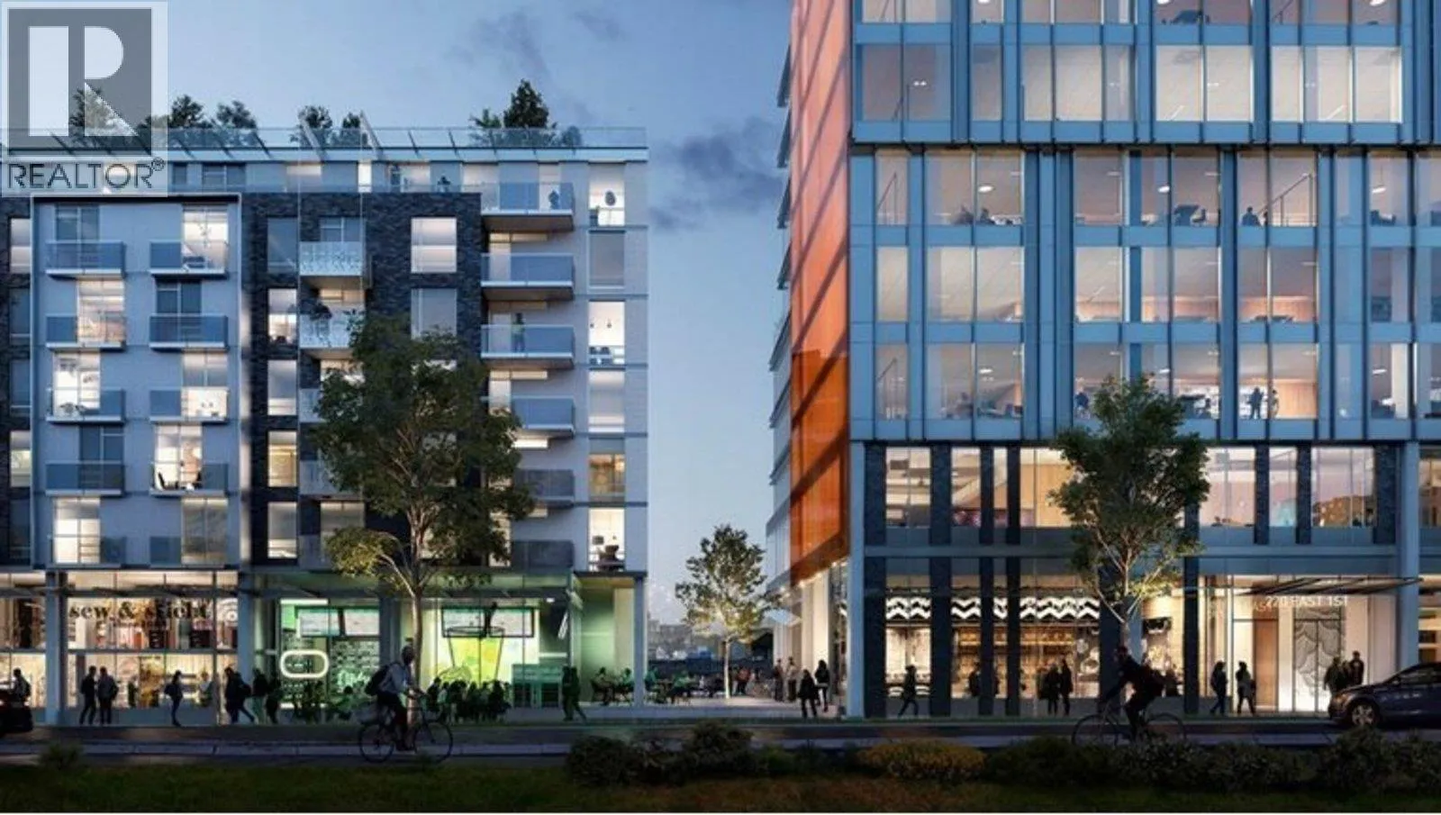 Rare corner, ground-level industrial unit in sought-after FC-2 (False Creek Flats) zoning. This 866.5 sq ft end-cap space offers exceptional exposure to Main Street and pedestrian walkways, with floor-to-ceiling glass frontage and side windows for maximum light and visibility. Features include double pedestrian entry doors, 8'x10' garage-style overhead door, rear door with access adjacent to two Class B loading bays, 600/347V 3-phase power, and capped gas service (2 PSI, up to 500 CFH, sub-metered). Fully built handicap washroom, 1 parking stall included. FC-2 zoning permits a wide range of creative and light industrial uses including food production, design, manufacturing, and research (no general office at grade). Building amenities: large top-floor amenity room with patio, shared washrooms, shower facilities, secure bike storage, and loading access. An outstanding opportunity to seek high-exposure creative industrial space in the heart of False Creek Flats. (id:27476)