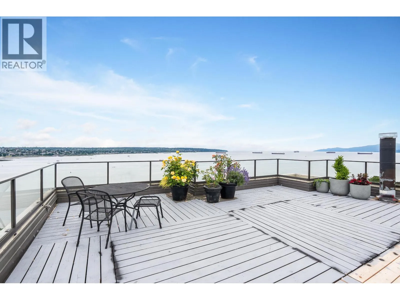 Rare opportunity to own a Fully Renovated Waterfront Home located on Beach Av. just steps from everything the vibrant English Bay/West End has to offer. Enjoy a stunning 360° view oceanfront common roof deck unique only to this building, hot tub, and gym. This tastefully redesigned unit features a stylish kitchen with stainless steel appliances, including a Miele Oven and Cooktop, Granite Counters, Recessed Lighting, Updated Bathroom, Radiant Heat, and Wood Flooring throughout. Flawless floorplan, the only unit that runs the entire length of the floor with 2 covered balconies and windows on both ends, providing great air flow and keeping the unit naturally cool in the Summer. A refined and functional layout in one of Vancouver´s most iconic waterfront buildings. Easy to Show. (id:27476)