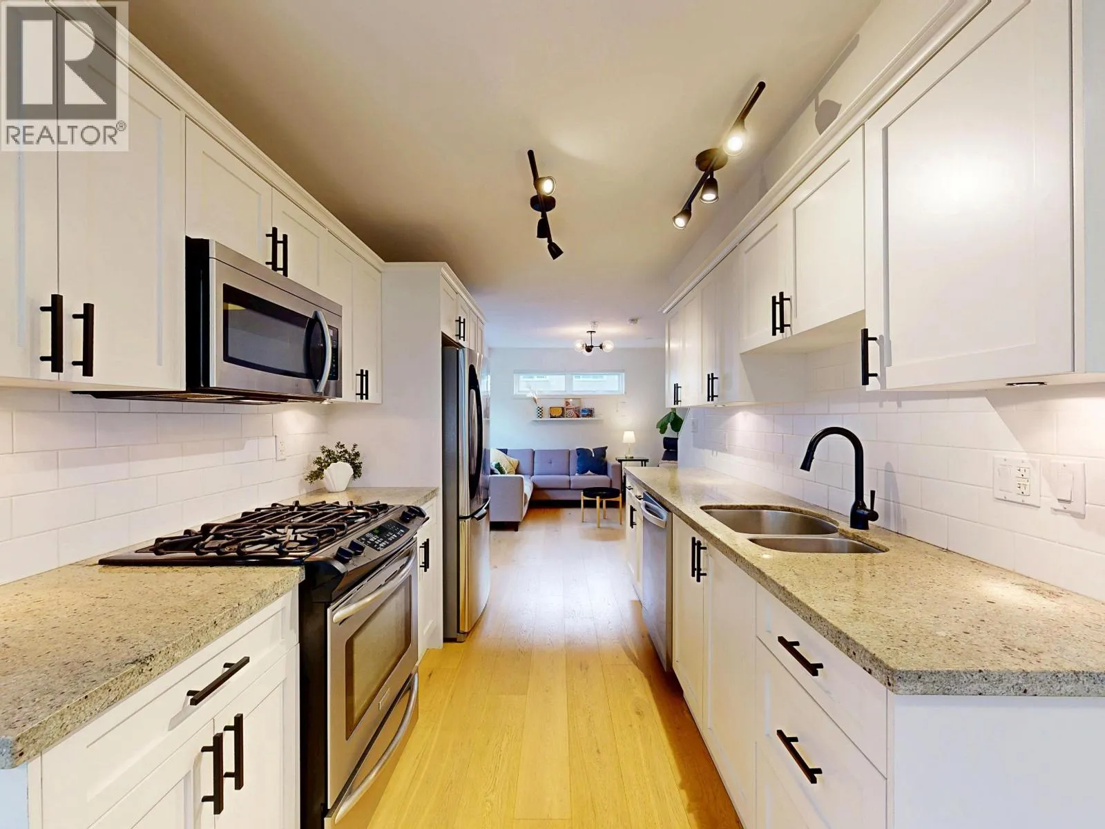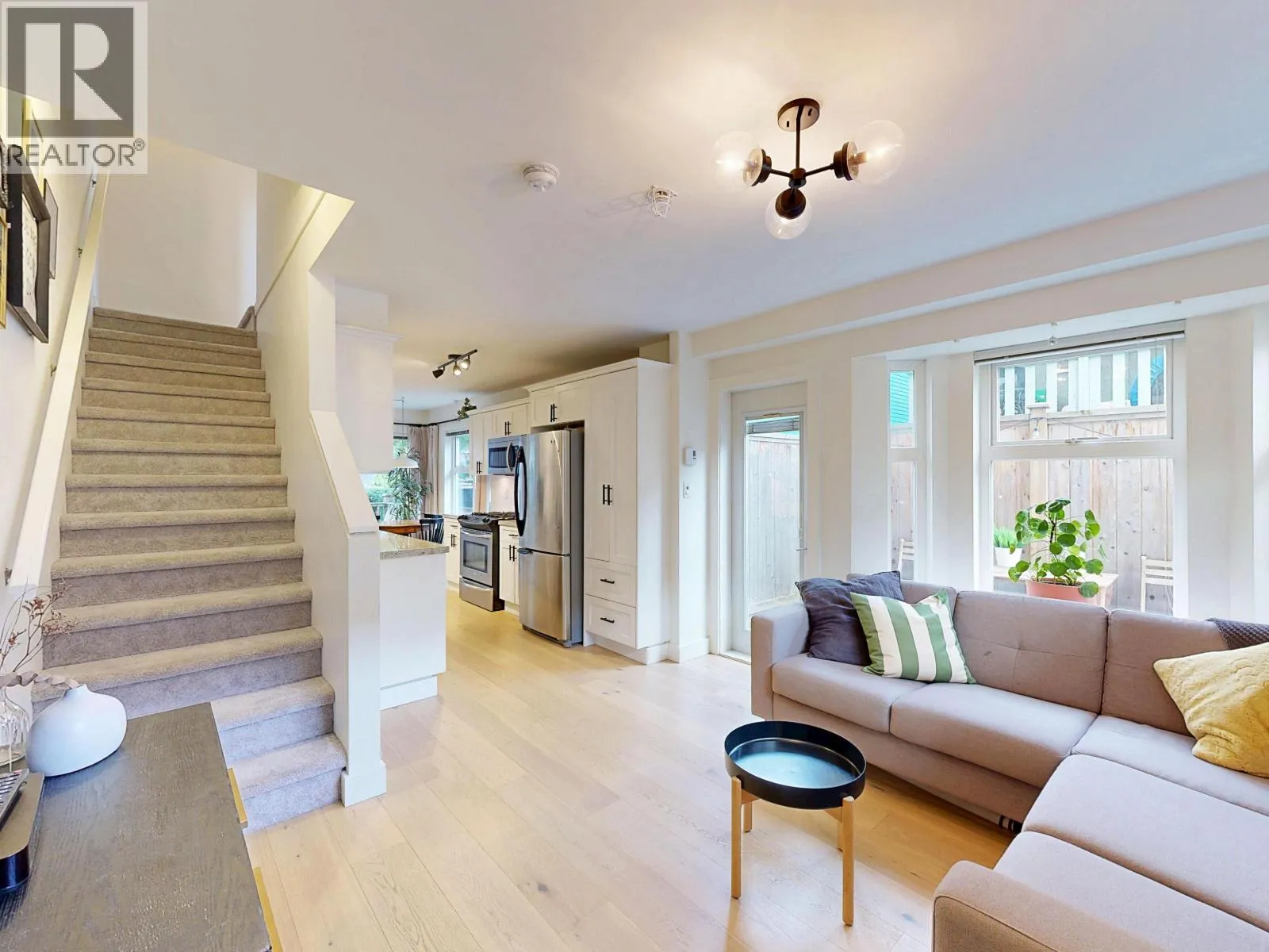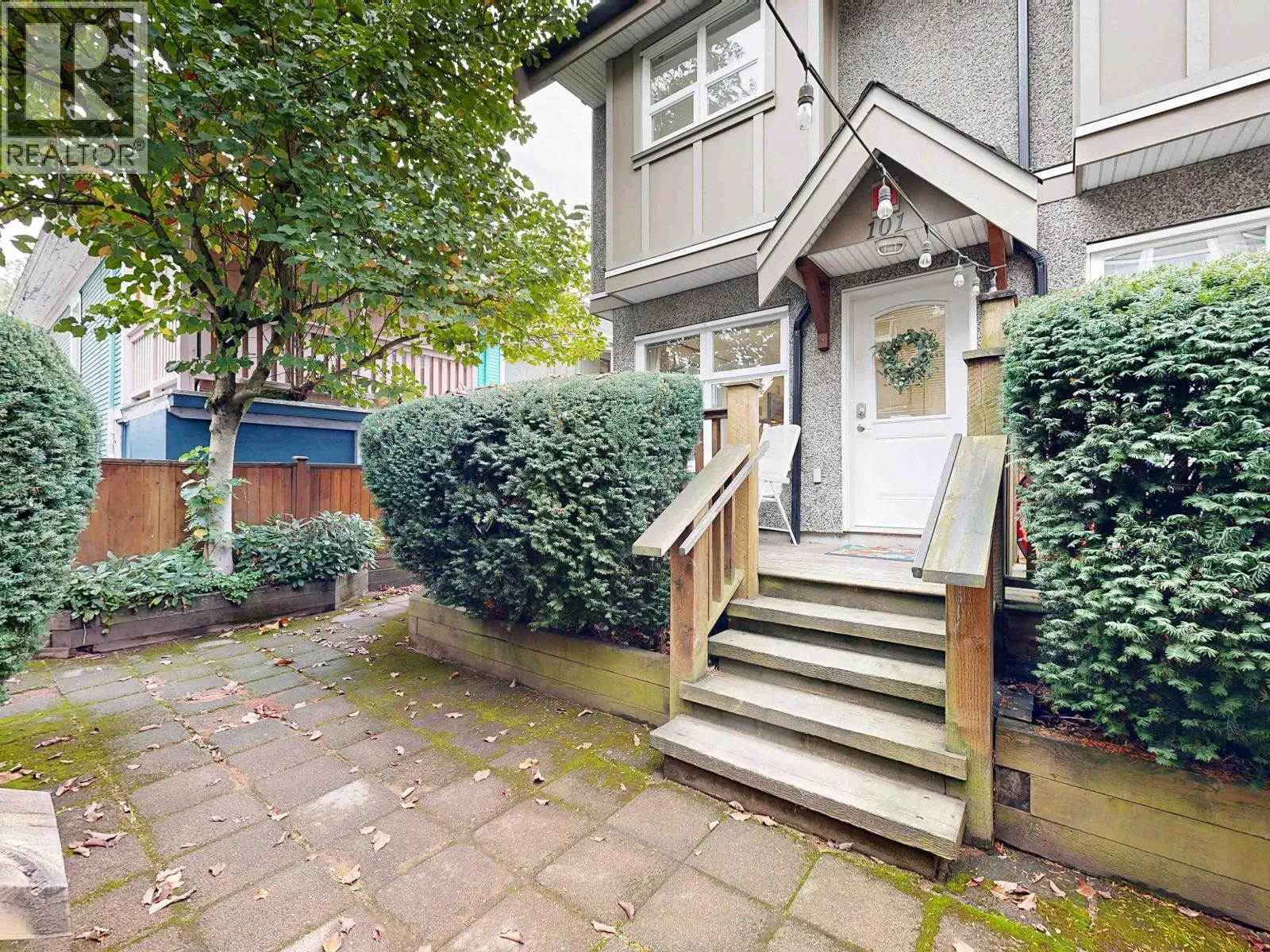 Open Sat 28th from 2-4. Bright 3-level, 3 bed / 2 bath end-unit townhouse at Pender Place offers space to grow in one of East Vancouver´s most welcoming neighbourhoods, just off Commercial Drive and Hastings. With only one shared wall and extra windows, the home is light-filled and private. The open layout connects easily to three outdoor areas-ideal for kids to play, weekend barbecues, or quiet moments after a busy day. A gas stove anchors the kitchen, while full-size laundry, parking and storage, common EV chargers, and guest parking make daily life easy. Set within a friendly, well-run 13-home strata and updated in 2020 with new flooring, paint, millwork, lighting, and hot water tank. Walk to cafés, shops, parks, and transit. (id:27476)