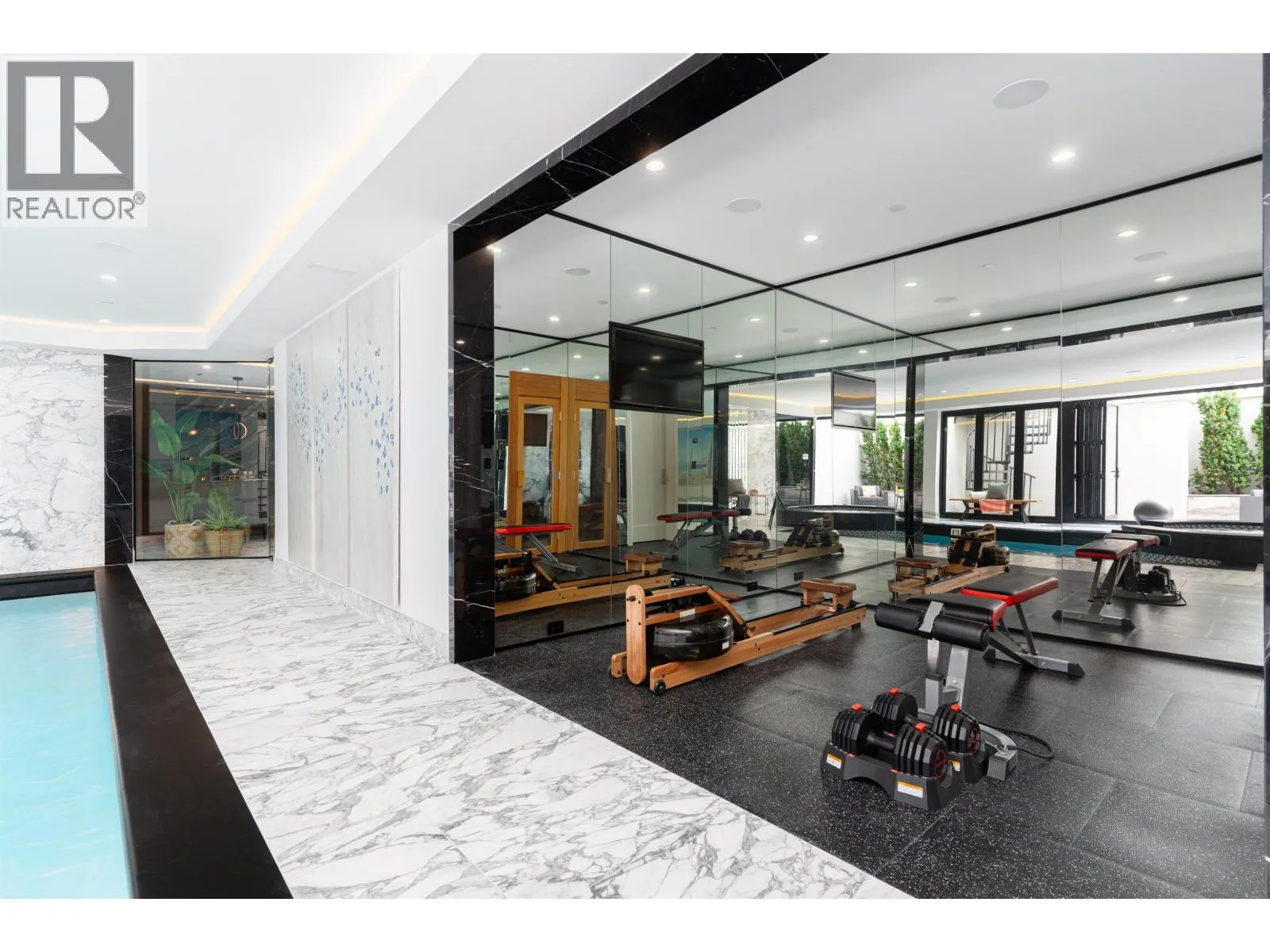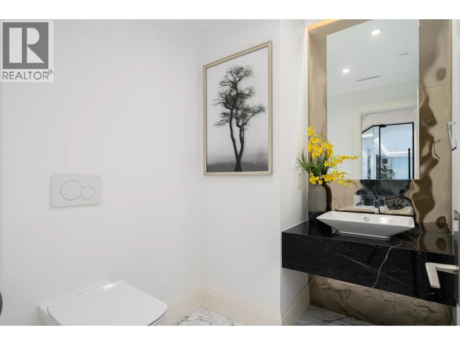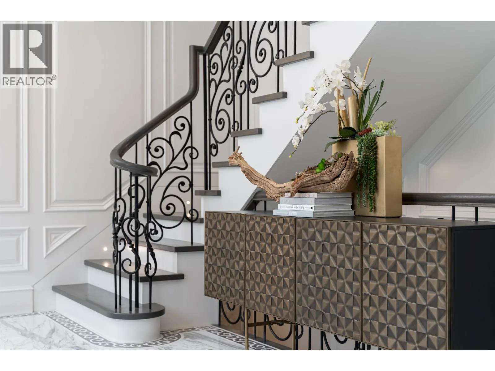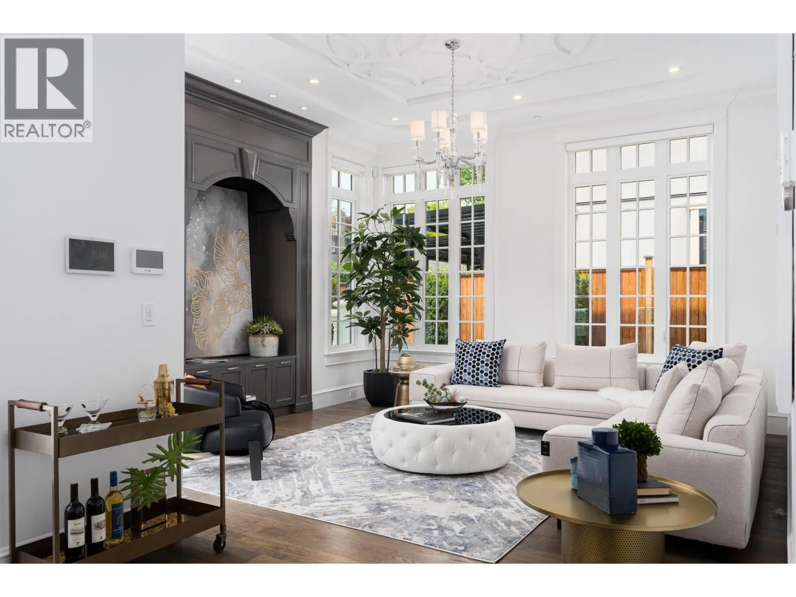 Château de Bellevue - An exquisite, world-class mansion in Southwest Marine that seamlessly blends elegance with class. Stunning statuario marble finishes with waterjet inlay details, European hand-made lead glass ceiling, custom silver-leafed pressed groin-vaulted ceiling, full indoor SPA, including a pool, jacuzzi, steam room, sauna, and gym. Custom-built 12-person theatre, chef's kitchen with WOLF Range & Sub Zero appliances, wok kitchen with WOLF Range, custom curved stained white oak pedestal island, 500 bottle wine cellar, full bar, 4-Car garage, Control 4 Home Smart System, wrap-around auto-court, exterior clad limestone custom moulding, custom maple cabinetry, all bedrooms ensuited, two laundry rooms, 4-Bed, 7-Bath, 5,900sqft. You can feel the quality of the finishes as you walk through Château de Bellevue - Welcome home. (id:27476)