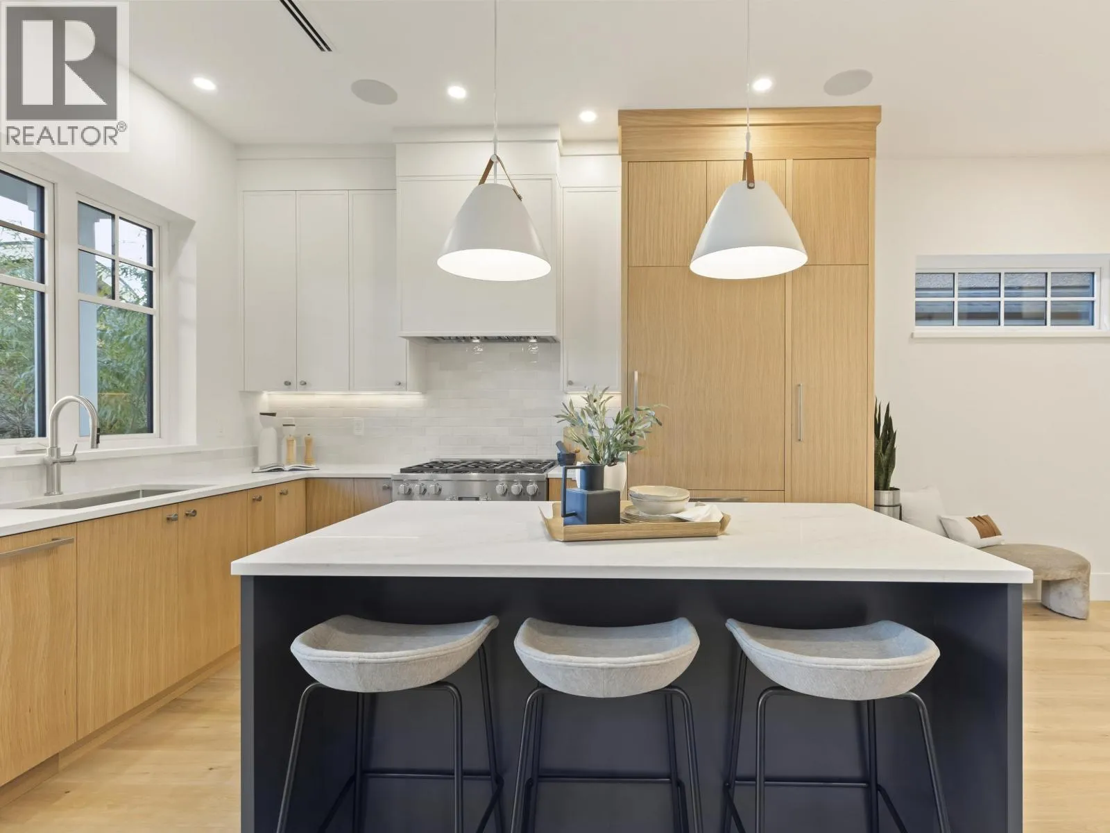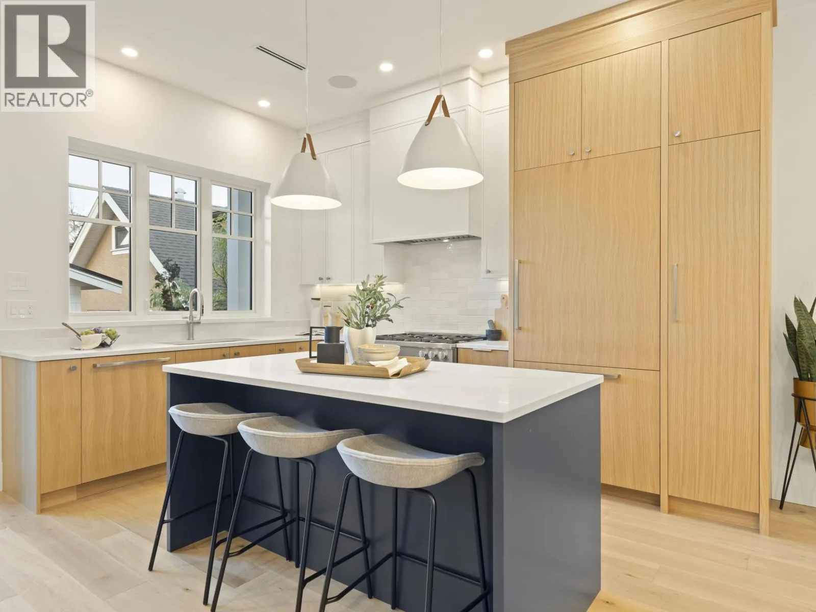 Masterfully crafted by Coastline Projects, this luxury back 1/2 duplex in coveted Dunbar sets a new standard in urban living. It boasts a meticulously designed open floor plan, 10´ ceilings, exquisite engineered oak floors, built-in dining room seating and a gas fireplace. The gorgeous kitchen is a chef´s dream, featuring a Miele fridge/stove, quartz countertops, and custom cabinetry. The second level features all the bedrooms on one floor. The spacious primary bedroom features ample closet space & a beautiful spa-like ensuite. The top floor features a bonus rec room perfect for a unique & cozy retreat. The private fenced backyard is perfect for gatherings. Only mins to St. George´s, Crofton House, UBC & Pacific Spirit Park. (id:27476)