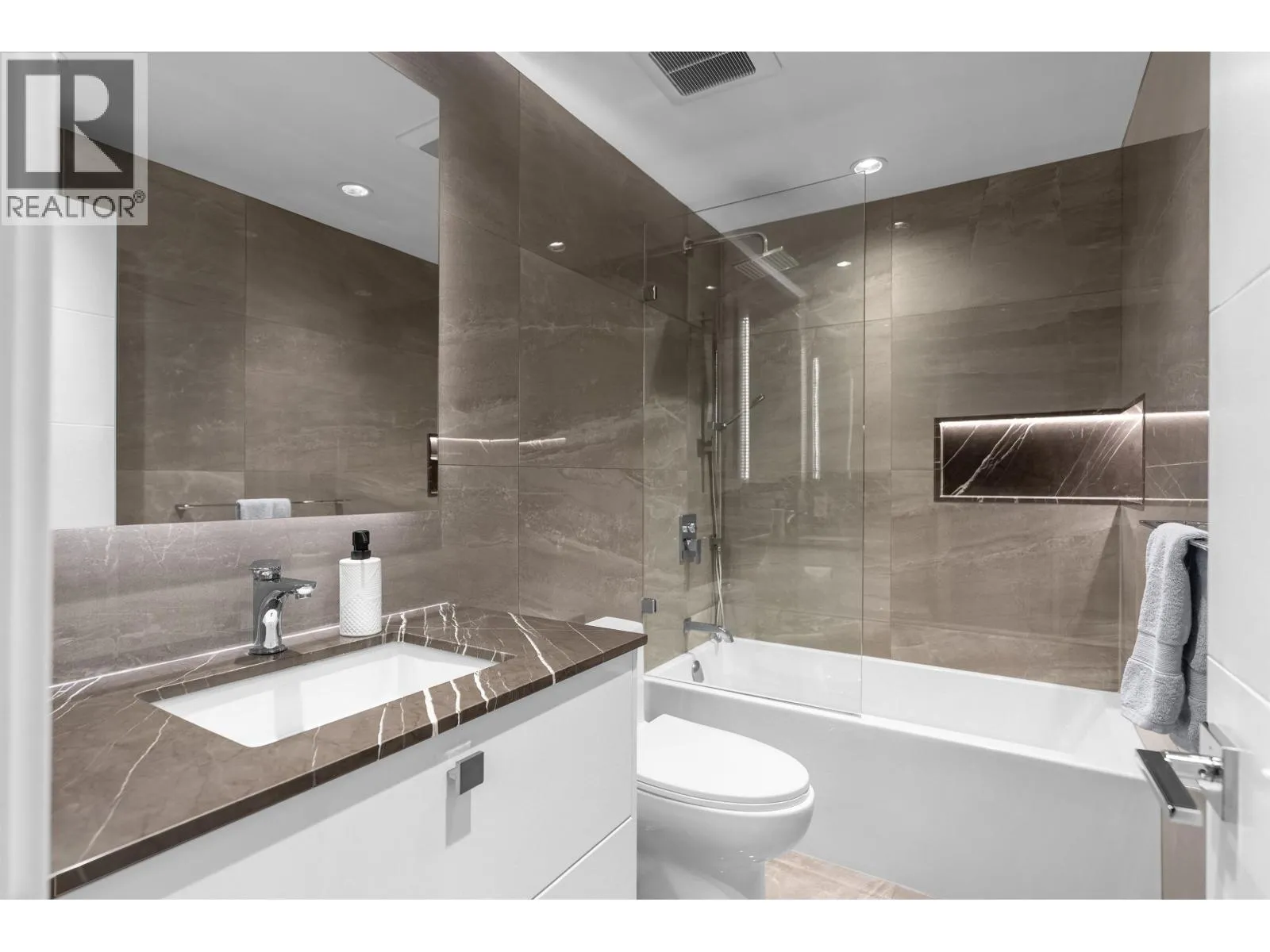 Urban living at its finest, welcome to Alberni Place! This exceptional, fully renovated residence offers protected, expansive views from the high side of the prestigious Alberni corridor. Thoughtfully renovated and redesigned for refined living and effortless entertaining, the open plan centres around a statement kitchen with Bosch appliances, 36-inch Thermador fridge, custom two-tone cabinetry, and striking waterfall island. The bathrooms are finished in Porcelanosa tile with floating vanities, backlit mirrors, and marble slab counters, delivering a clean, timeless aesthetic. Located steps from the city's finest shopping, acclaimed dining, and Coal Harbour waterfront, offering convenience in the heart of the downtown peninsula. Amenities include 24/7 concierge, social room, gym. (id:27476)