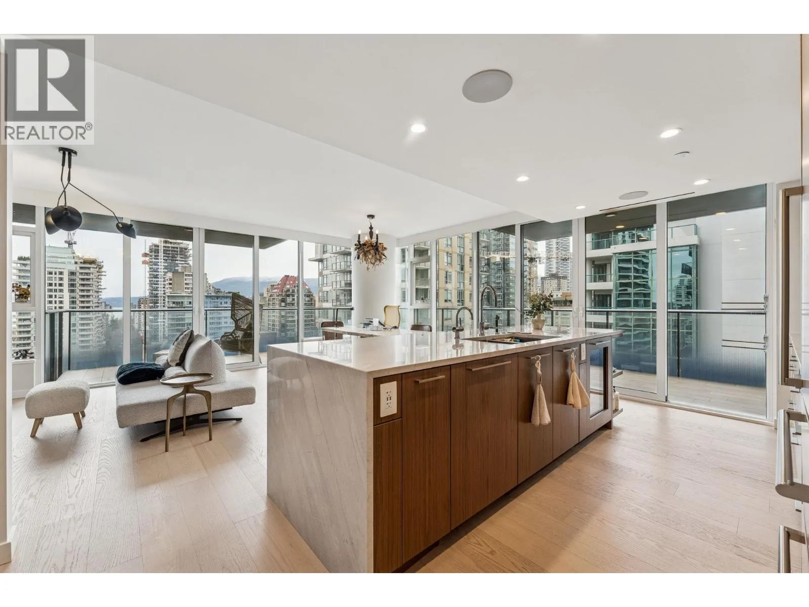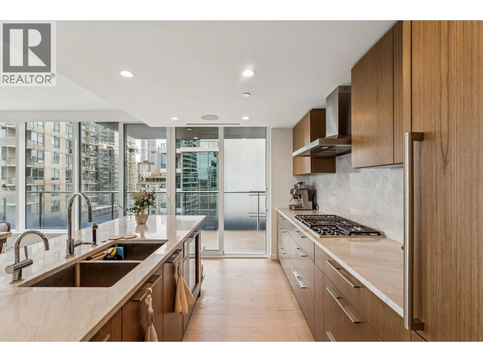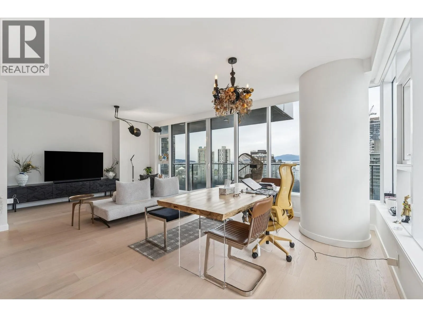 Welcome to the Elegant Residence of 1120 SF 2 bed 2 bath w/Den at 1335 Howe! NW corner unit with 400+sqft wrap-around balcony, perfect for BBQ with the view of English Bay! Home features A/C, ERV, smart-home system, automated lighting, built-in speakers, motorized blinds and Hardwood flooring throughout, making perfect mix of technology, elegance, comfort and lifestyle! Chef inspired kitchen features premium appliance package - Sub Zero, Wolf & Asko, double stainless steel sink with Dornbracht polished chrome faucet, flex/pantry and wine fridge integrated into a gorgeous oversized marble island. Amenities include an outdoor pool, hot tub, gym, steam, sauna, lounge, party room, enclosed dog area & 24 hr concierge. 1 covered parking and 1 locker. Open House: Sat (28th) 2-4 pm. (id:27476)
