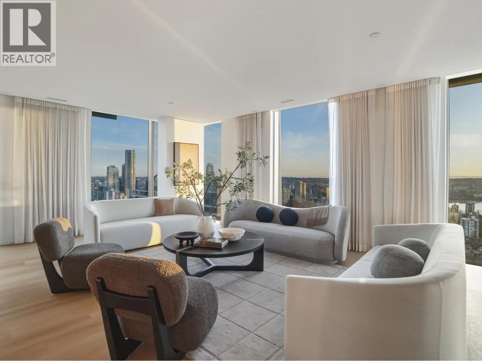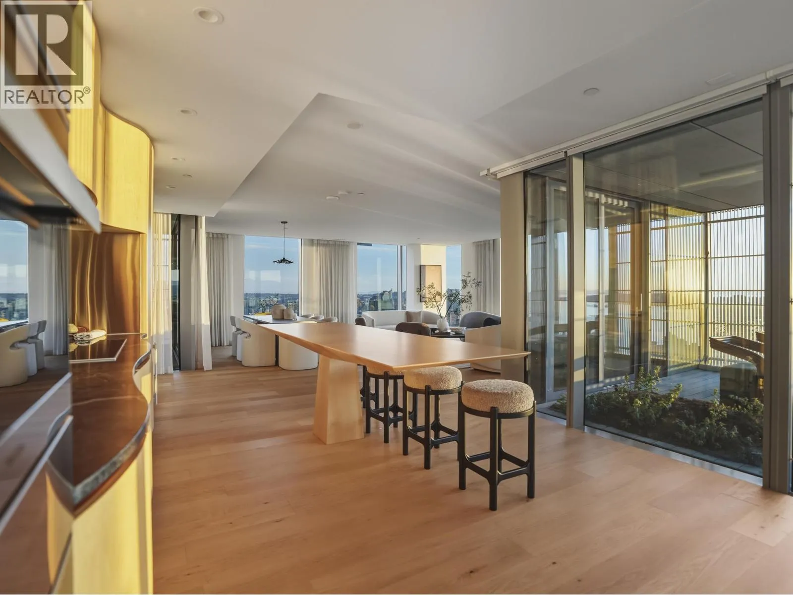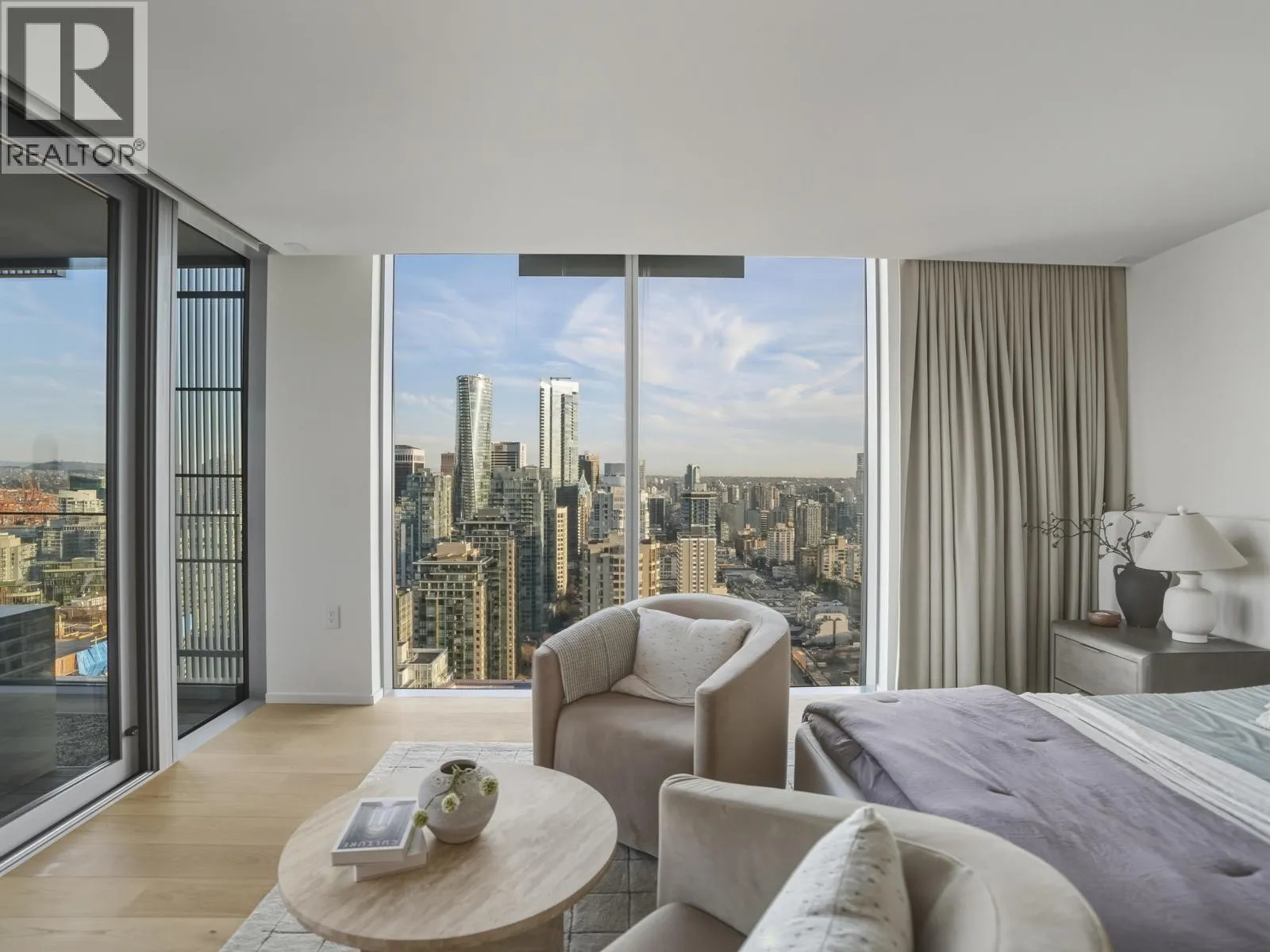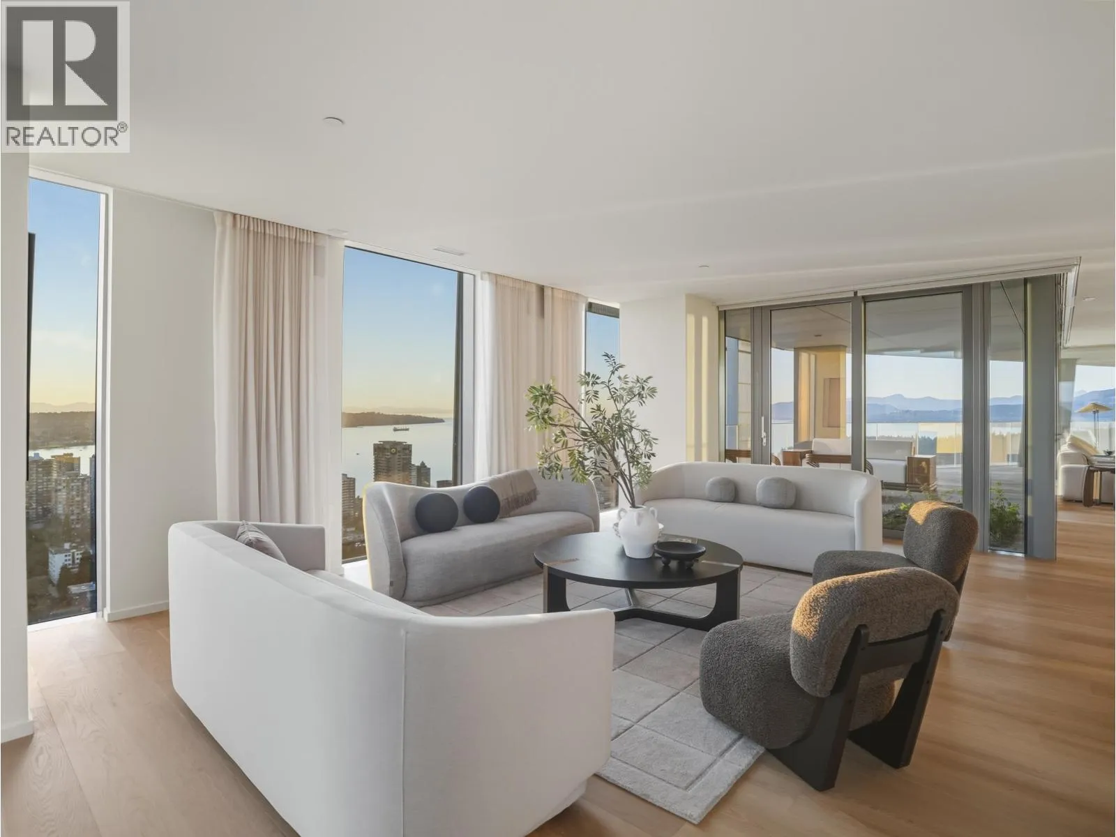 An iconic Vancouver residence, Alberni by renowned architect Kengo Kuma, offers a refined expression of West Coast luxury. This HALF FLOOR SUB PENTHOUSE features expansive indoor/outdoor living with floor-to-ceiling windows and glass sliding doors opening to multiple oversized covered terraces; ideal for year round use and entertaining. Enjoy sweeping views of the North Shore mountains, Stanley Park, English Bay, and Downtown. The open concept interior is anchored by a sleek, high end kitchen with integrated Miele and Sub Zero appliances. The primary suite includes a private terrace, dressing room, and spa-inspired ensuite overlooking Coal Harbour. Residents enjoy world-class amenities including concierge service, wellness facilities, pool and elegant resident lounges. A rare offering. (id:27476)
