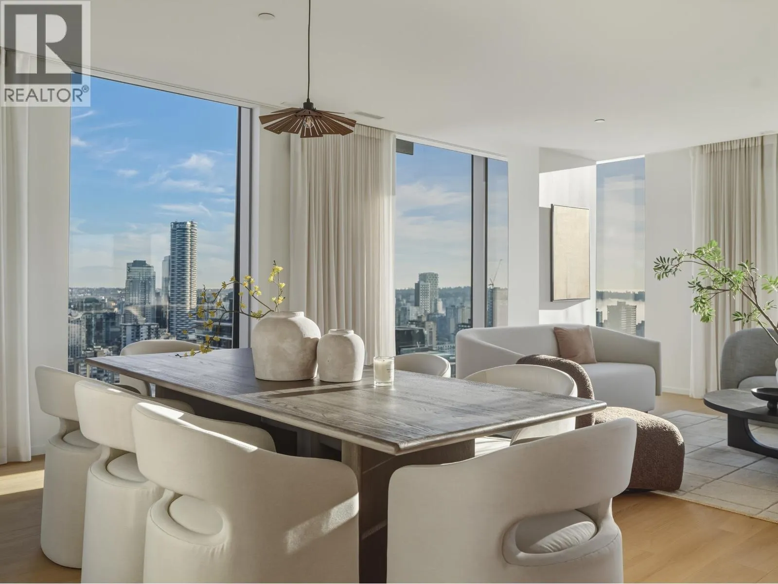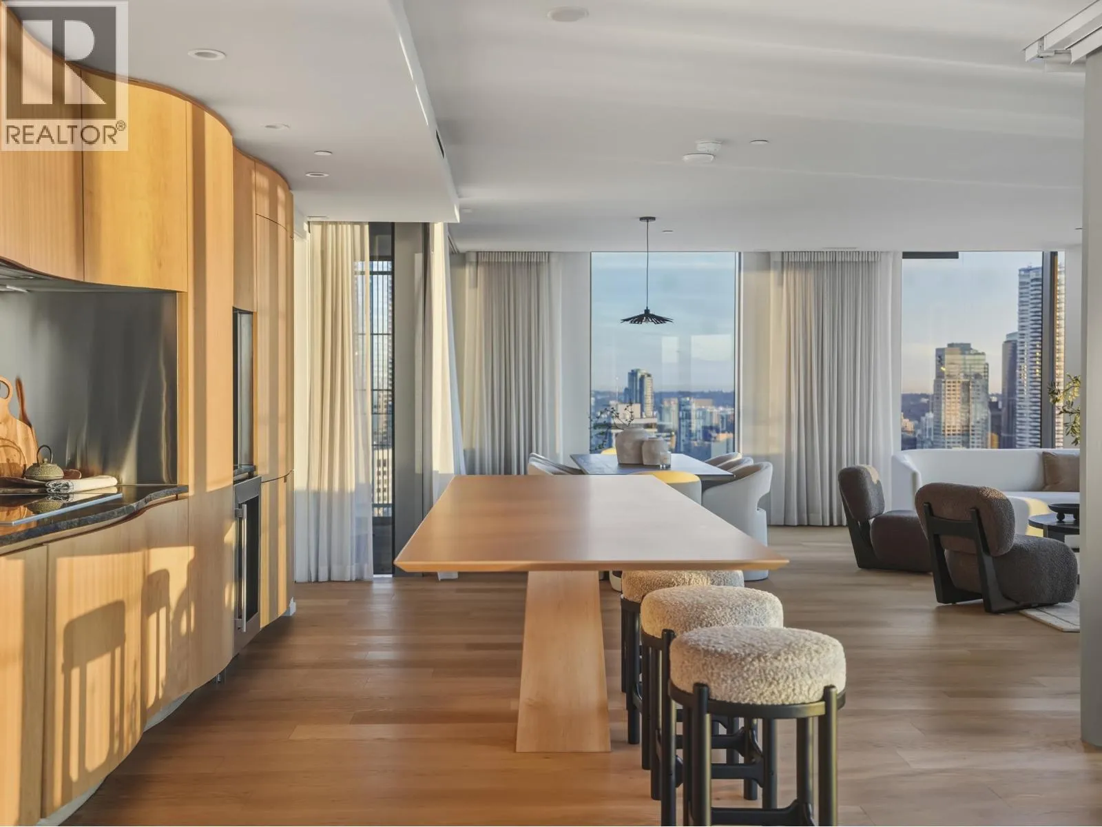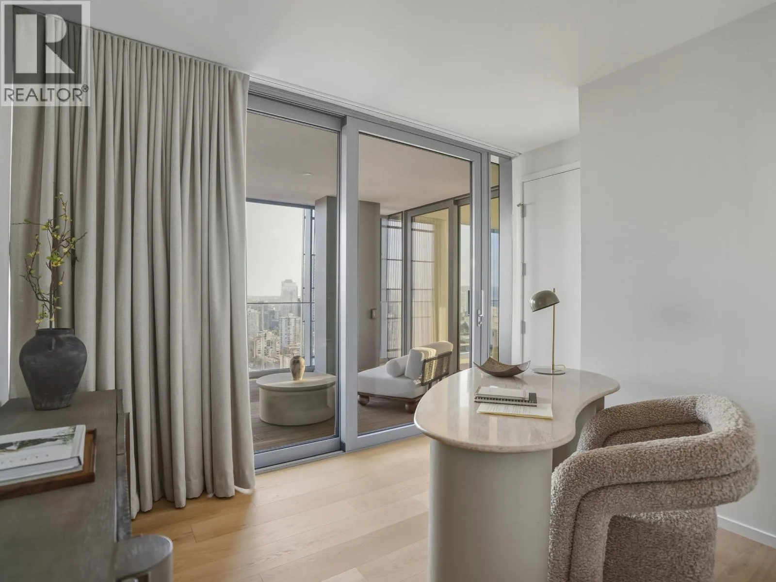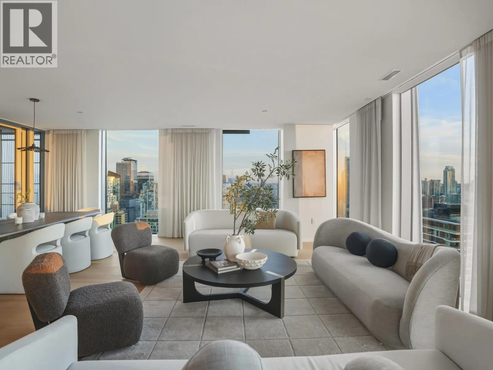 An iconic Vancouver residence, Alberni by renowned architect Kengo Kuma, offers a refined expression of West Coast luxury. This HALF FLOOR SUB PENTHOUSE features expansive indoor/outdoor living with floor-to-ceiling windows and glass sliding doors opening to multiple oversized covered terraces; ideal for year round use and entertaining. Enjoy sweeping views of the North Shore mountains, Stanley Park, English Bay, and Downtown. The open concept interior is anchored by a sleek, high end kitchen with integrated Miele and Sub Zero appliances. The primary suite includes a private terrace, dressing room, and spa-inspired ensuite overlooking Coal Harbour. Residents enjoy world-class amenities including concierge service, wellness facilities, pool and elegant resident lounges. A rare offering. (id:27476)