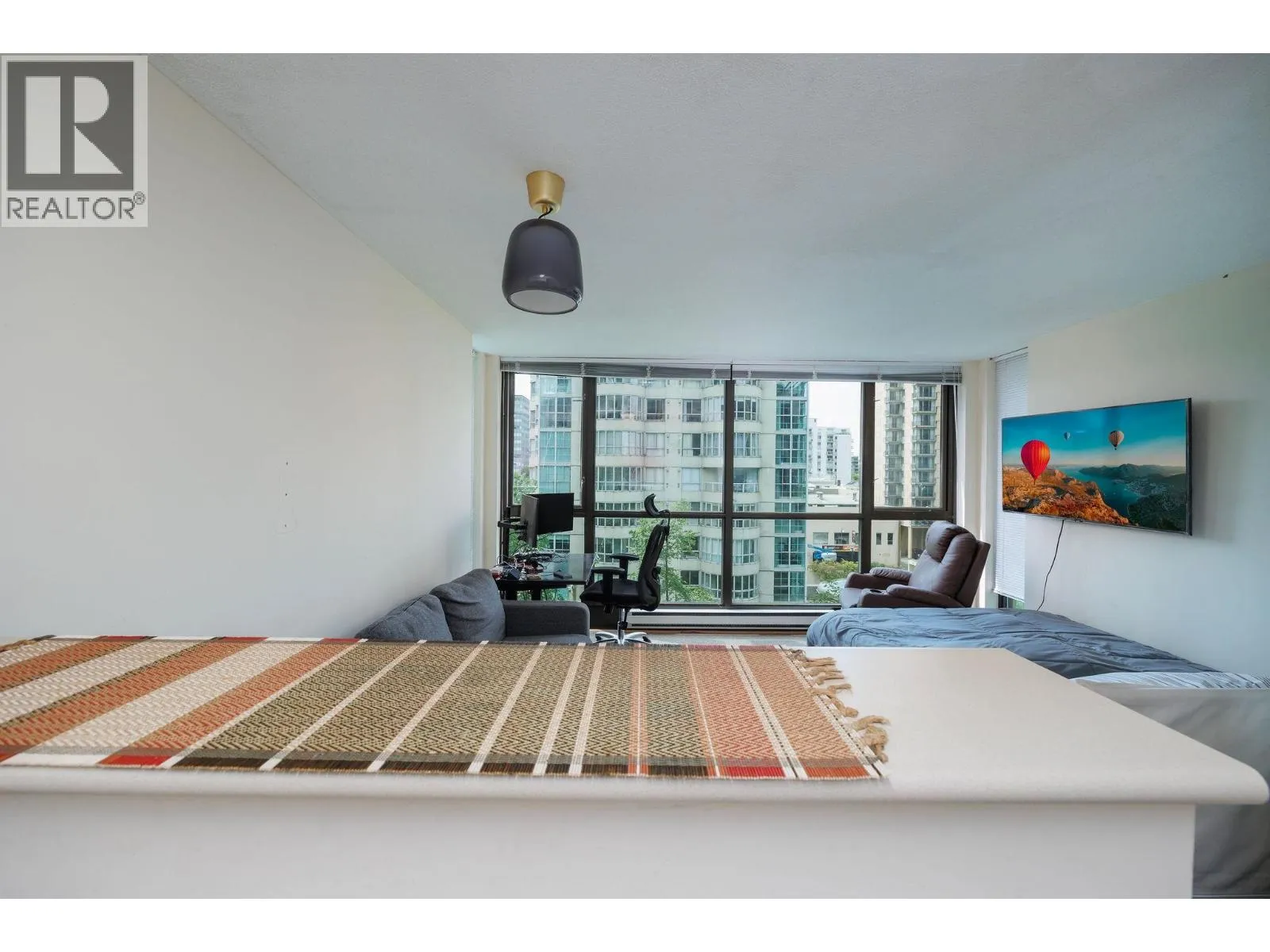 South-facing, bright and spacious studio in Lions Building in the heart of downtown Vancouver, offering the perfect blend of convenience and comfort. This bright, open-concept unit features large windows with city views, modern finishes with newer fridge (2020), sleek cabinetry, and a cozy breakfast bar and in-suite laundry. Located steps from Robson Street and Coal Harbour. This studio is ideal for first-time buyers, investors, or anyone looking for a stylish building in a prime location. The building offers secure entry, concierge services, exercise room, bike storage, one parking stall and one storage locker. Public transit, shops, restaurants, and more are right at your doorstep. Open House Saturday March 28th 2:00-4:00 PM. (id:27476)