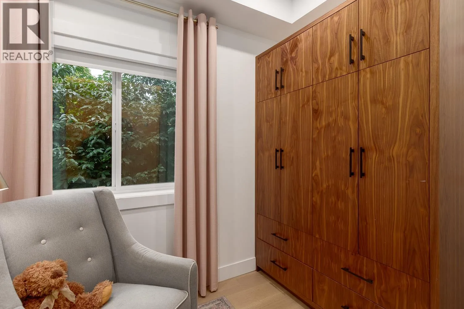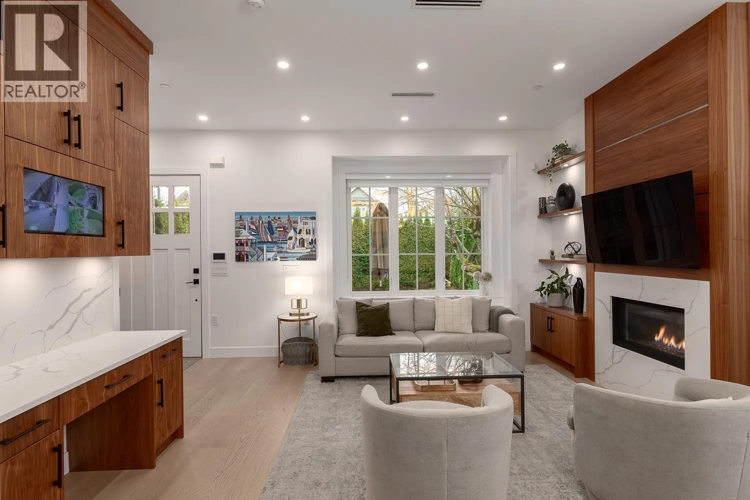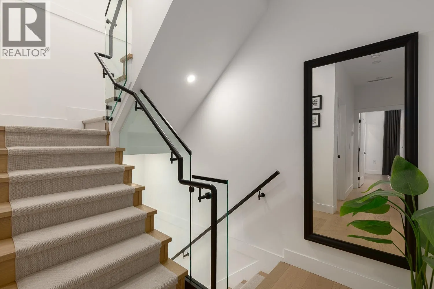 Welcome to this gorgeous front-half duplex in the heart of Mount Pleasant, one of the best family communities in the city. This rare four-bedroom, four-bath home spans three beautifully finished levels. The main floor impresses with 10ft ceilings, wide-plank oak floors, walnut millwork, roll-out kitchen shelving, a gas fireplace, and a chef-inspired Fisher & Paykel kitchen with quartz counters. Upstairs offers three generous bedrooms and two baths, while the top floor provides a private retreat with its own bedroom, bath, and year-round covered balcony. Thoughtful details include A/C, smart home features, Riobel fixtures, irrigation, and excellent storage throughout. Outside, 12ft cedar hedges create privacy around the yard, and the garage is equipped with an EV charger. (id:27476)