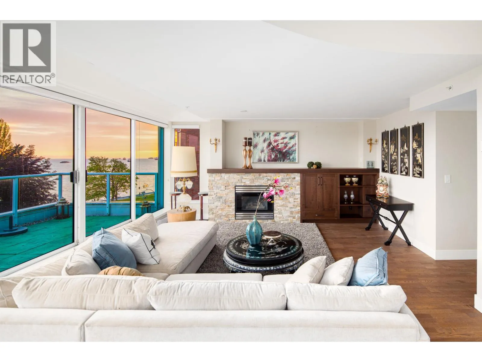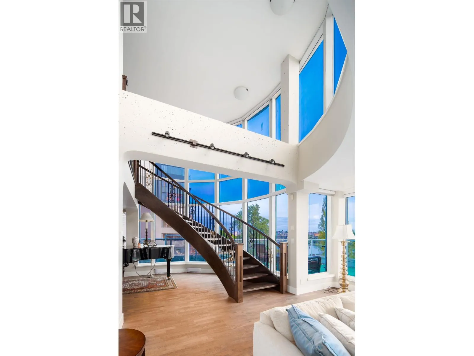RENOVATED WATERFRONT Penthouse! Unobstructed Panoramic Ocean View on both levels! This luxurious 3150 sf suite offers 4 bedrooms, 3 full bathrooms, a gourmet kitchen with top of the line appliances (6 burner gas stove) and 2 offices, all interlocked by an elegant spiral staircase separating the two floors. Master suite occupies the entire 2nd floor w/spa like ensuite, an enclosed balcony, a sitting area and a private office. Building envelopes upgraded in 2024! Enjoy the blue satin waters of English Bay on the balconies. 3 parkings. (id:27476)