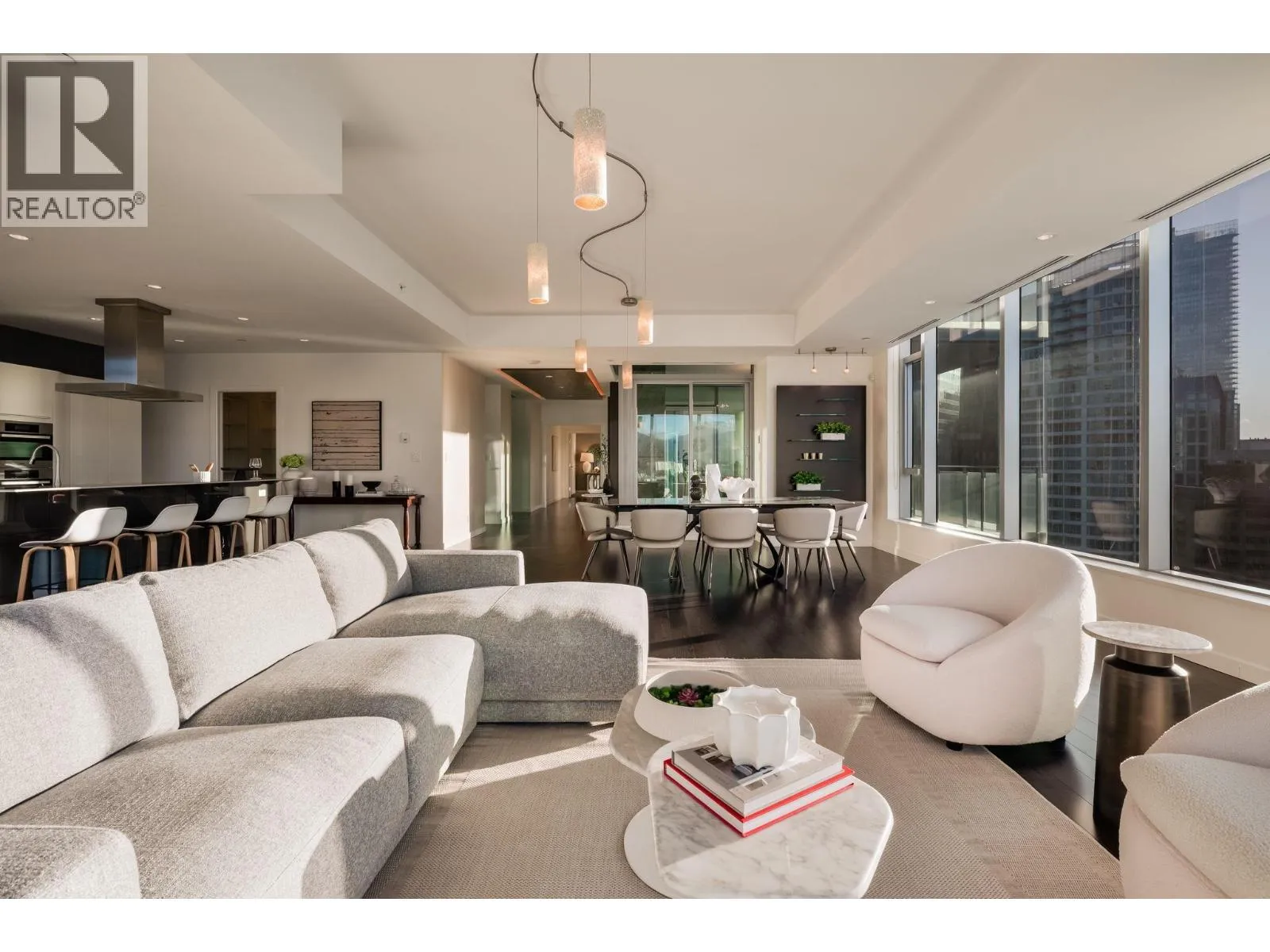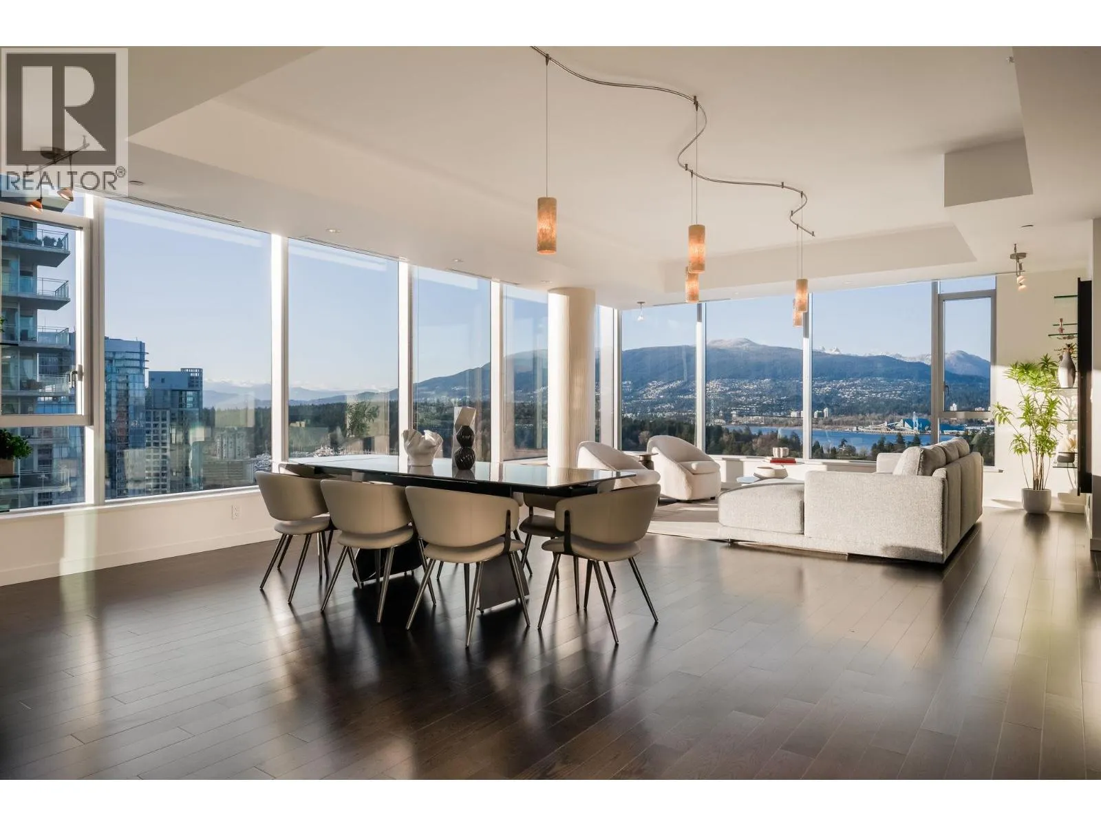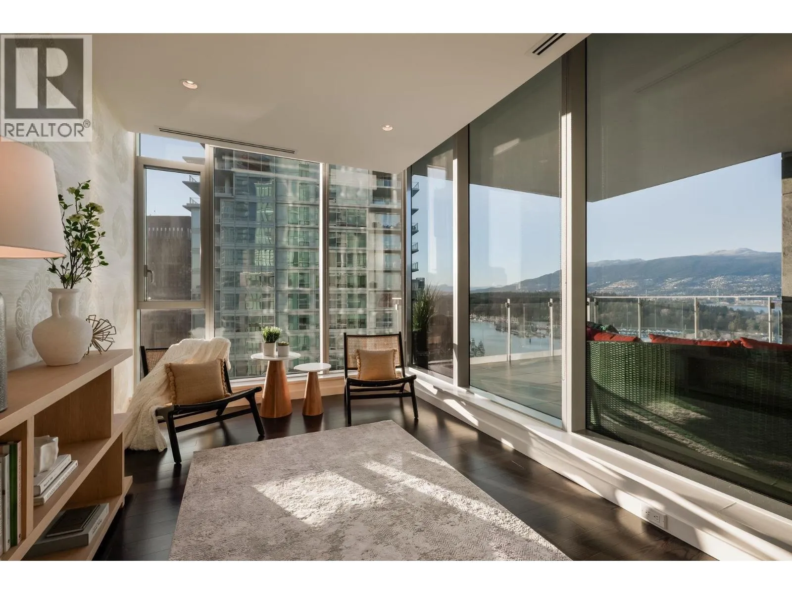 Welcome to Three Harbour Green, where world-class design meets the pinnacle of Coal Harbour living. This expansive 2 Bed + Large Office residence is a sanctuary of light, space & elegance. Panoramic windows frame sweeping vistas of Stanley Park, the harbour & North Shore Mtns - flooding interiors with natural light & luminous beauty. A bespoke Snaidero kitchen, premium appliancess & centre island anchors the open concept plan, while a large covered balcony w/gas fireplace invites year-round indulgence. 4 secure parking, 24hr concierge & resort style amenities, pool, hot tub, fitness centre, squash & lounges, complete a rare offering that is not just a home but a statement of refinement, serenity & elevated Vancouver living. Discover the full grandeur of this residence. (id:27476)
