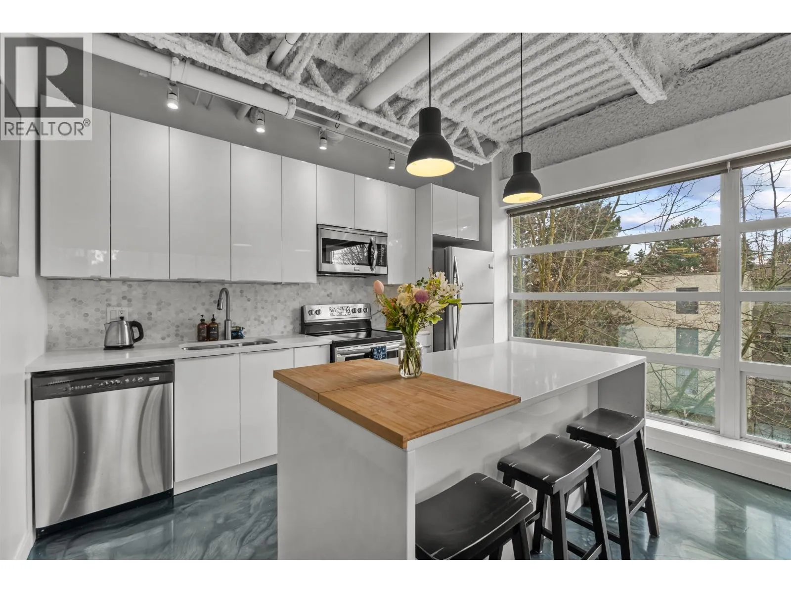 Wow! This is the one... Ultra bright, super spacious, updated massive corner unit with a giant private bedroom. Unit 431 at the Mainspace live/work lofts has it all: in-suite laundry, Southwest exposure (on the quiet side of the building), 1 parking, sprawling layout with renovated kitchen, custom durable epoxy floors, 10 foot high ceilings, storage space, and a green outlook with windows galore! This very unique and desired building also allows AirBnB nightly rentals! Just steps to the best cafés, restaurants, and Emily Carr. First showings Saturday Feb 28th, 2-4pm - don't miss this one! (id:27476)