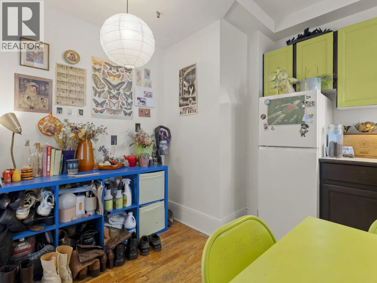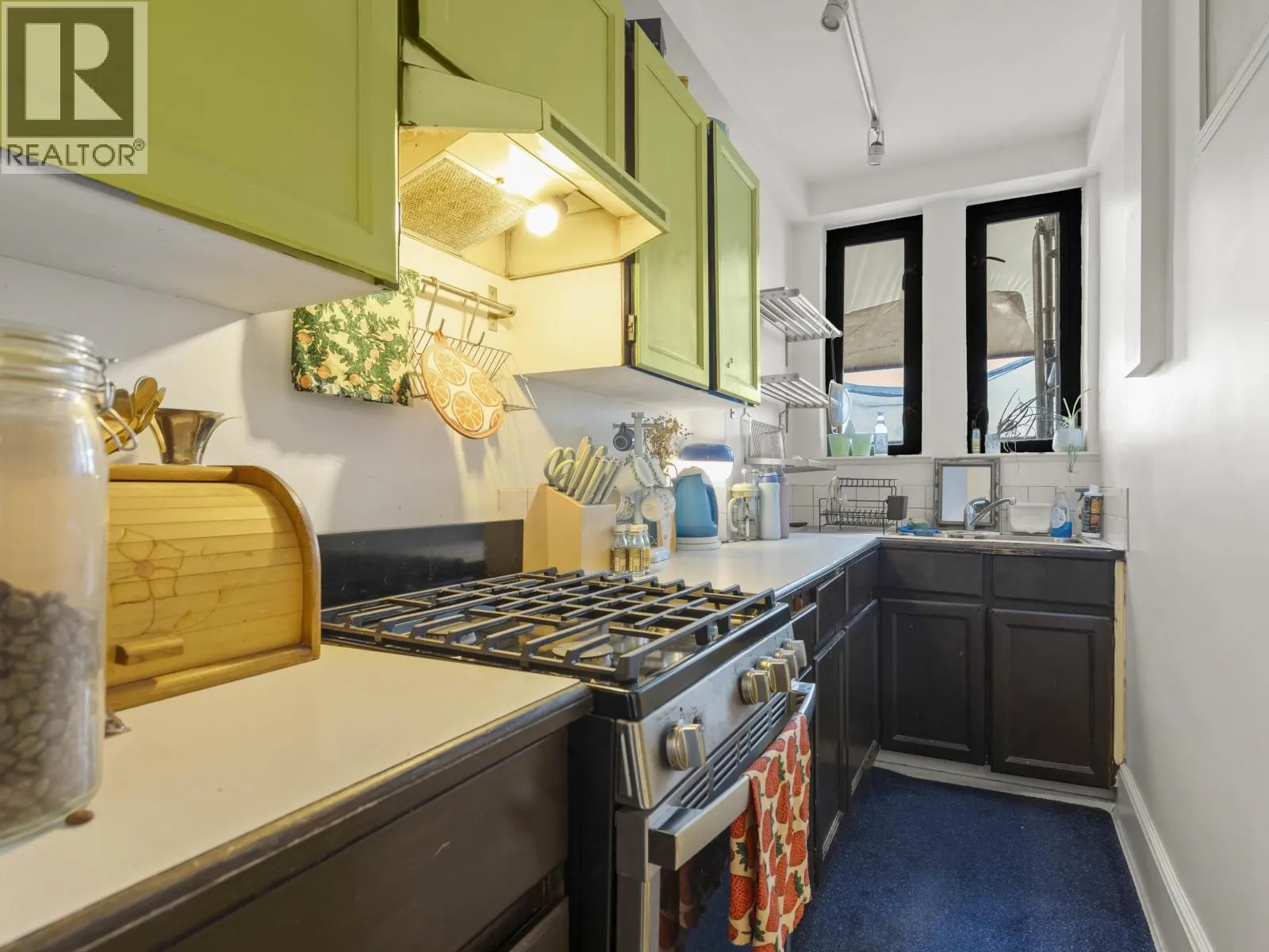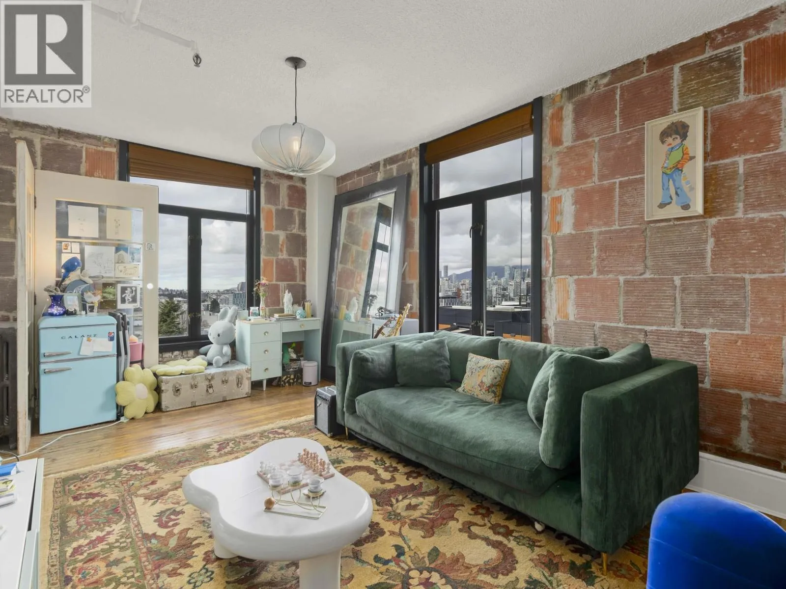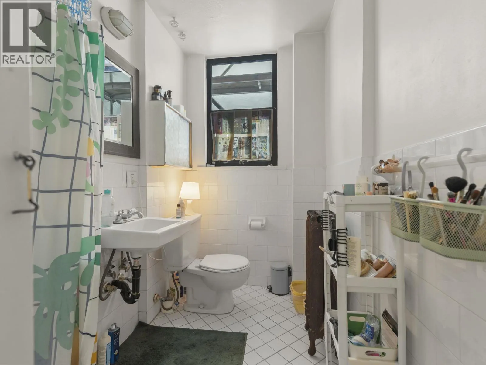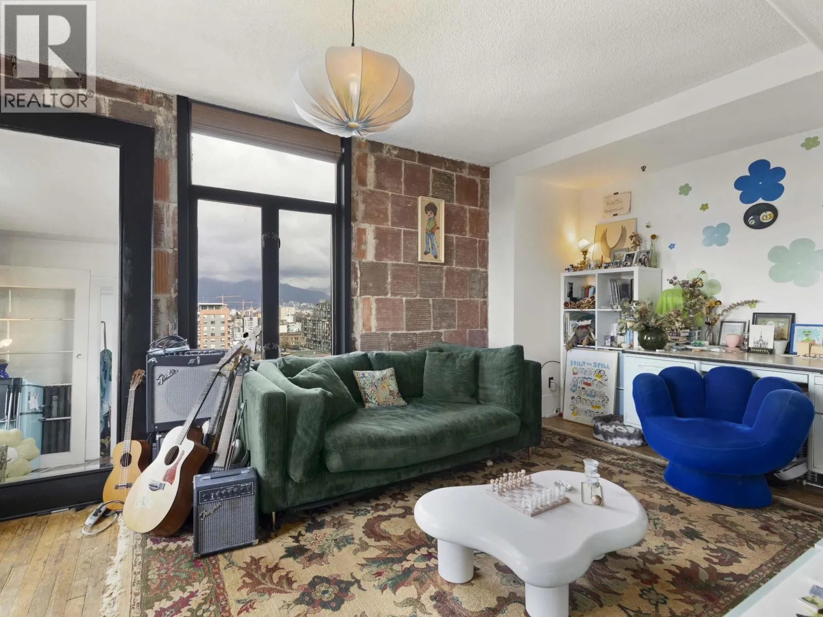The Lee Building has been a landmark in this vibrant Mount Pleasant East neighbourhood for over a century. 1-bedroom, 1-bath top-floor NW facing corner home blends vintage charm with high ceilings, fir floors, antique radiators, and exposed brick walls. Beautiful city and mountain views extend in all directions. Oversized windows let in the natural light to fill your space. Upgrades include a newer bathroom, a gas stove and the building has been replumbed. Transit, shops, breweries and restaurants, all right outside your door. The undivided ownership structure does not permit financing- all cash required. Tenant occupied, so 24 hours' notice please. Great investment opportunity. (id:27476)