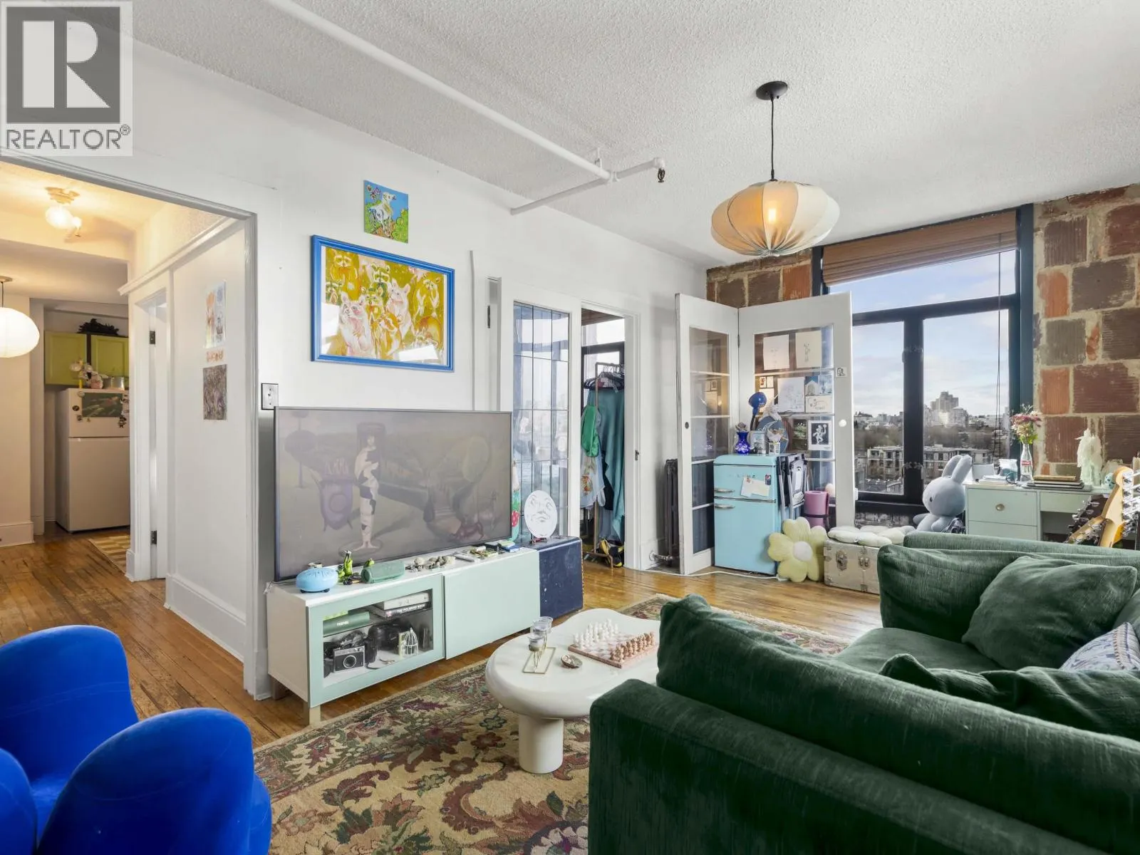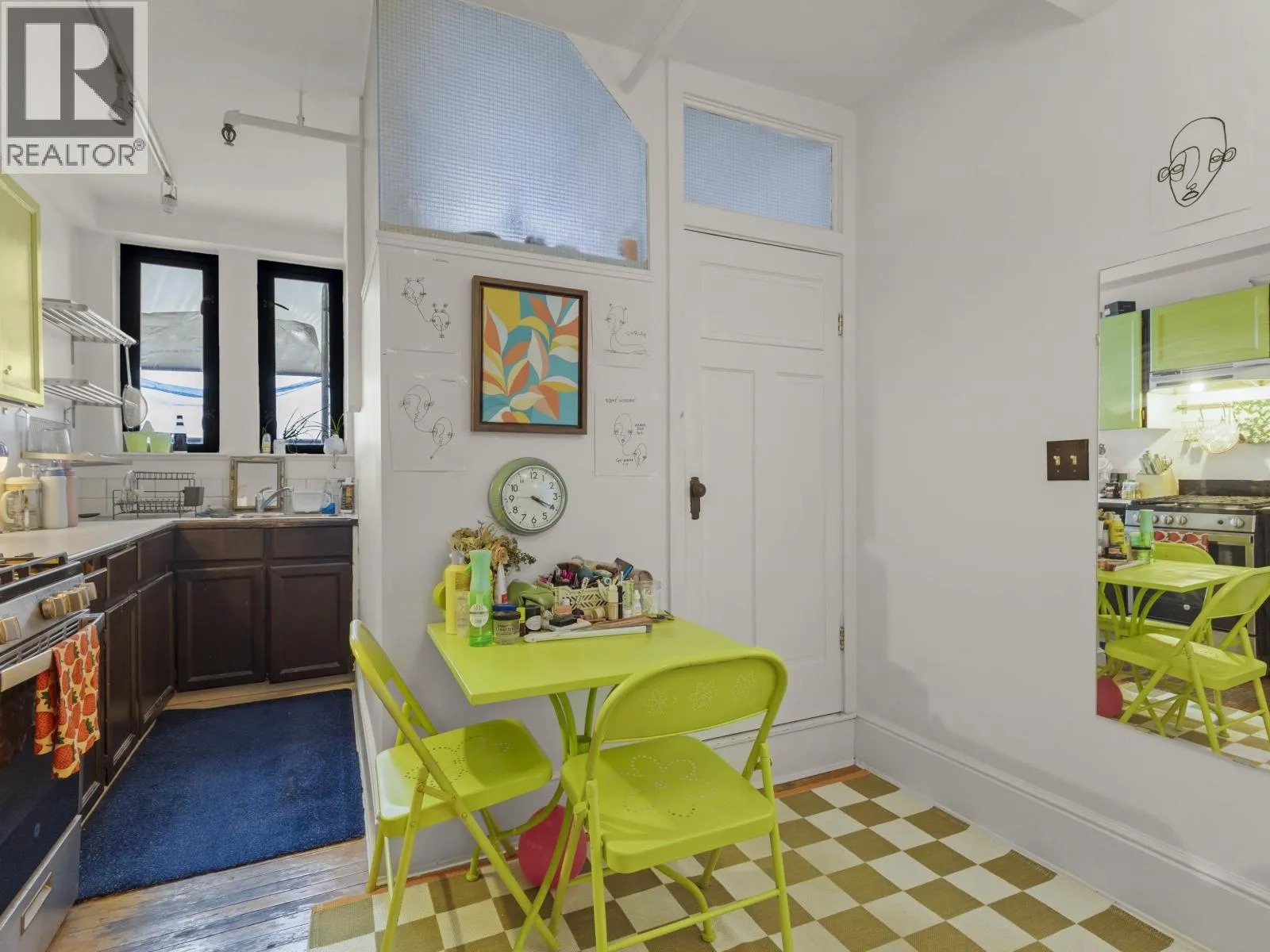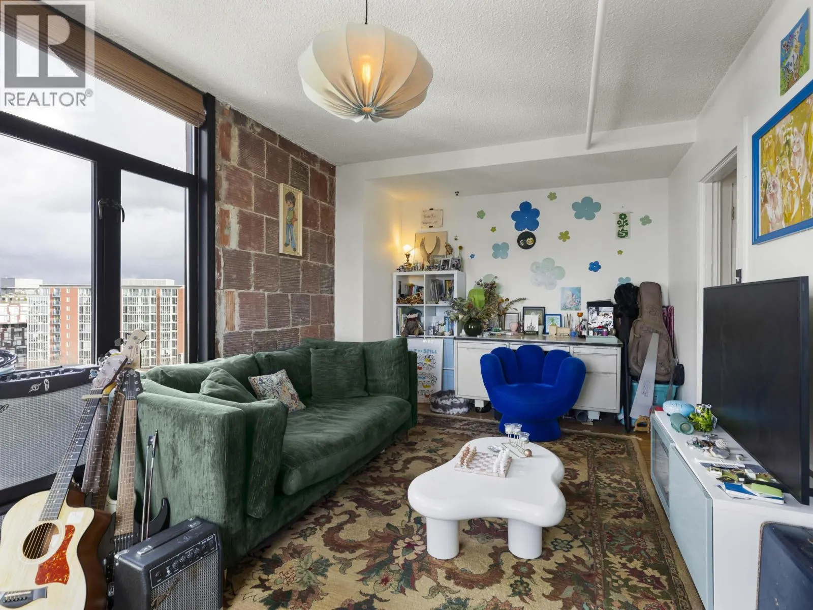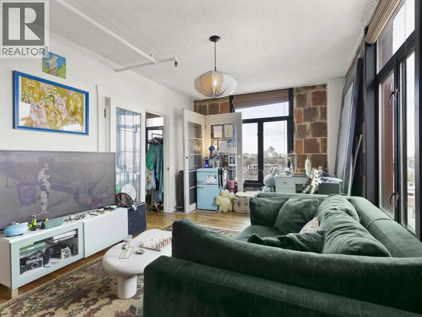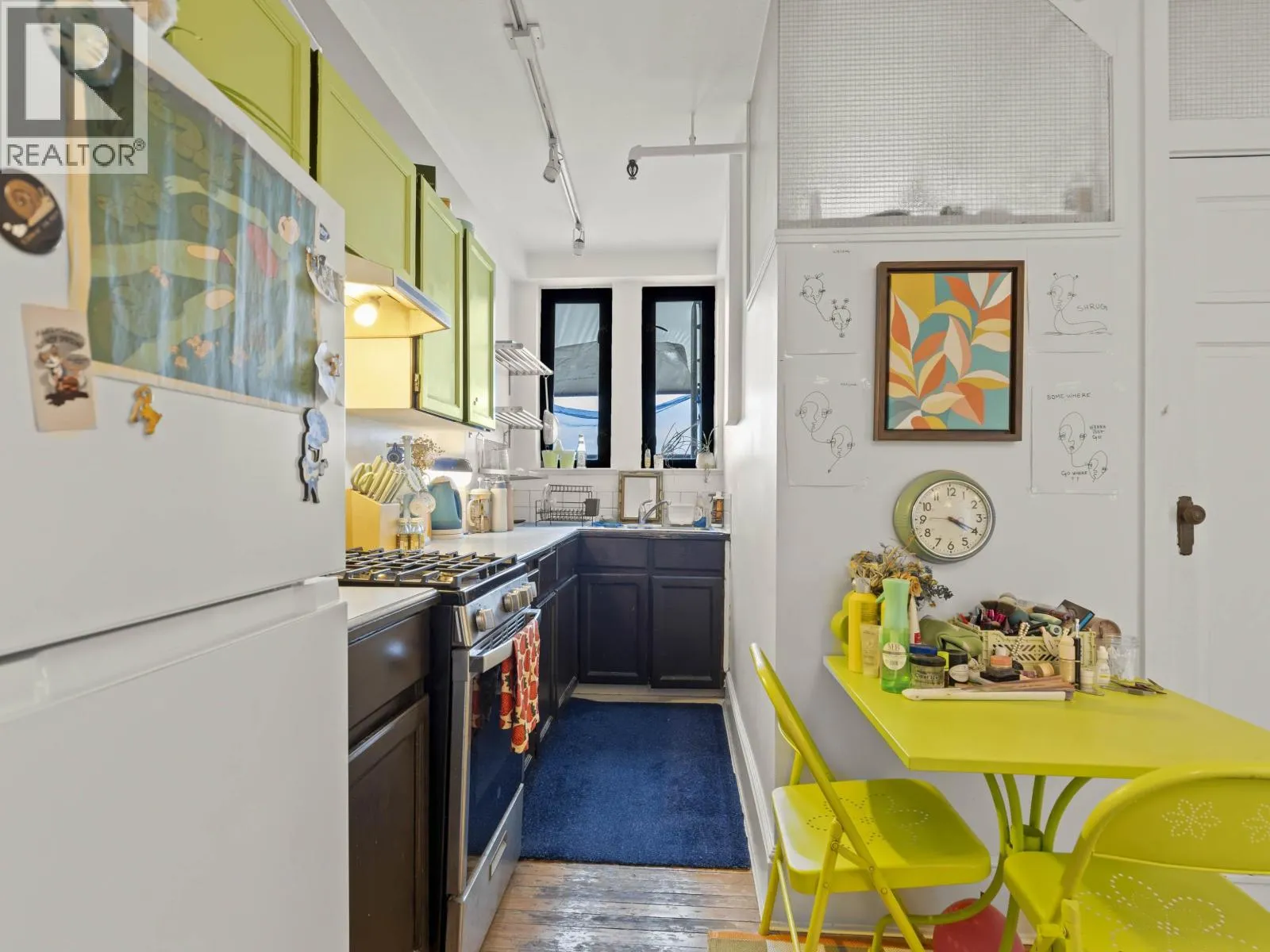 The Lee Building has been a landmark in this vibrant Mount Pleasant East neighbourhood for over a century. 1-bedroom, 1-bath top-floor NW facing corner home blends vintage charm with high ceilings, fir floors, antique radiators, and exposed brick walls. Beautiful city and mountain views extend in all directions. Oversized windows let in the natural light to fill your space. Upgrades include a newer bathroom, a gas stove and the building has been replumbed. Transit, shops, breweries and restaurants, all right outside your door. The undivided ownership structure does not permit financing- all cash required. Tenant occupied, so 24 hours' notice please. Great investment opportunity. (id:27476)