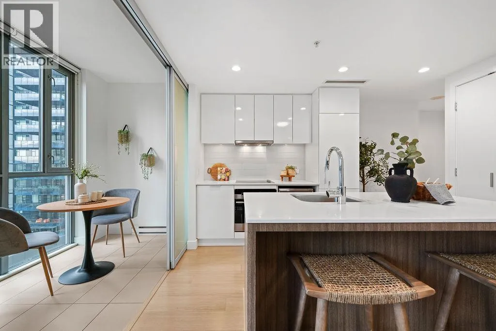 Welcome to SALT by Concert Properties! LEED Gold award-winning boutique building in heart of downtown Vancouver. Corner one bedroom and office home taking advantage of views and light from 2 full sides and featuring over-height ceilings, quartz countertops, a bright open kitchen with island and integrated appliances. Shows like new! Coffee and all the conveniences right outside your door including Fresh Street Market, the Seawall, Yaletown Skytrain station. Building amenities include a well-equipped gym, club house, and roof garden with fire pit. One secure underground parking and in-suite storage are included. Pets welcome because we know they're family! Hornby Street and Drake Street bike lanes right outside for your active or commuter lifestyle! (id:27476)