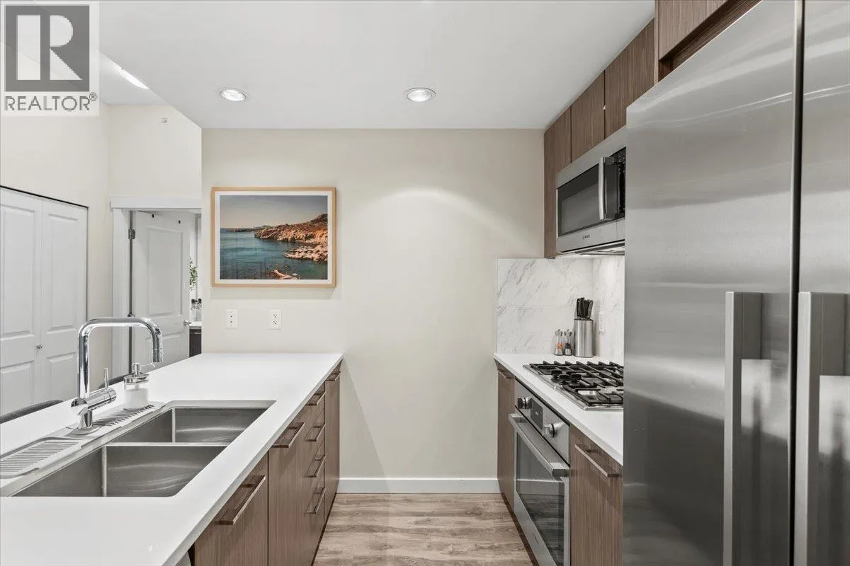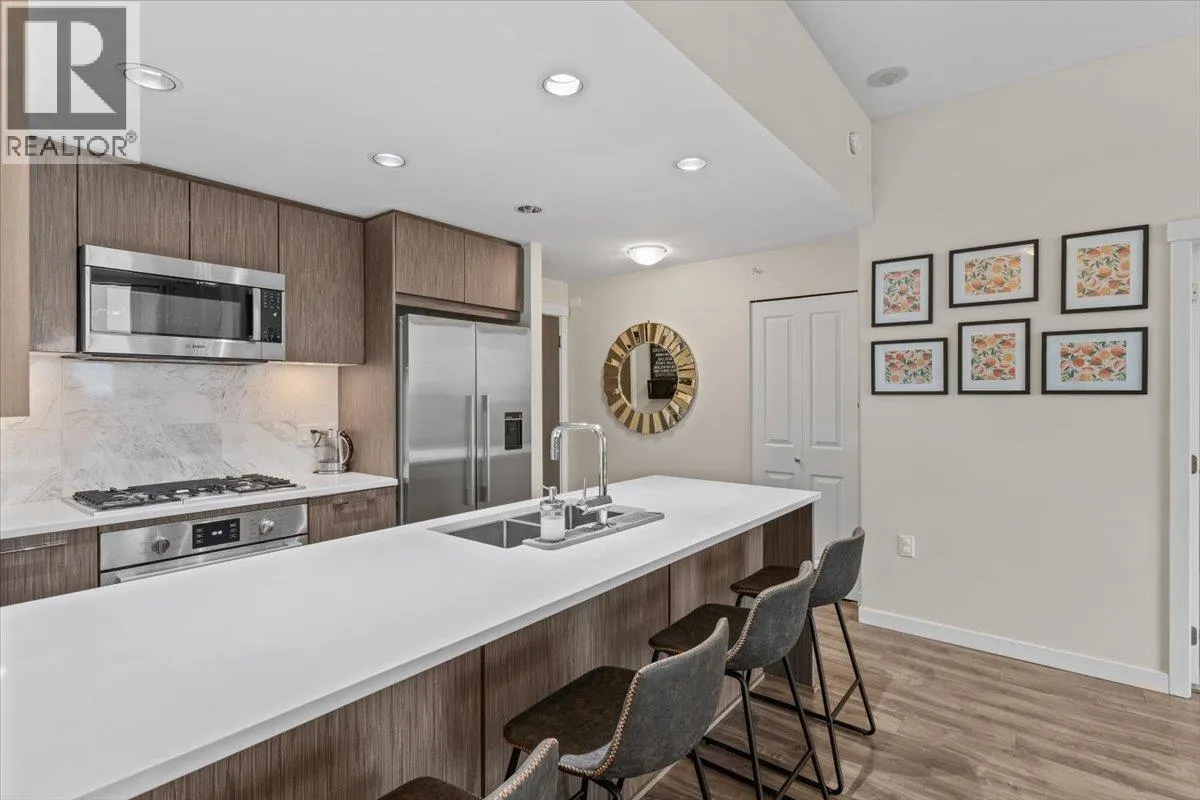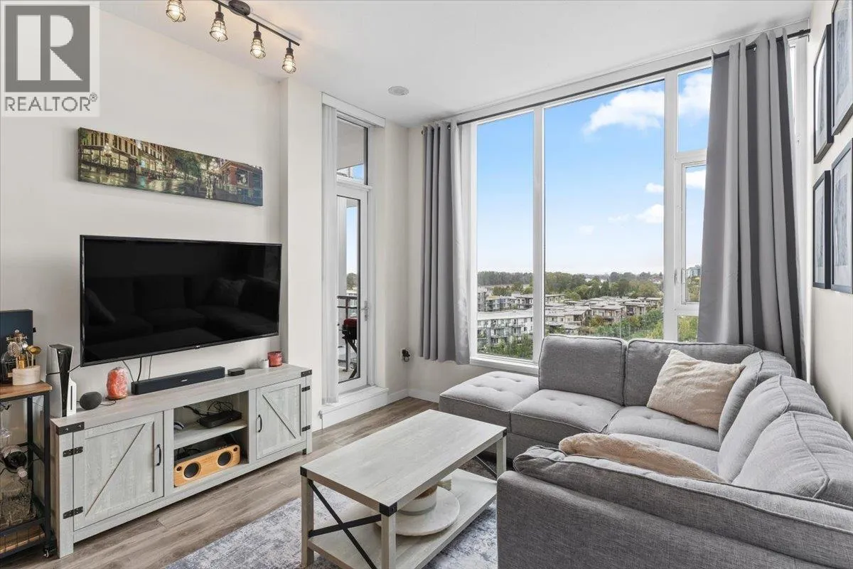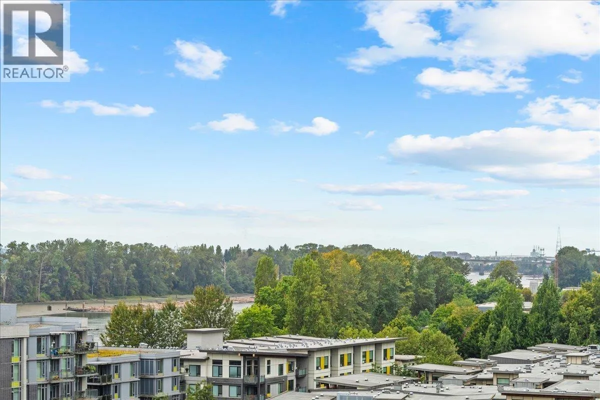 SUB PENTHOUSE VIEWS in this 2 Bed + Den at Rhythm by Polygon. The 1O' ceilings and unobstructed west-facing views of the Fraser River make for great sunsets on the balcony. Bright, open layout with separated bedrooms, modern kitchen with quartz counters, s/s appliances, and ample storage. The den makes an ideal office, nursery, or storage/pantry. Enjoy top-tier amenities at Rhythm Club: A/C fitness centre, lounge, meeting room, and courtyard. Kid-friendly community steps to parks, playgrounds, Fraser River Trail, and 2 blocks from River District Town Centre. 1 parking, 1 locker. Easy access to Burnaby, Richmond & New West. OPEN HOUSE SUNDAY, MARCH 1st, 11AM - 12:30PM. (id:27476)