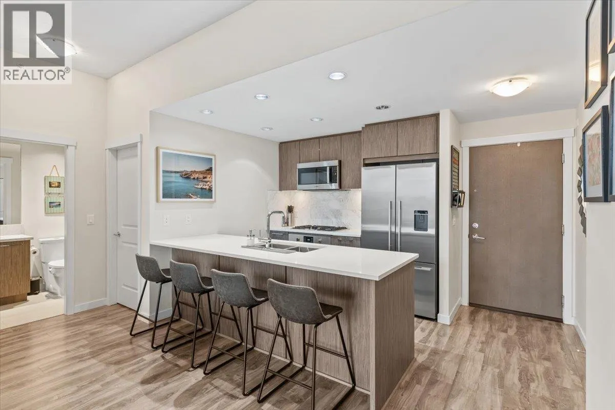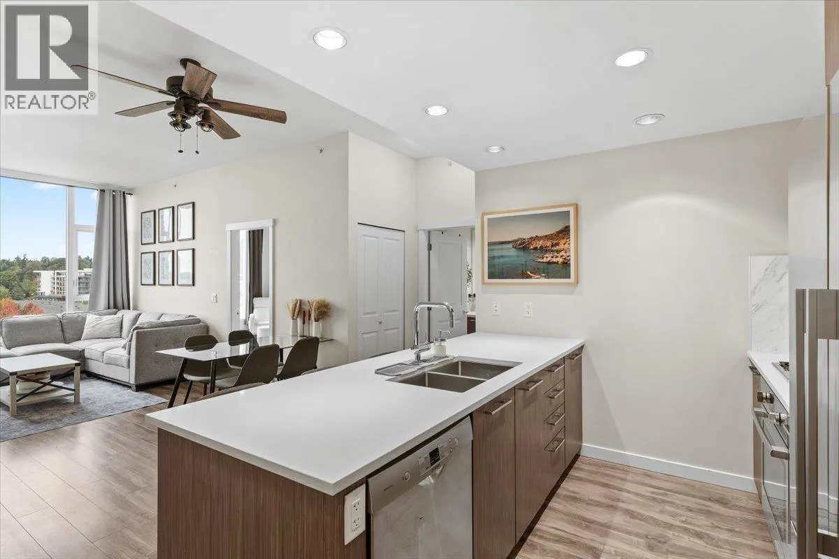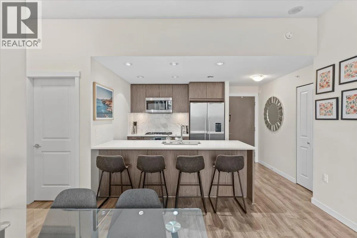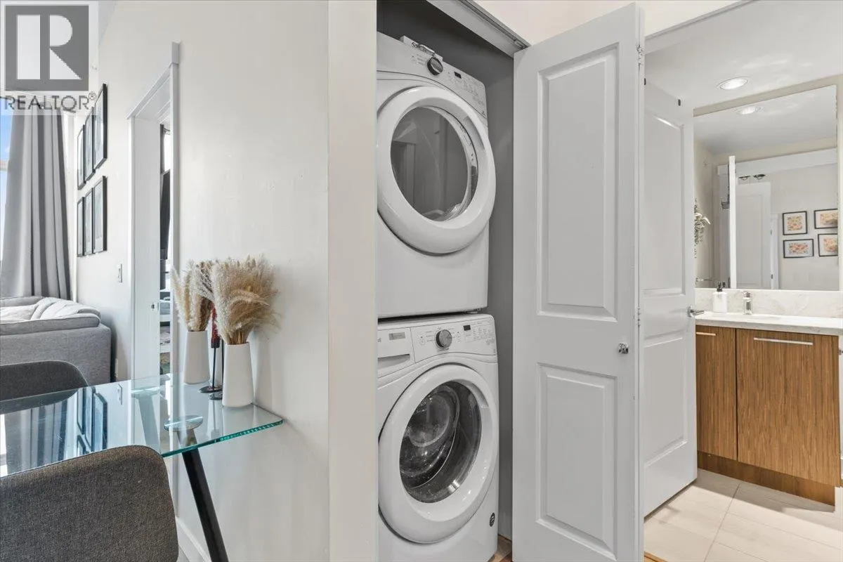 SUB PENTHOUSE VIEWS in this 2 Bed + Den at Rhythm by Polygon. The 1O' ceilings and unobstructed west-facing views of the Fraser River make for great sunsets on the balcony. Bright, open layout with separated bedrooms, modern kitchen with quartz counters, s/s appliances, and ample storage. The den makes an ideal office, nursery, or storage/pantry. Enjoy top-tier amenities at Rhythm Club: A/C fitness centre, lounge, meeting room, and courtyard. Kid-friendly community steps to parks, playgrounds, Fraser River Trail, and 2 blocks from River District Town Centre. 1 parking, 1 locker. Easy access to Burnaby, Richmond & New West. OPEN HOUSE SUNDAY, MARCH 1st, 11AM - 12:30PM. (id:27476)