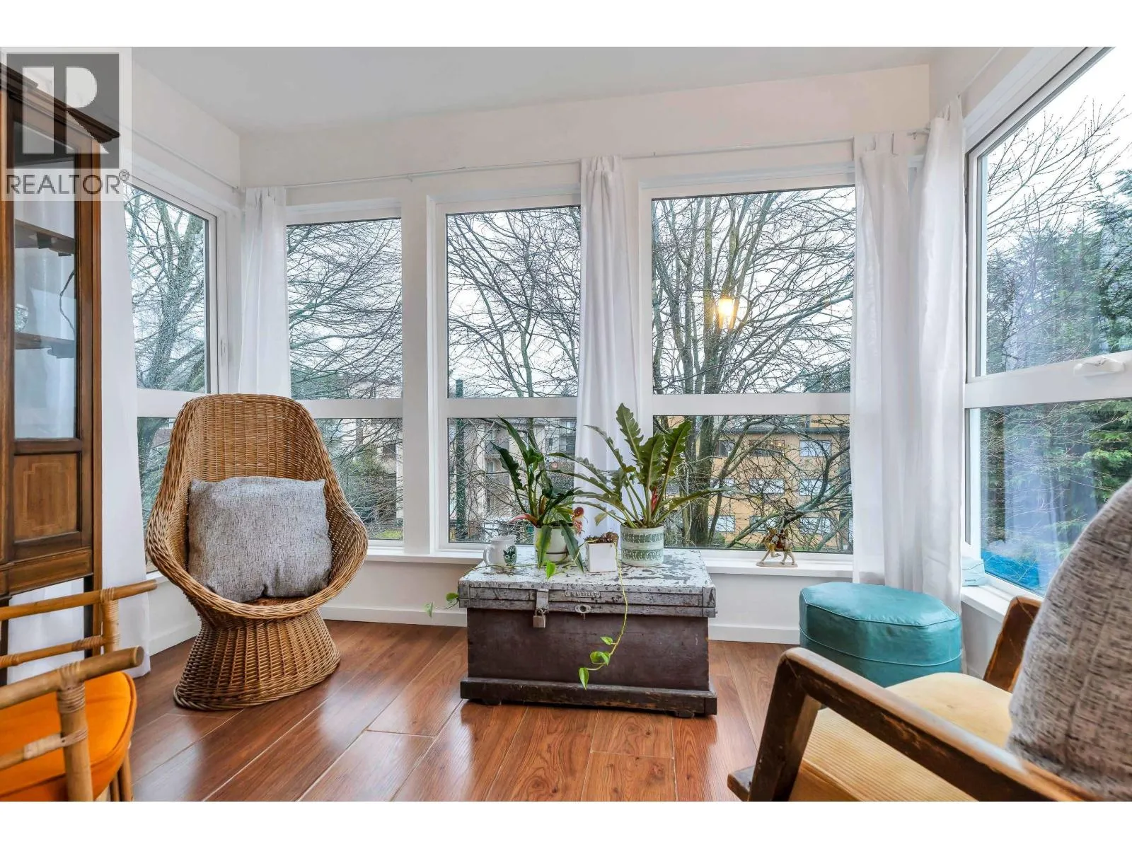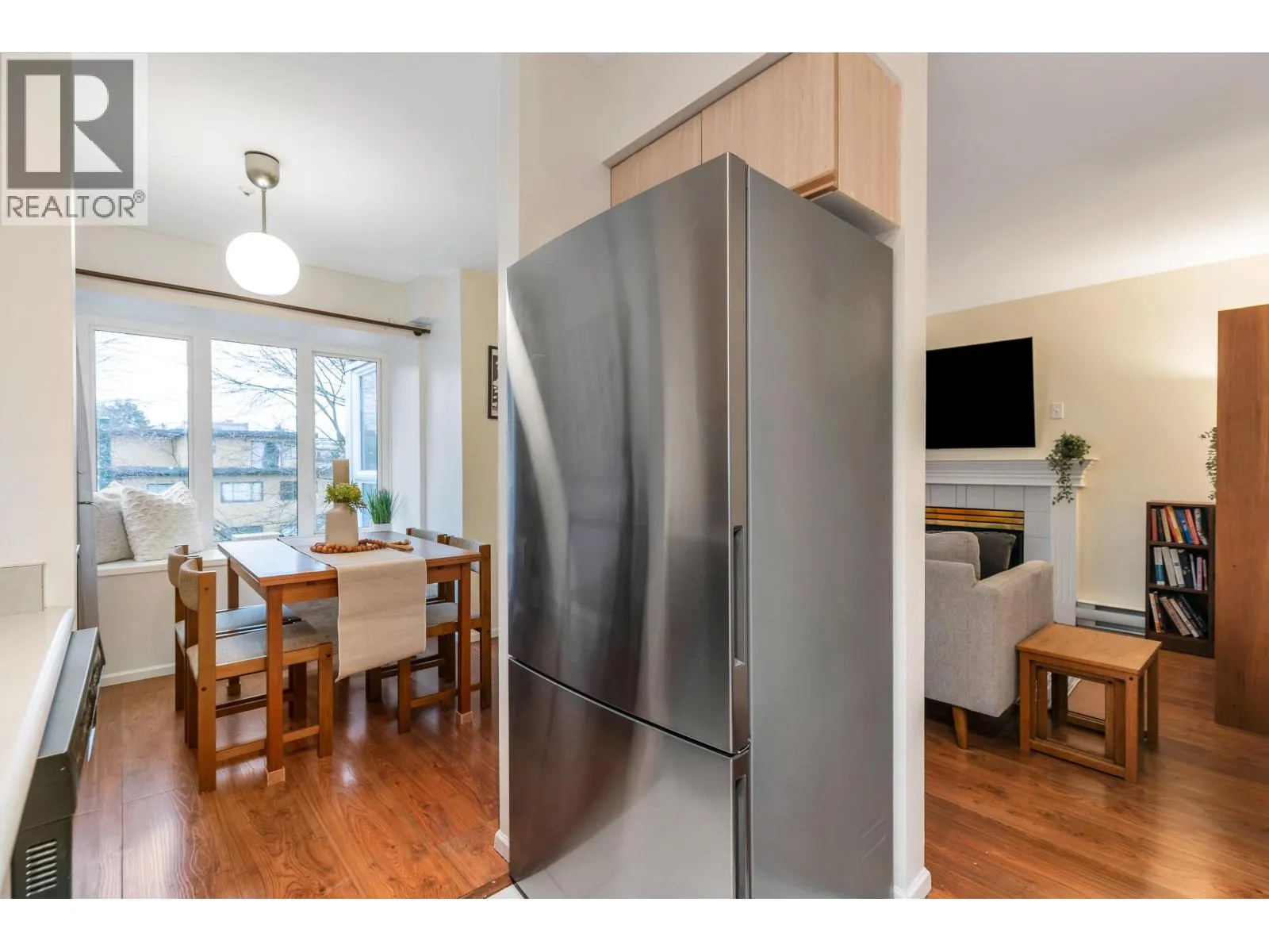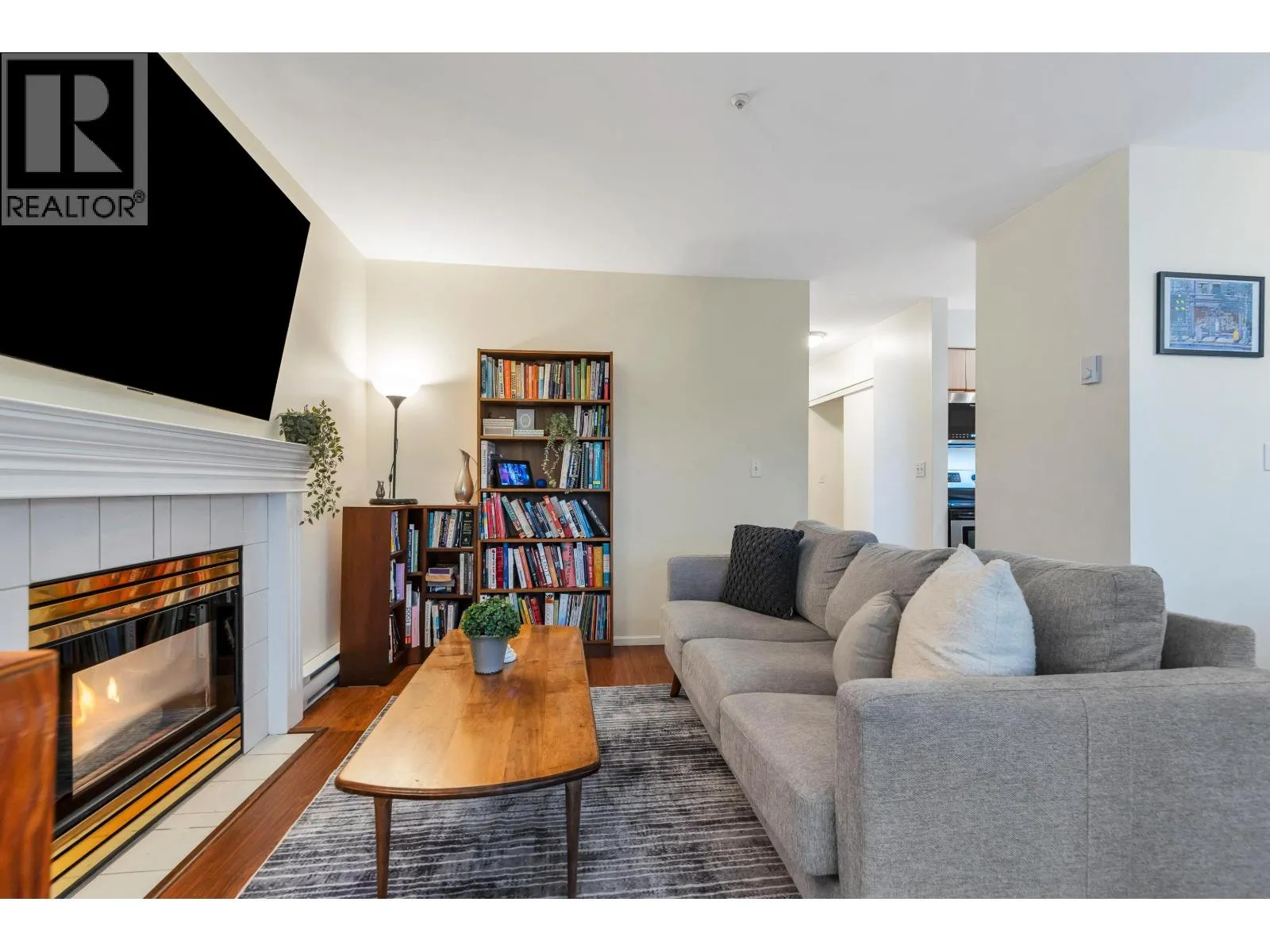 Welcome home to this bright and spacious top-floor, 856 sq ft, 2-bedroom corner unit at Harbourgate. Sunlight pours into this south and west-facing home. Enjoy downtown views and peek-a-boo mountain outlooks from both bedrooms. Large primary bedroom and bonus den or storage area and enclosed solarium offer flexible, year-round living space. You´ll love the unbeatable location--transit at your doorstep for quick downtown access, Oxford park is just 2 blocks away, walkable schools at all levels, breweries, restaurants, and shopping. Strata fee includes a cozy gas fireplace. Comes with 1 parking and bike storage. 1 pet allowed max 22lbs. Book your private showing today. (id:27476)