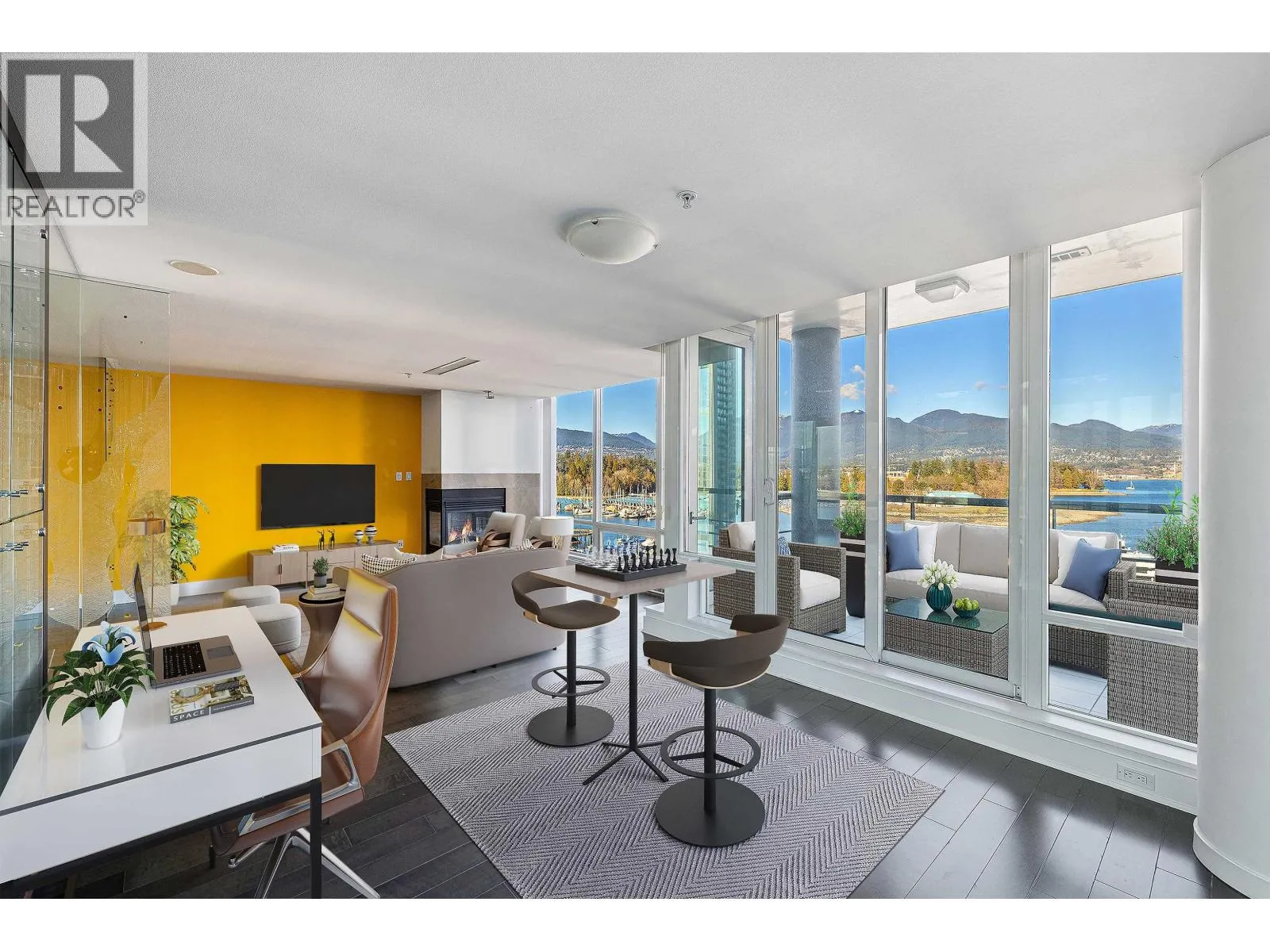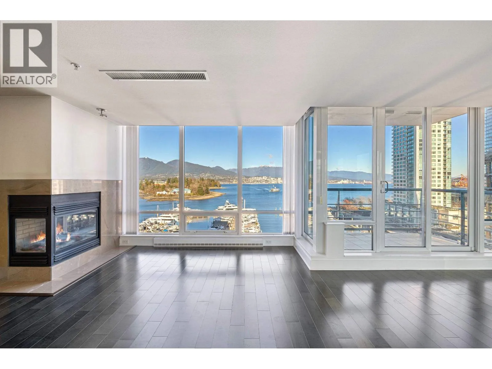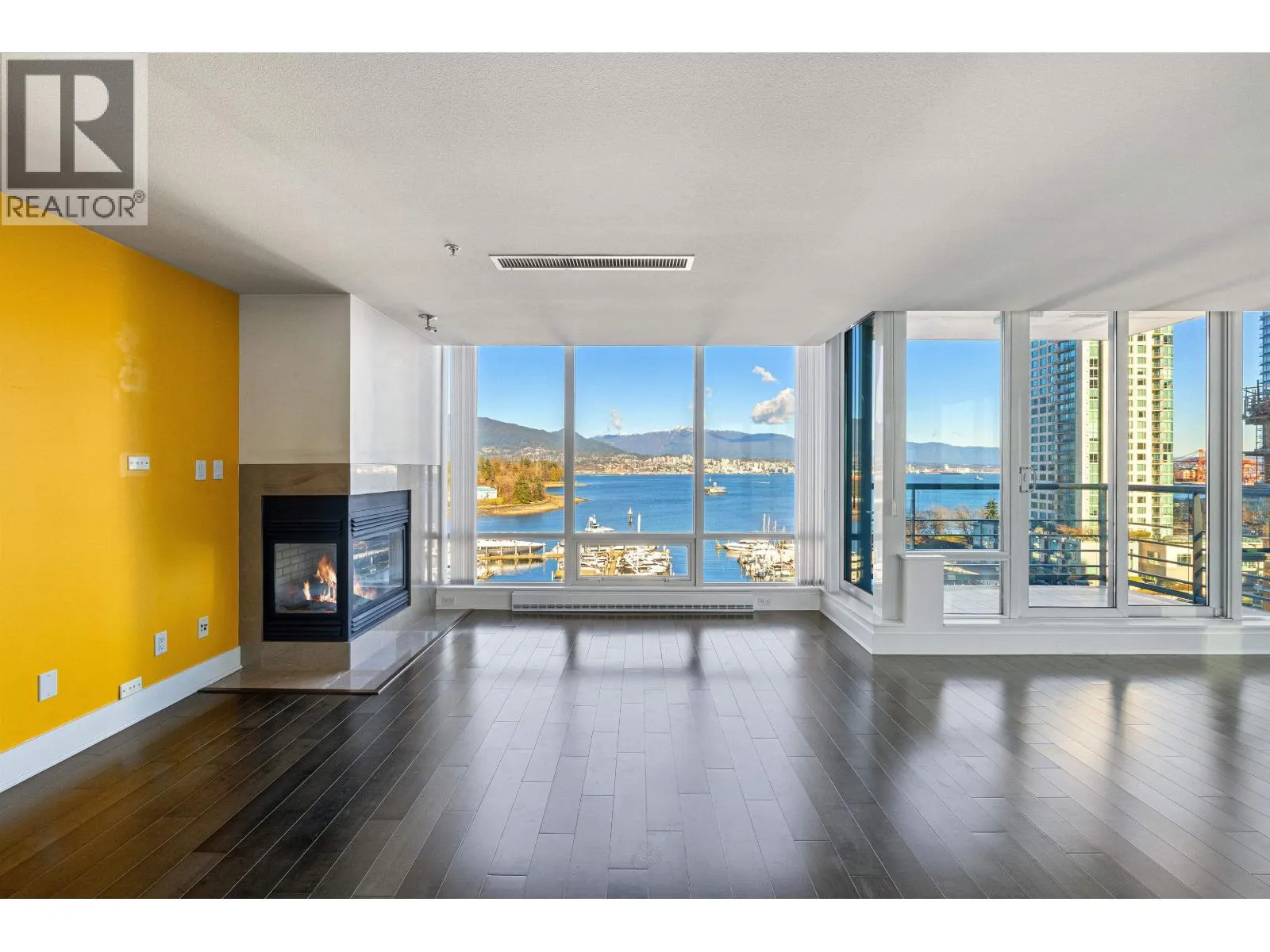 Exclusive waterfront living at Denia, perfectly located along the Coal Harbour Seawall. This spacious 2 bed, 2 bath and den home offers over 1,450 square ft with stunning unobstructed views of the marina, North Shore Mountains, and Stanley Park. Features include floor-to-ceiling windows, air conditioning, a gas fireplace, and a functional open layout ideal for entertaining, along with excellent storage. Building amenities include some of the best in Coal Harbour: 24-hour concierge, indoor pool, sauna, steam room, and gym. Includes two parking stalls and one storage locker. (id:27476)