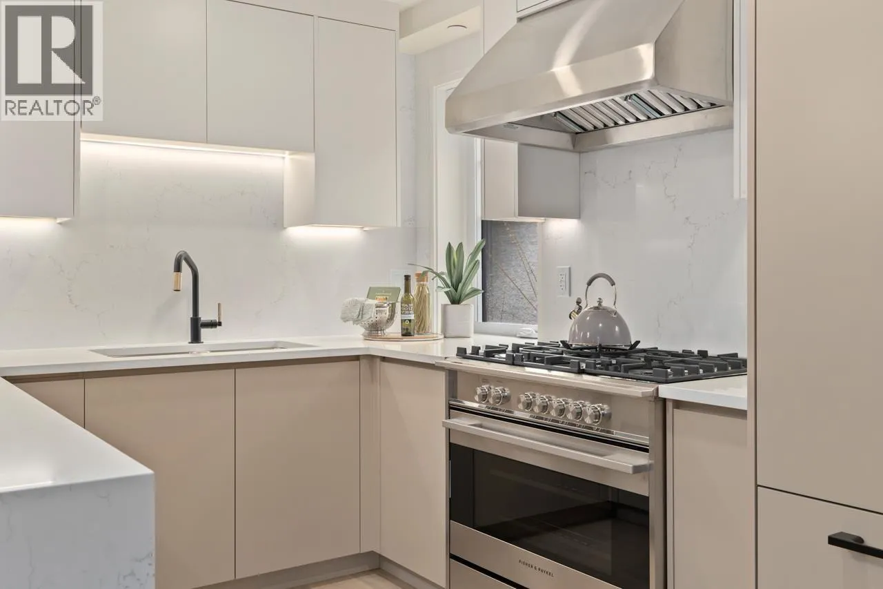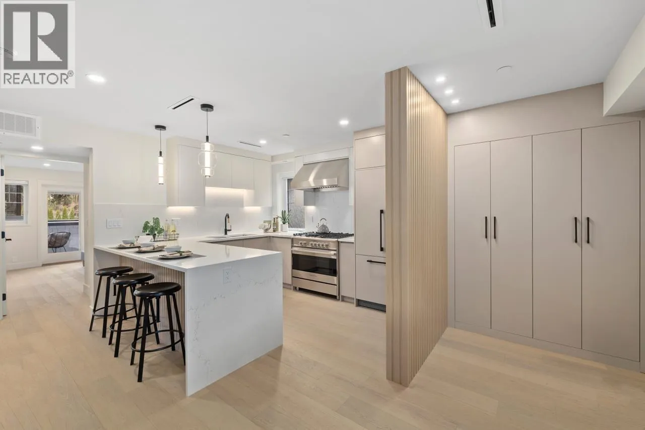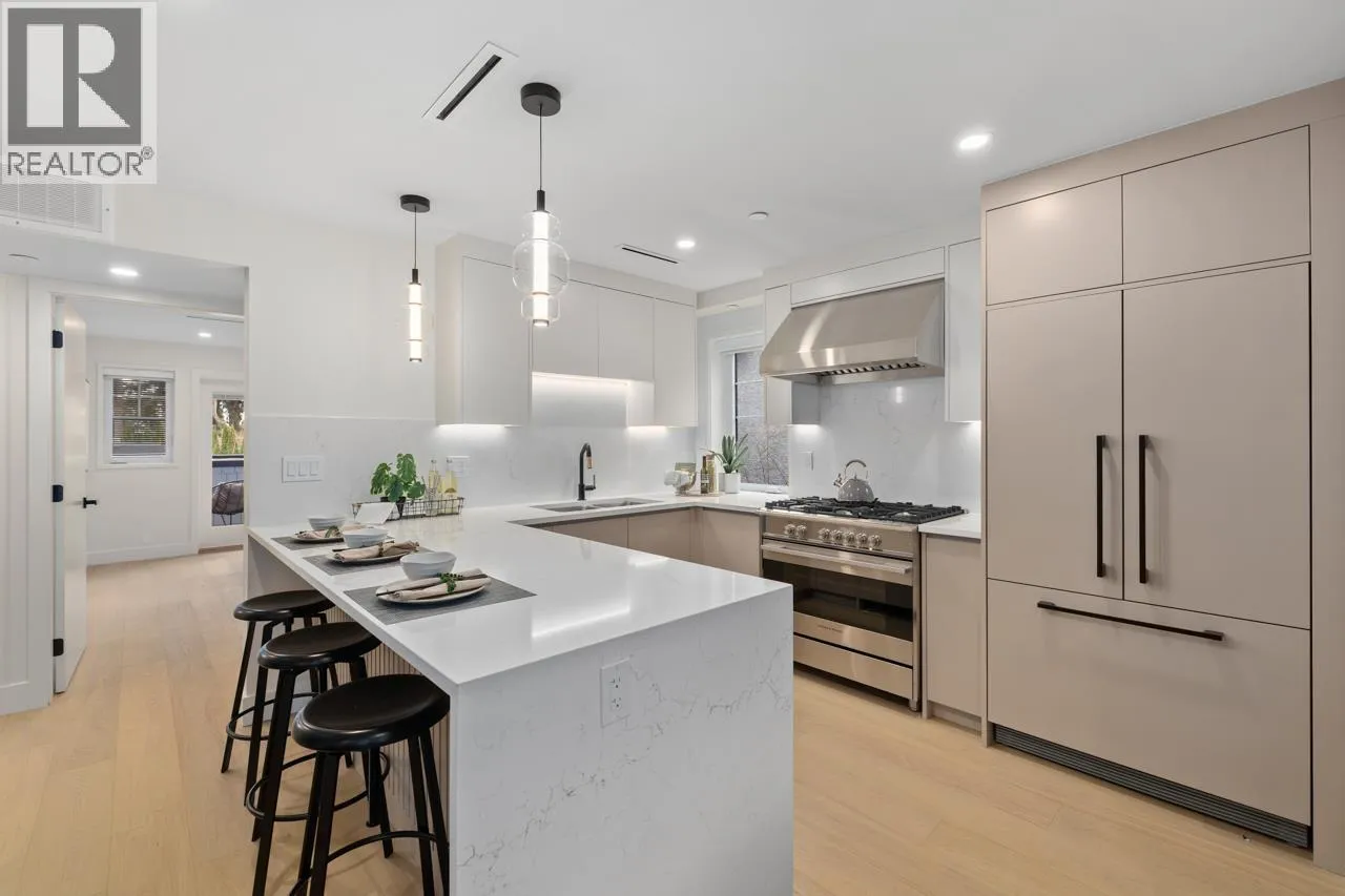 Welcome to 5West built by Asanti homes, this 3 + Den home offers functionality and style in every detail! This residence spans 2 thoughtfully designed levels with the main floor boasting a spacious living room, dining area perfect for large family gatherings, gourmet kitchen, custom BCG cabinetry, integrated appliances and a large pantry. The home features a main floor primary bedroom with ensuite bathroom to accommodate all families. The upper level is perfect for the family retreat with 2 bedrooms and secondary family room/office. Enjoy the spacious fenced yard, storage locker and partially covered parking with unbeatable walkability to all of Kerrisdale's amenities. Open House March Sat/Sun 28tht/29th 2-4pm (id:27476)