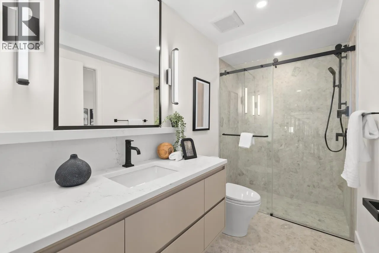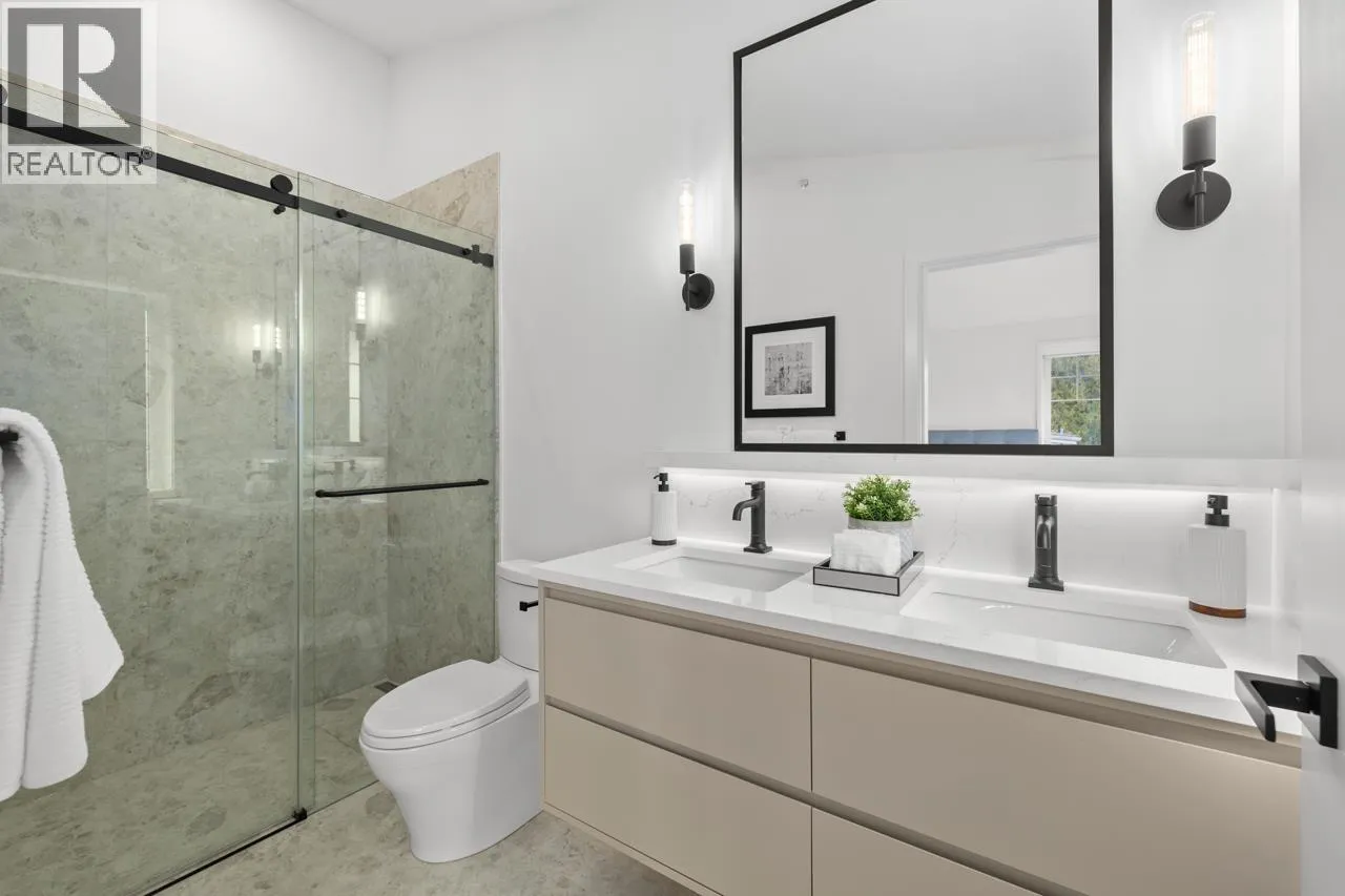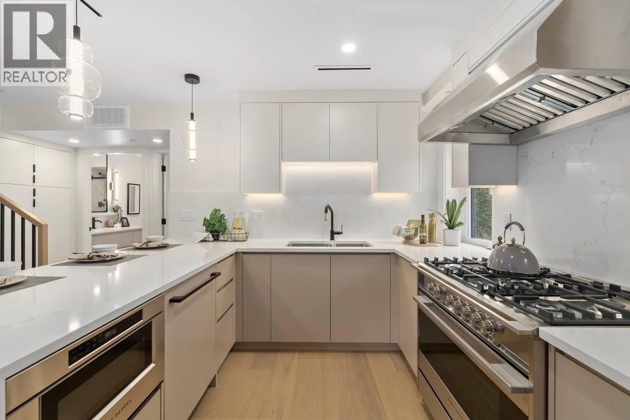Welcome to 5West built by Asanti homes, this 3 + Den home offers functionality and style in every detail! This residence spans 2 thoughtfully designed levels with the main floor boasting a spacious living room, dining area perfect for large family gatherings, gourmet kitchen, custom BCG cabinetry, integrated appliances and a large pantry. The home features a main floor primary bedroom with ensuite bathroom to accommodate all families. The upper level is perfect for the family retreat with 2 bedrooms and secondary family room/office. Enjoy the spacious fenced yard, storage locker and partially covered parking with unbeatable walkability to all of Kerrisdale's amenities. Open House March Sat/Sun 28tht/29th 2-4pm (id:27476)