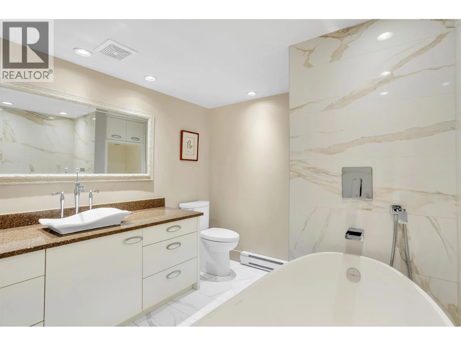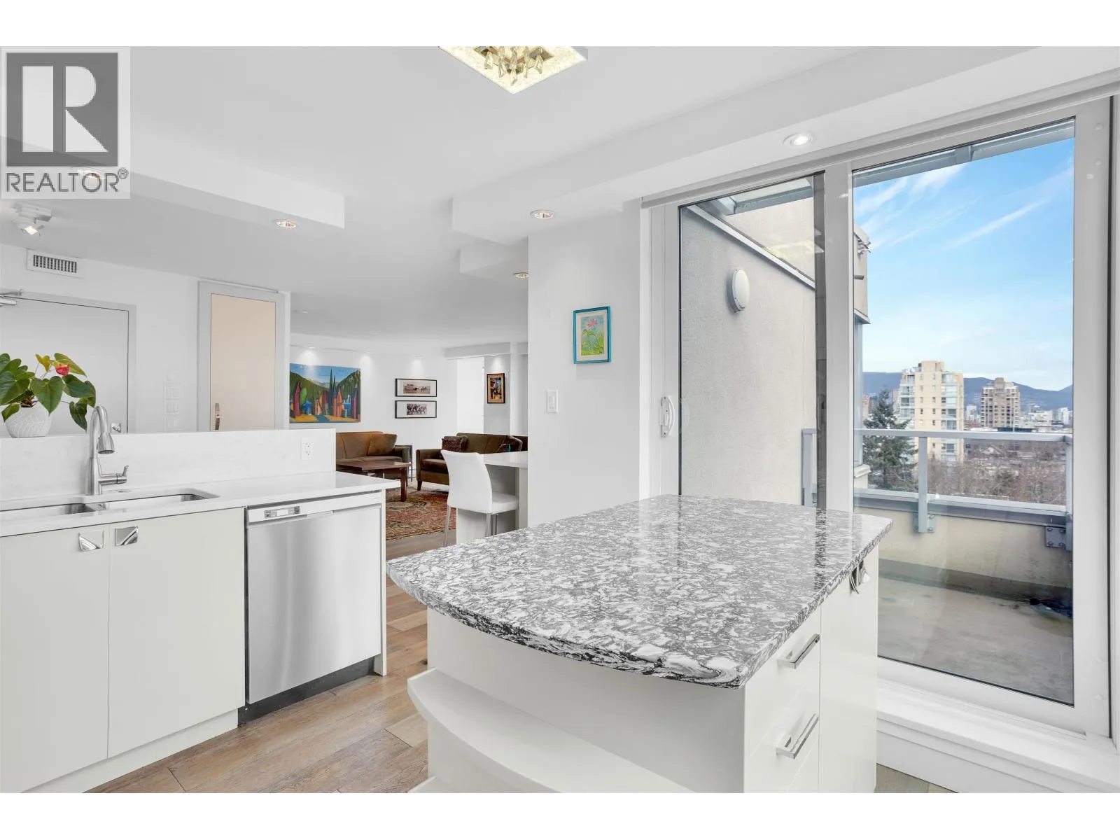 W/ amazing views of the city, North Shore Mountains, & English Bay, this impressive 1,479 sqftt sub-penthouse residence offers 3-beds, 2-baths, & 3 balconies. Natural light cascades through the open concept layout. W/ luxury hardwood floors throughout, the dining rm with bespoke wine bar leads into an expansive living rm with gas FP, a balcony, & a solarium with stellar views. The bright kitchen features S/S appliances, robust cabinet space with integrated storage features, stone counters, island, & balcony access for al-fresco dining. The primary bed boasts a balcony, spa-like ensuite with soaker tub & glass enclosed shower, & W-I-C with custom storage. Includes in-suite laundry, 2 side-by-side parking, & storage. Prime Fairview neighbourhood. OPEN HOUSE: WED. MAR. 4 @ 12-1pm & SAT. MAR. 7 @ 2-4pm (id:27476)