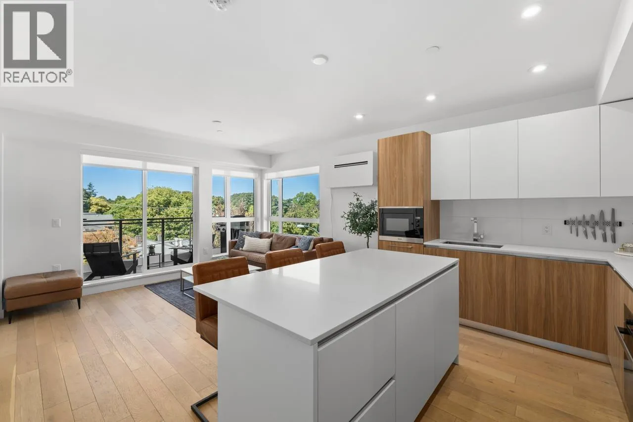 Welcome to 306 at Main & Twentieth-a sophisticated 2 bed + DEN + SOLARIUM, 2 bath home in the heart of Mount Pleasant! Designed with versatility & style in mind, this home boasts a spacious and open floorplan & private balcony ideal for everyday living & entertaining. This residence is bathed in natural light, highlighting the sleek modern kitchen featuring MIELE gas appliances & custom quartz island, while added A/C ensures year-round comfort. The elegant primary suite incorporates a generous closet space & a spa-inspired ensuite. Just steps from vibrant Main Street-renowned cafes, award-winning dining at Published on Main, boutique shops, lush parks, & rapid transit-this home offers an unmatched blend of luxury, function, & lifestyle in one of Vancouver's most sought-after communities. 1 parking included. (id:27476)