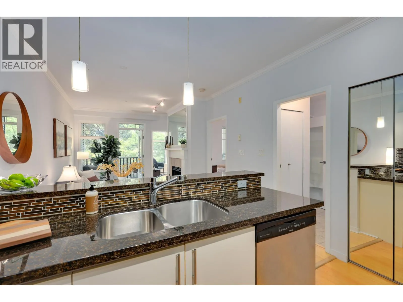 Enjoy the classic charm of the highly sought-after and meticulously maintained Andaluca building in the heart of the West End! This well-appointed one-bedroom + den + flex ON THE BRIGHT & QUIET SIDE OF THE BUILDING offers a highly efficient and open-concept floorplan with overheight ceilings. Unit boasts updated stainless steel appliances, stone countertops, bamboo flooring, natural gas fireplace (included in your strata fees!), in-suite laundry, and private treed outlook that's like being in a park. Rentals/pets welcome, with extra large parking included. Steps to beaches, the seawall, parks, and the shops/restaurants of Davie, Denman, and Robson Streets! (id:27476)