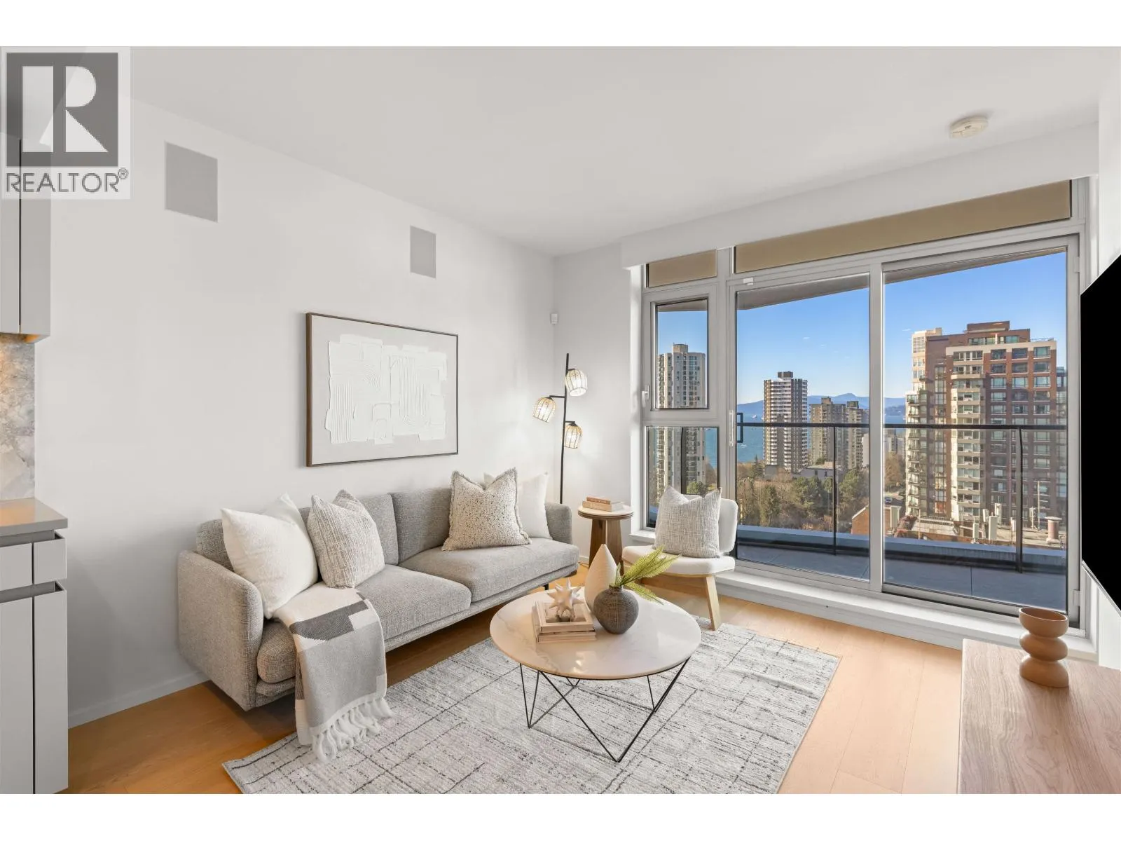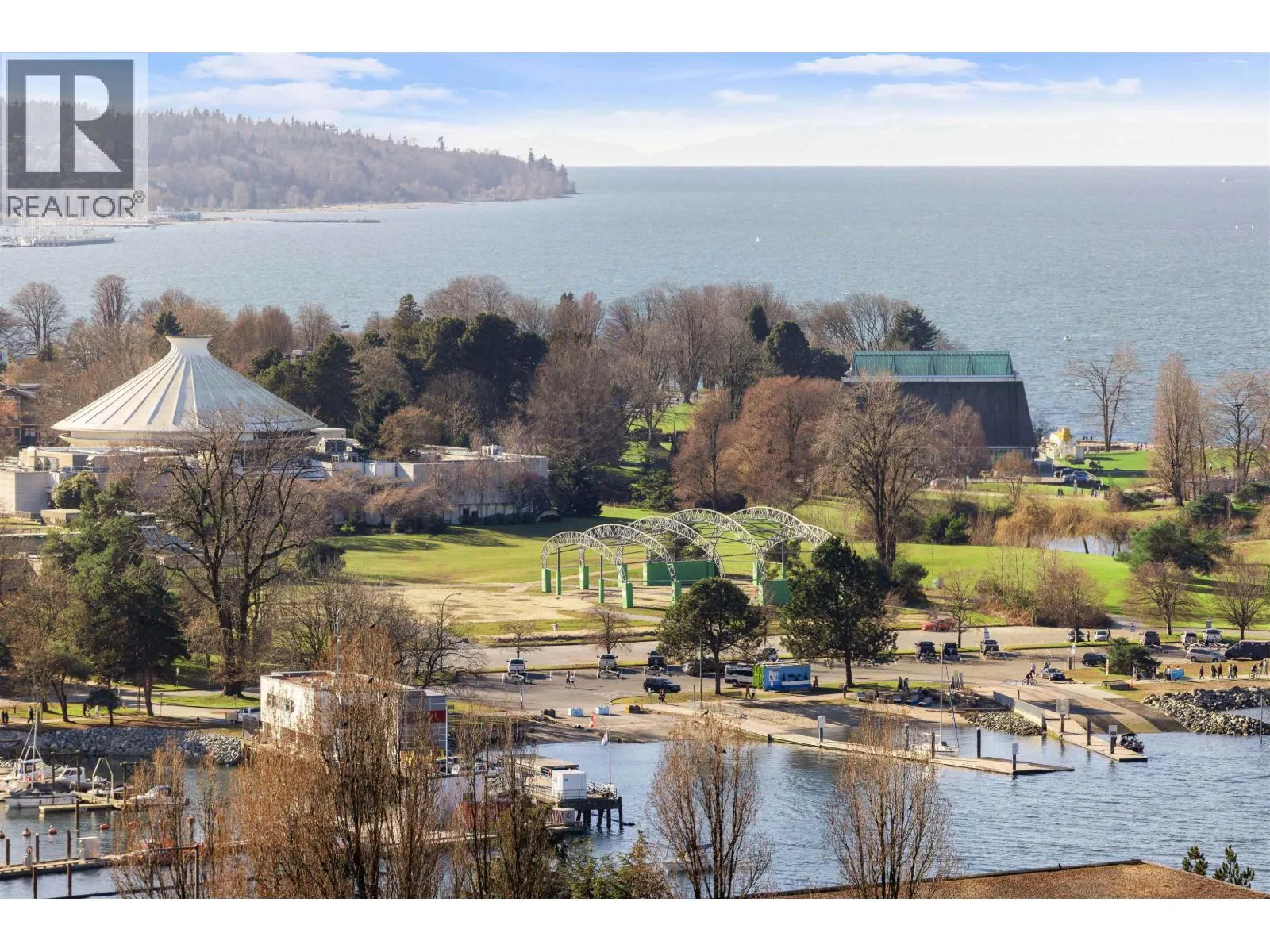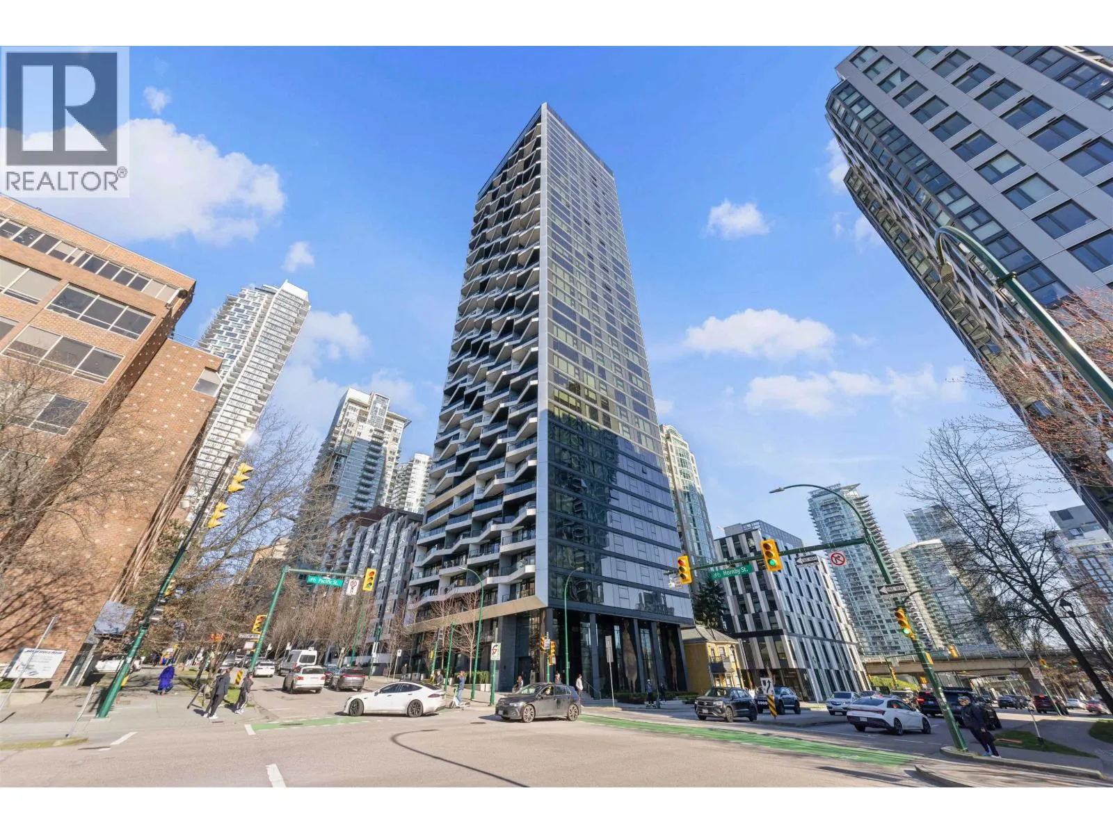 The Pacific by Grosvenor. This highly efficient plan boasts beautiful views of the Ocean, Mountains & English Bay. An upgraded Millson Technology includes security, lighting control, motorized sunshades & an entertainment system. The kitchen is furnished by Snaidero of Italy & equipped with Wolf, Miele, & Sub-Zero appliances, a large island, quartz counters & marble backsplash. The bathroom is clad with marble, featuring floating vanities and plumbing fixtures by Dornbracht. Additional features include hardwood flooring, floor-ceiling windows, cooling/heating, & an EV-equipped parking stall. Amenities include a gym, terrace, lounge & 24/7 concierge. This Beach District location enjoys immediate proximity to abundant dining options, markets, shops & the recreation of the seawall & beaches. (id:27476)