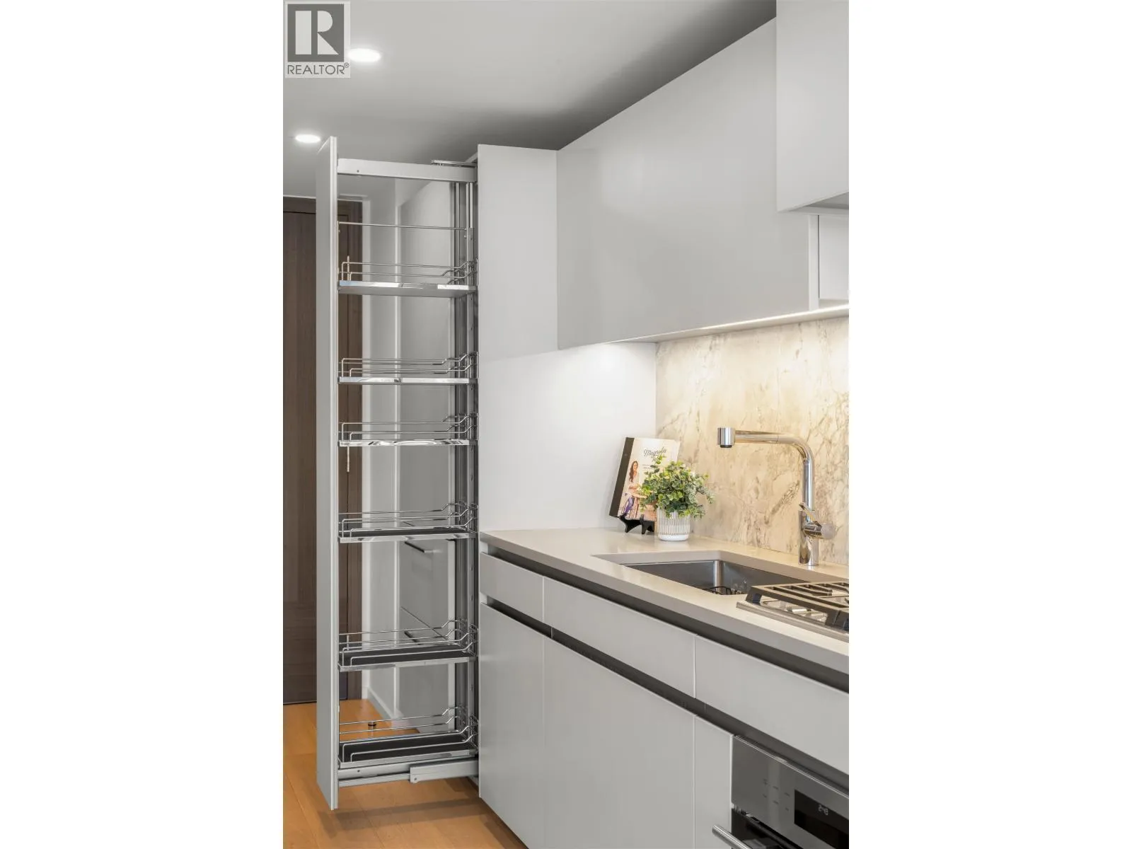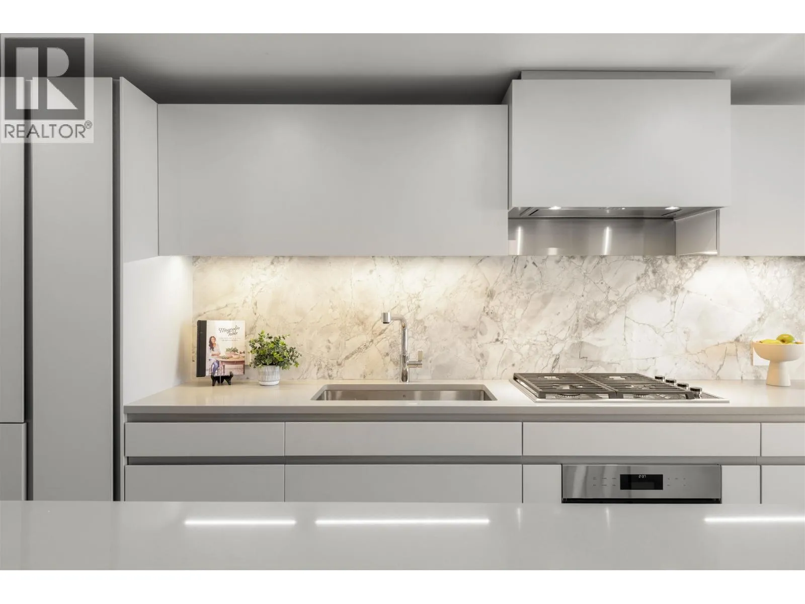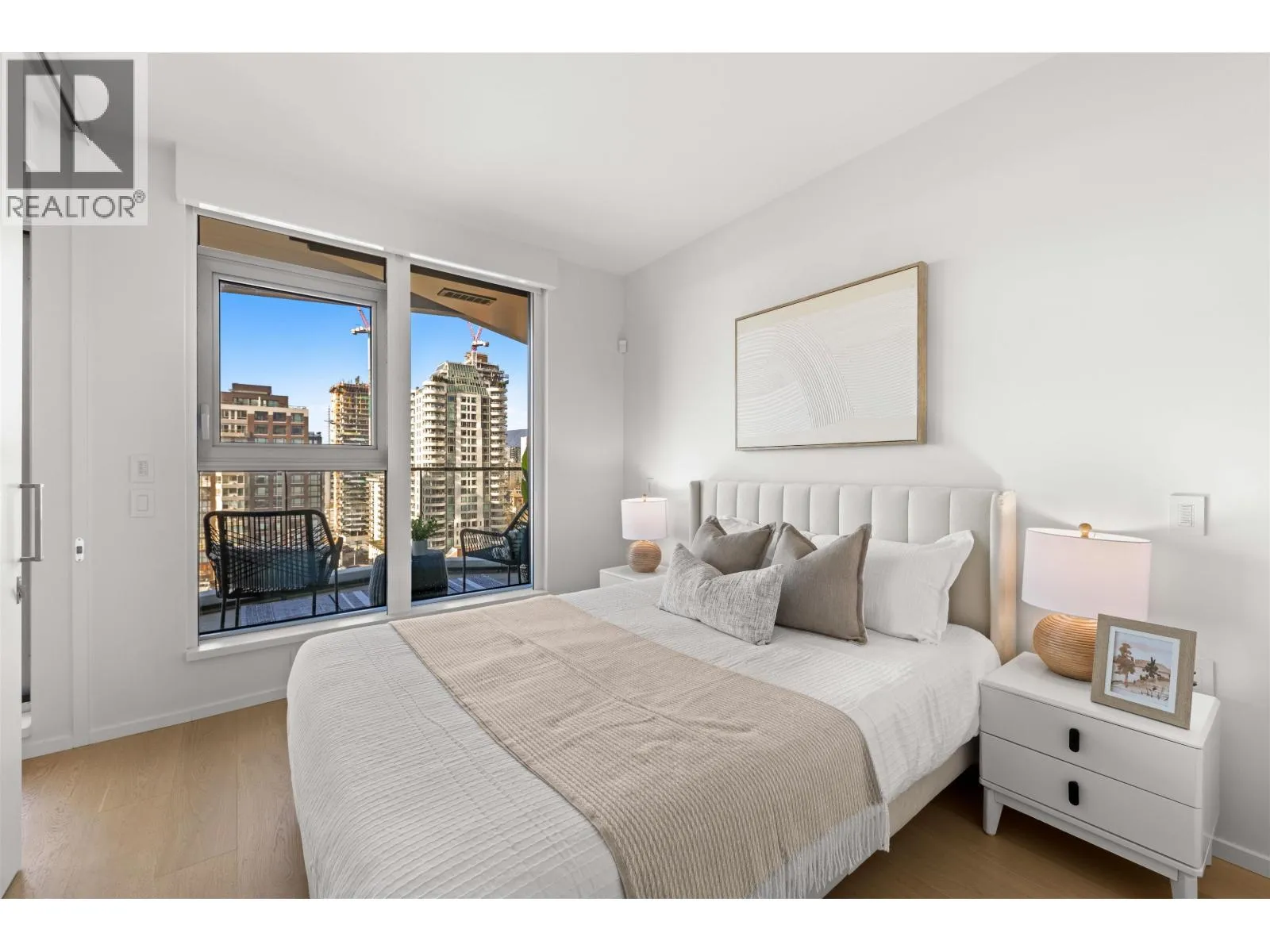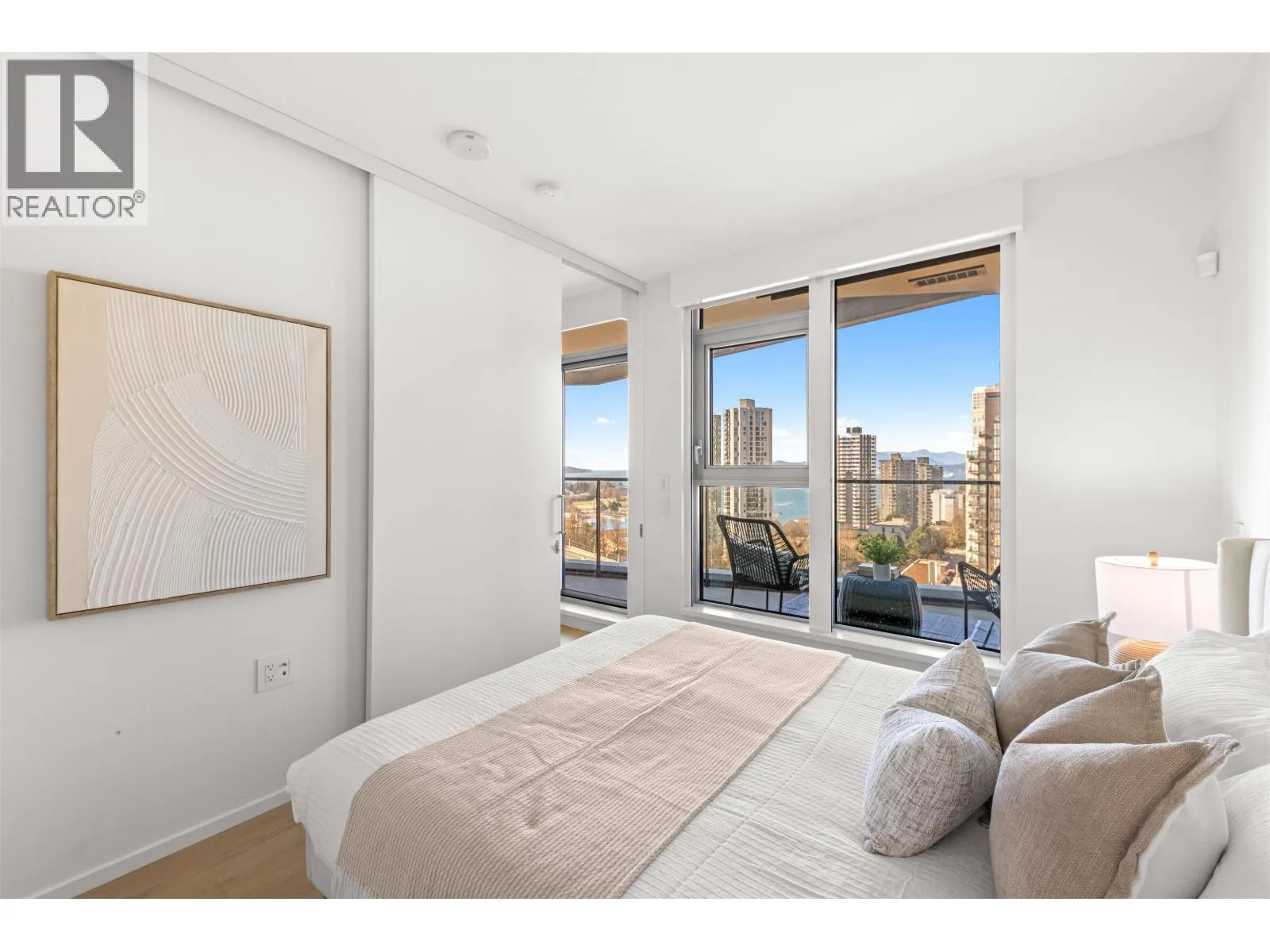 The Pacific by Grosvenor. This highly efficient plan boasts beautiful views of the Ocean, Mountains & English Bay. An upgraded Millson Technology includes security, lighting control, motorized sunshades & an entertainment system. The kitchen is furnished by Snaidero of Italy & equipped with Wolf, Miele, & Sub-Zero appliances, a large island, quartz counters & marble backsplash. The bathroom is clad with marble, featuring floating vanities and plumbing fixtures by Dornbracht. Additional features include hardwood flooring, floor-ceiling windows, cooling/heating, & an EV-equipped parking stall. Amenities include a gym, terrace, lounge & 24/7 concierge. This Beach District location enjoys immediate proximity to abundant dining options, markets, shops & the recreation of the seawall & beaches. (id:27476)