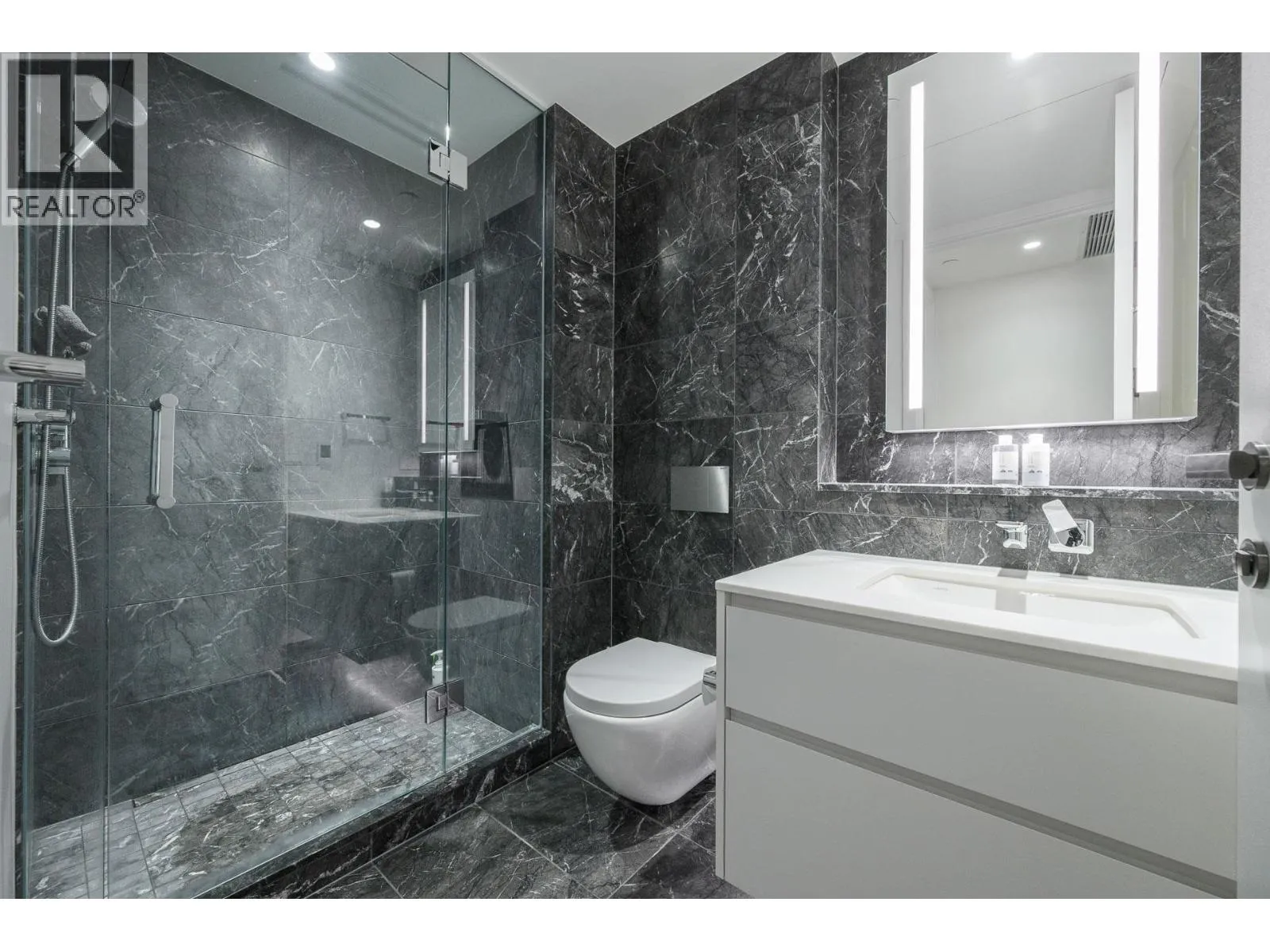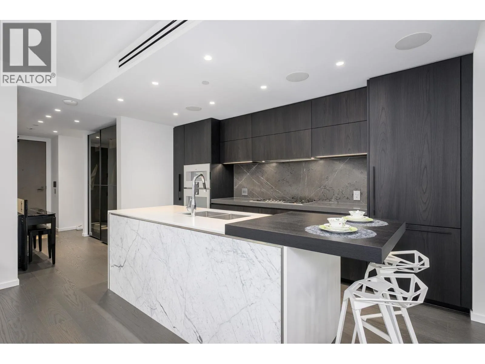 Experience refined living at Tesoro by Concert, the final residential chapter on False Creek. This rare 1200sqft 2bed 2bath home offers a spacious, well designed layout with clean lines and premium finishes. The Poliform kitchen features integrated Gaggenau appliances and marble detailing. An enhanced Savant smart home system controls lighting, climate and security. Marble clad bathrooms include radiant in floor heat and Dornbracht fixtures. Custom Poliform closets and A/C provide everyday comfort. Residents enjoy concierge service, hot and cold plunge pools, steam and sauna, plus a fireside lounge with granite fireplace and rich wood millwork overlooking a tranquil water feature. LEED Gold registered. Steps to the seawall and future East Park. (id:27476)
