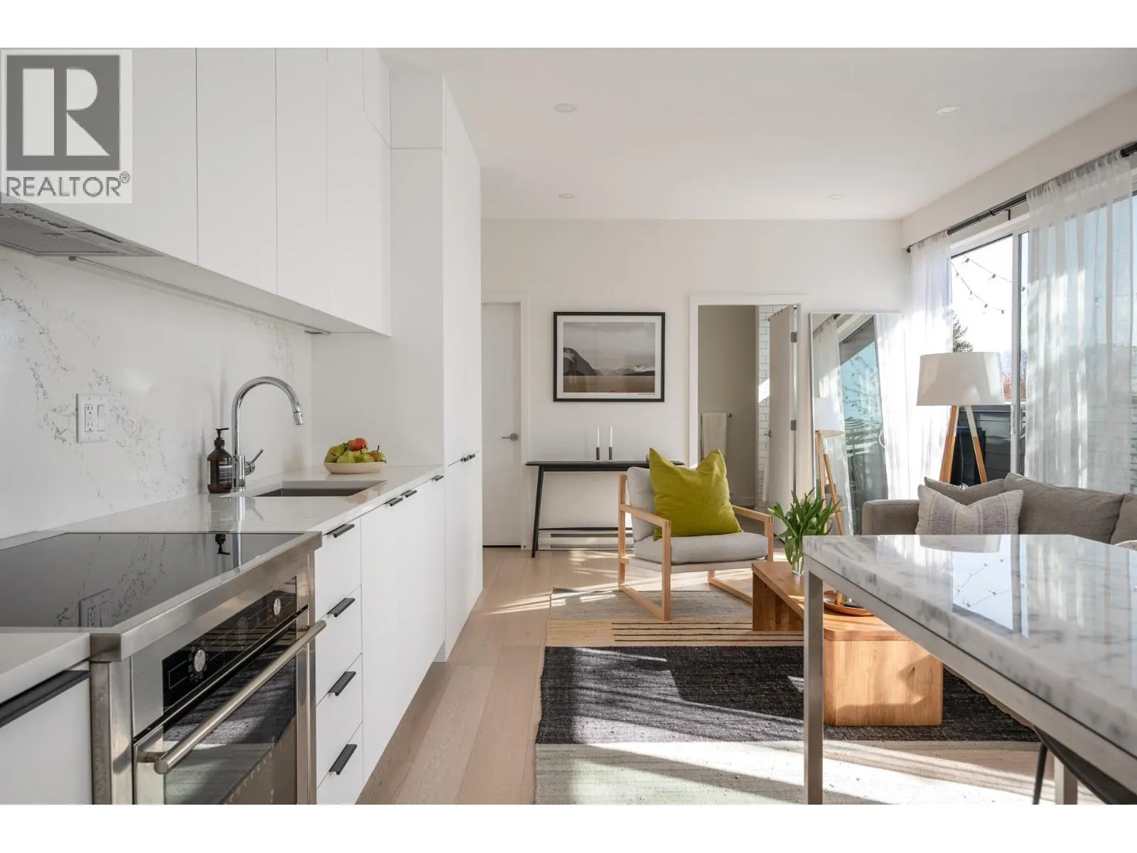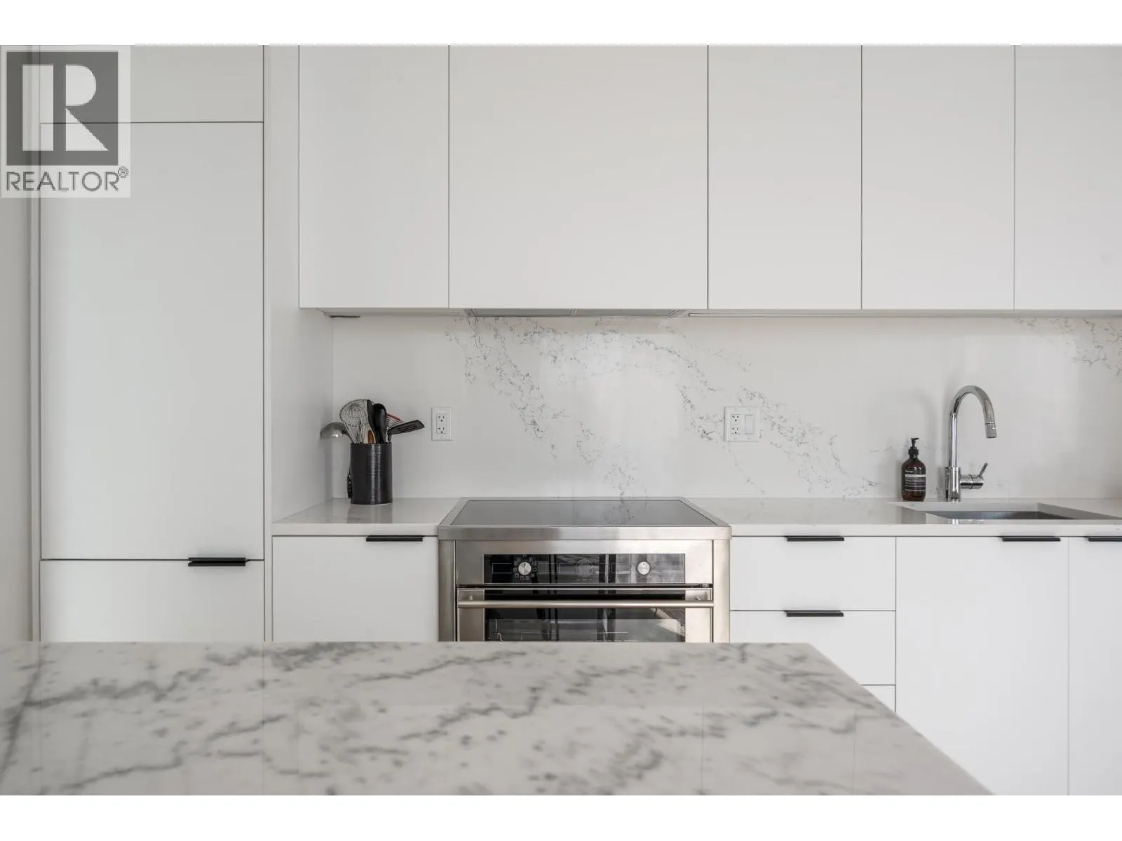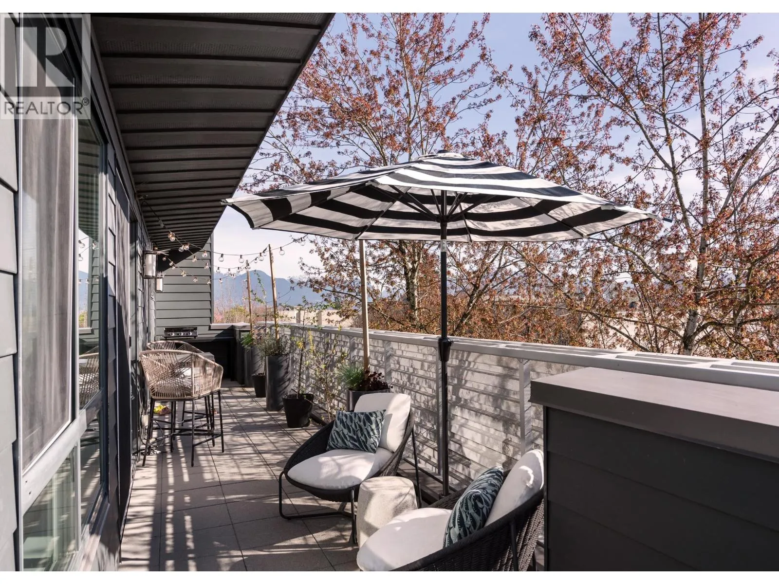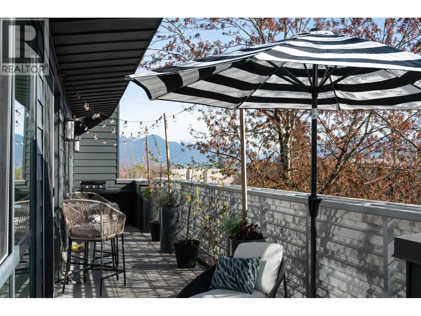 Step into this beautiful, light-filled penthouse with the perfect blend of modern, minimalist style and practical design. The contemporary kitchen features high-end integrated appliances, quartz countertops, and floor-to-ceiling matte cabinets, which provide ample storage for culinary essentials. Natural light floods the space with an entire wall of windows and an emphasis on true indoor/outdoor living. wide plankwood flooring and lofty 9ft ceilings add to the feeling of sophistication. Step outside onto the expansive 333ft terrace, which spansthe entire floor plan. The open-concept layout offers seamless flow between living areas. Located in the vibrant Fraserhood, this penthouse offers unparalleled convenience with a plethora of dining, shopping, and entertainment at your doorstep. Open House Sun, March 22nd, 2-4pm (id:27476)