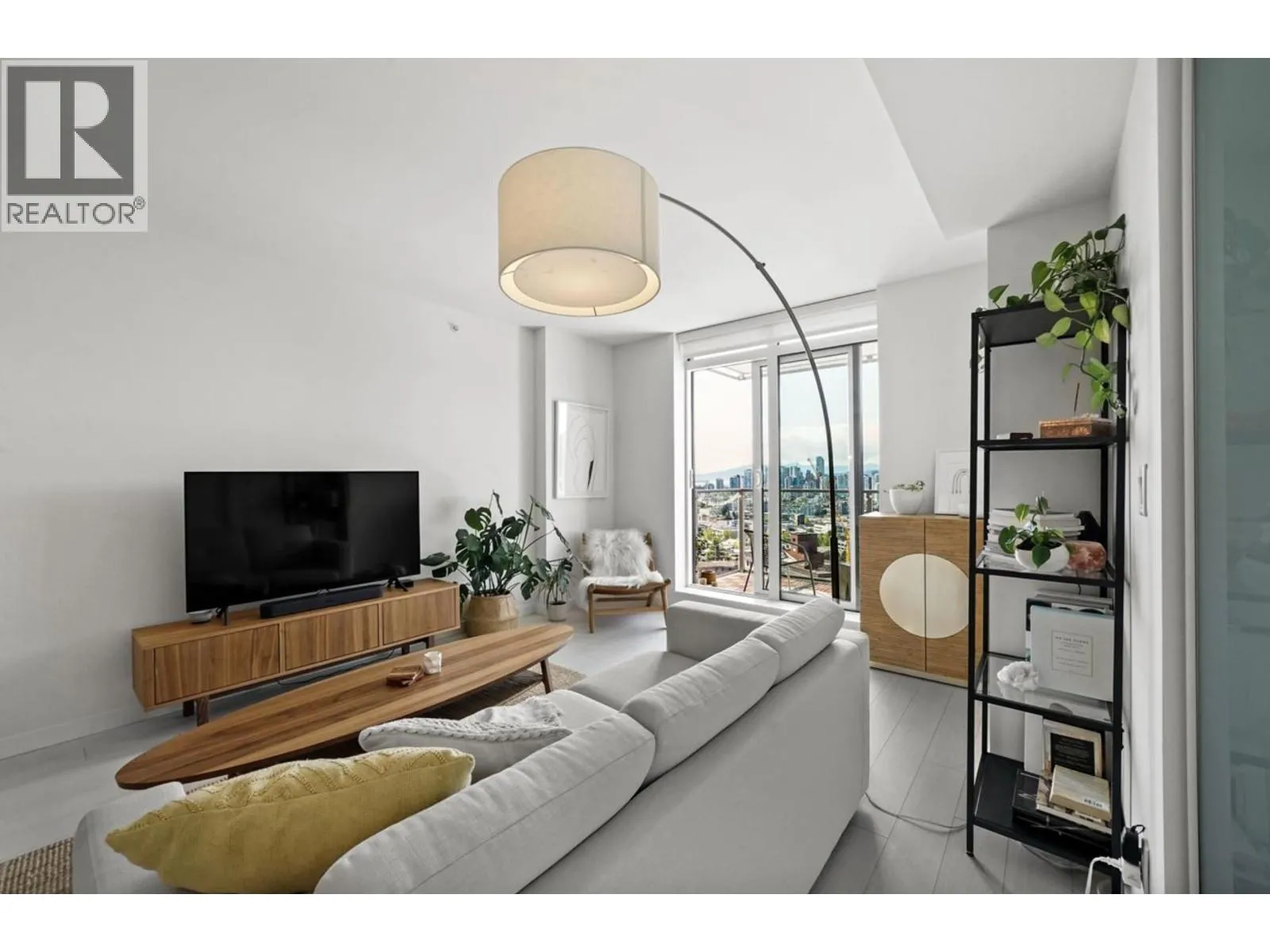 The VIEWS will blow you away. Stunning, UNOBSTRUCTED & PANORAMIC water, mountain and city views from your contemporary 2 bed in the heart of Mount Pleasant. This air conditioned home boasts a modern kitchen with integrated appliances/Porter + Charles Induction cook top, & quartz countertops. Interior finishes include in-floor bath heating, custom millwork wardrobes & laminate floors. Stroll along trendy Main St then sip wine on your large patio and enjoy spectacular sunsets over English Bay. Fantastic amenities include gym, rec room, guest suite, BBQ area, dog wash station & more. Includes 1 EV parking spot and HUGE storage locker. Pet and Rental friendly with a walk score of 96. Steps from transit, with Nesters & Starbucks downstairs. Call for your private showing of this incredible home! (id:27476)
