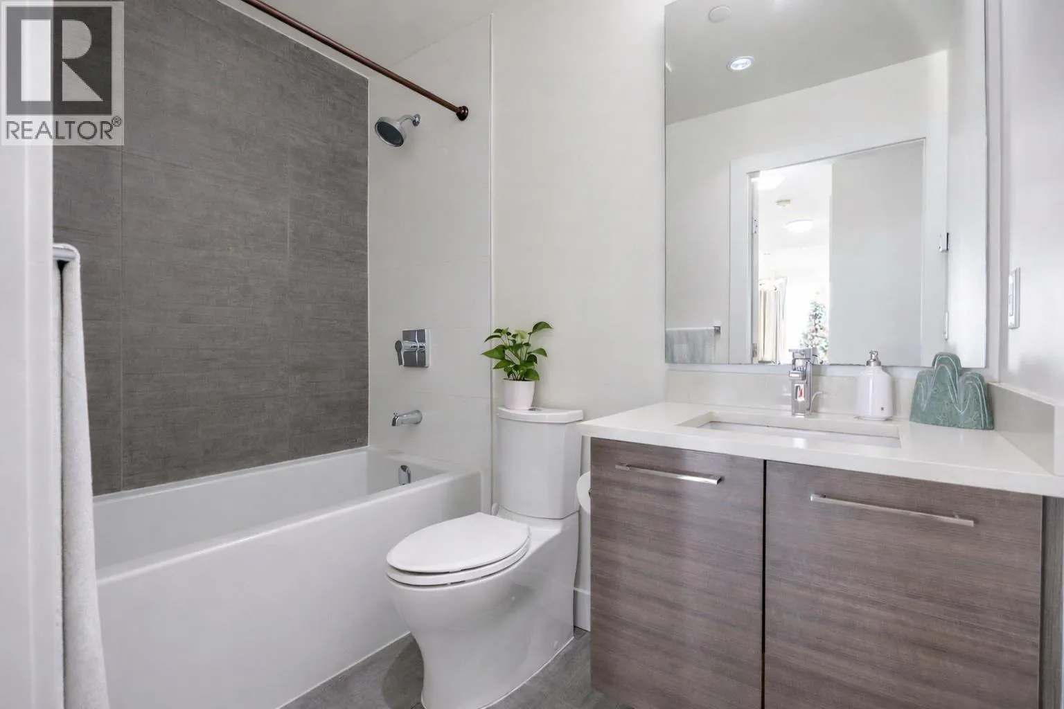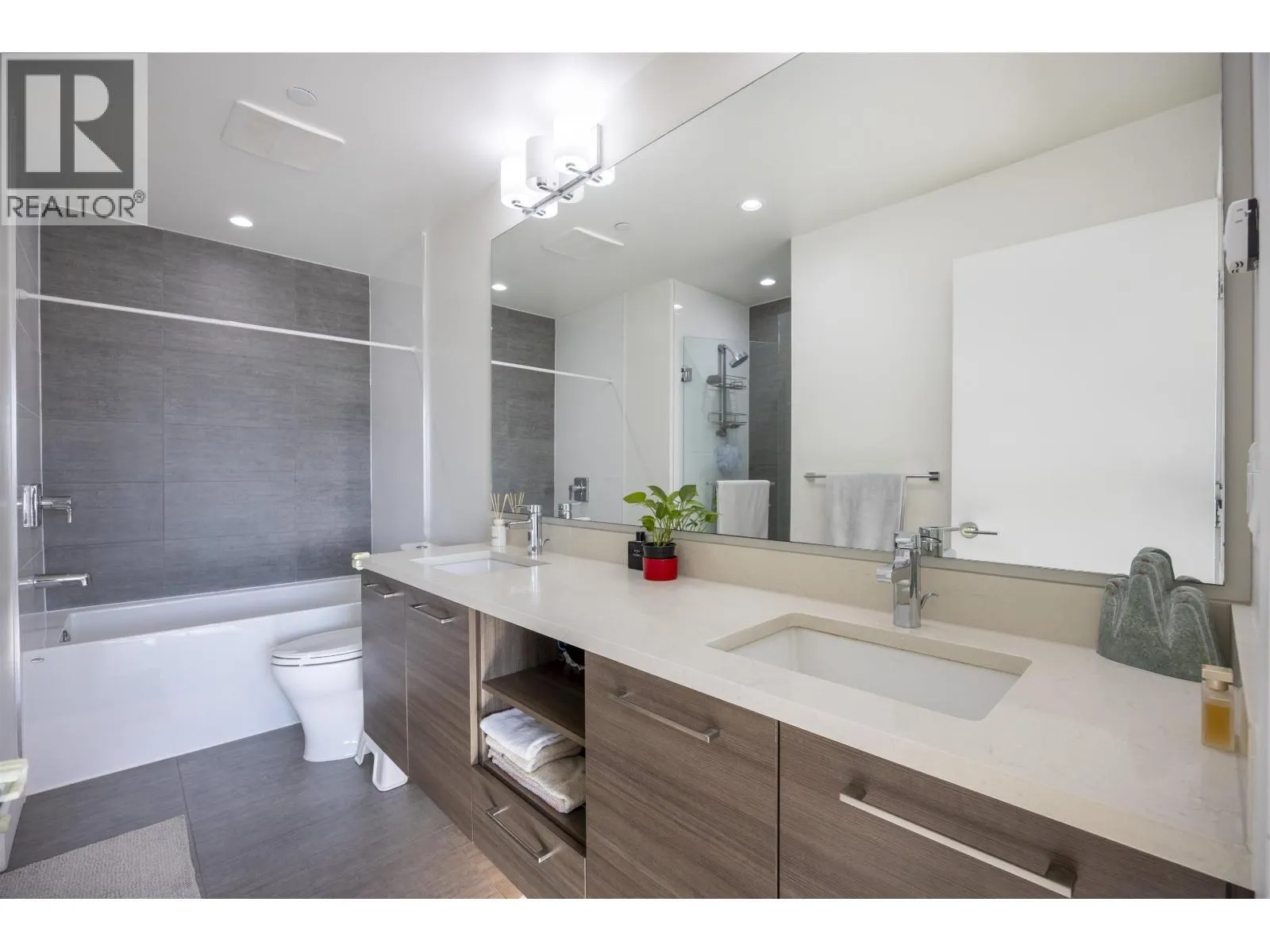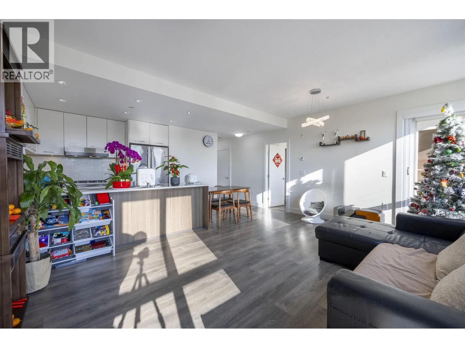 Welcome to this spacious 2b2b corner unit located in young and vibrant community River District! Down along the street you will find Starbucks, Save On Foods, Shoppers, Sushi Mura, Angus T(best croissant in town), restaurants and banks, DAYCARE, etc., offering quality and relaxing life. Featuring 9´ ceiling, open layout, KOHLER faucets, Jenn-Air appliances, quartz countertops, ceiling to floor windows with natural light. Upgrades include high end hood fan, laminate floor and new paint in 2022. The 14,000 sq.ft Club Central offers gym, pool, sauna, lounge room, meeting room basketball court, party room etc. Gas and floor radiant heating are included. Ideal for young family with kids, no neighbors below this unit. Come feel this fabulous neighbourhood! Some photos are virtually staged. (id:27476)