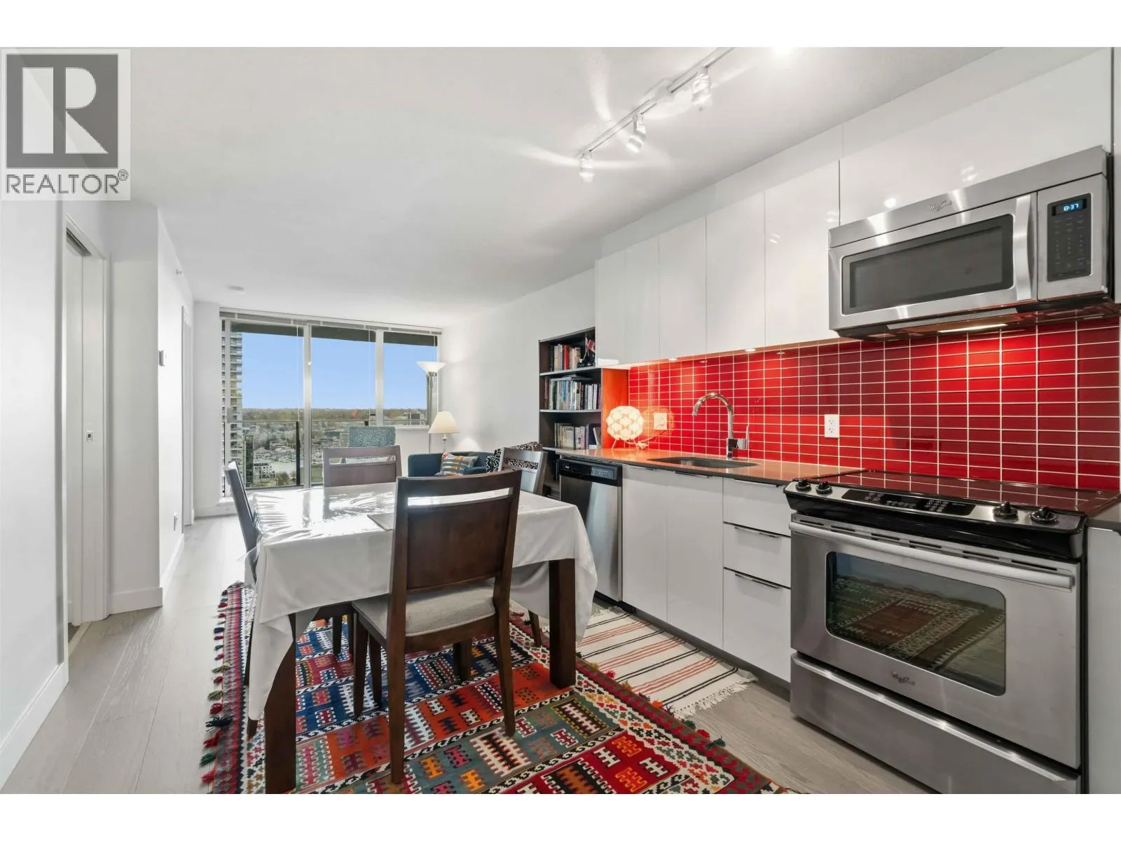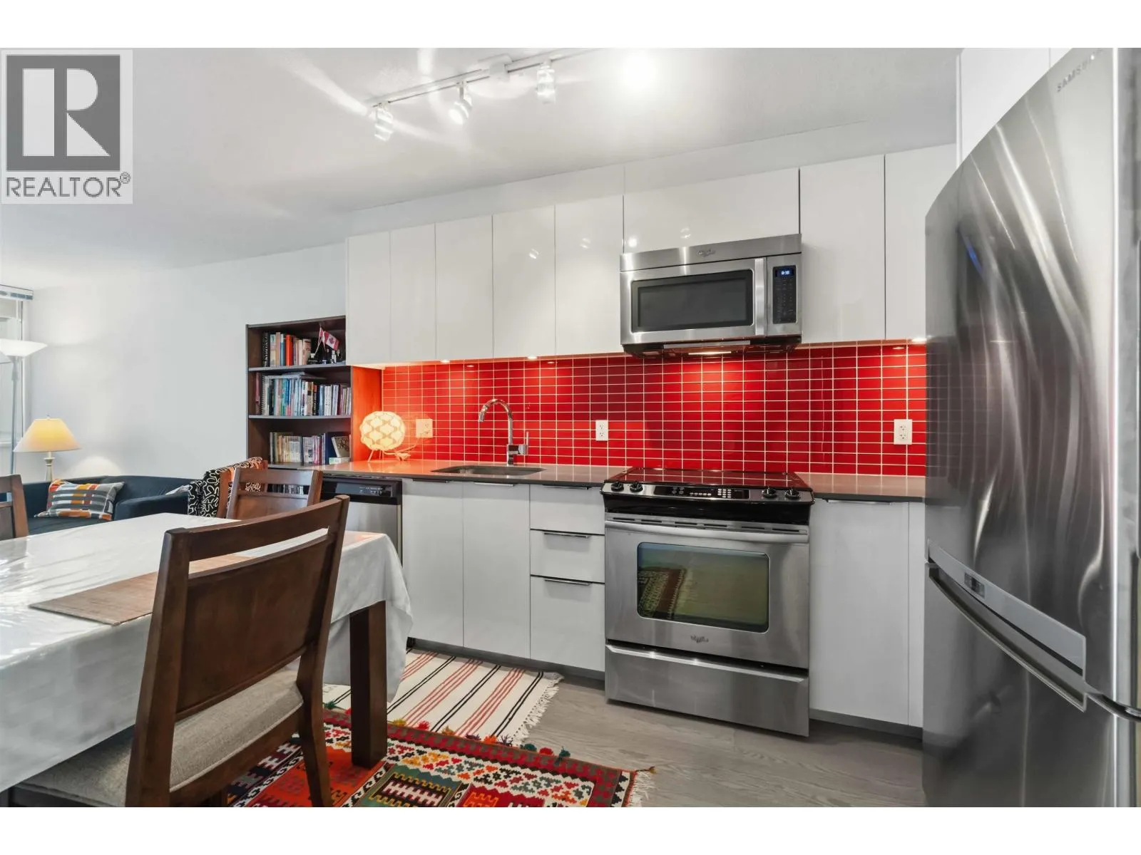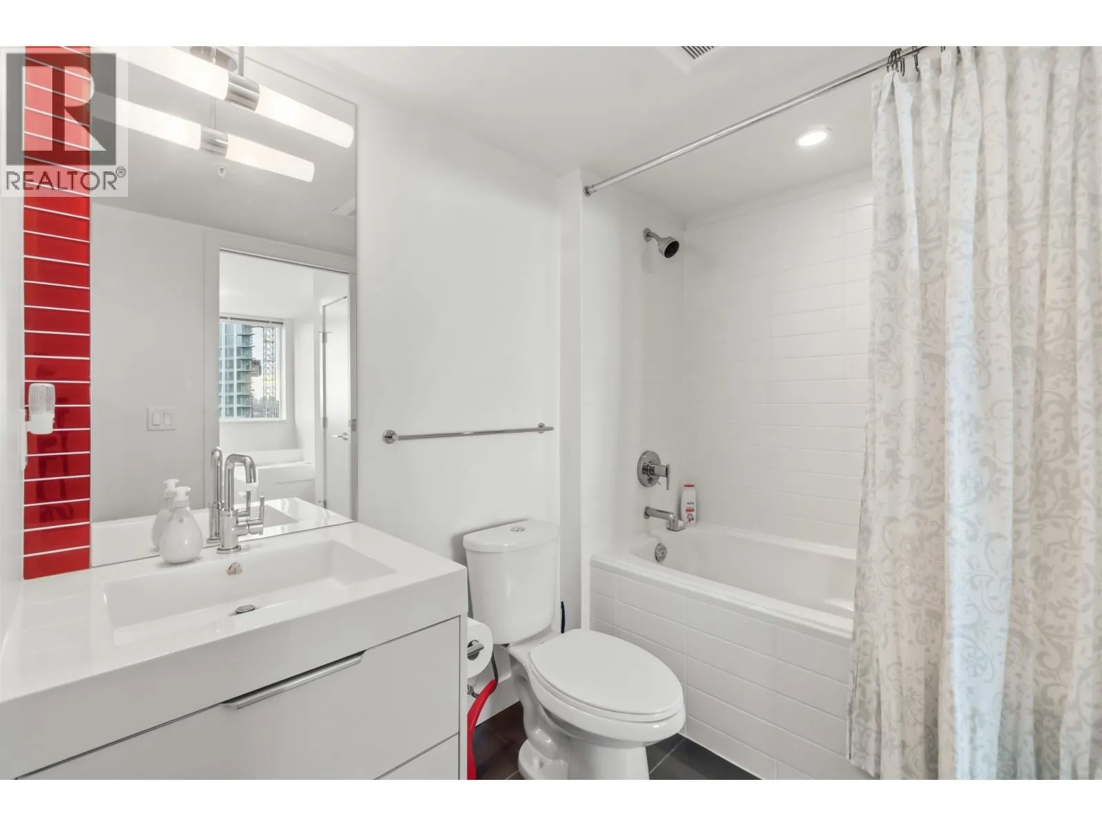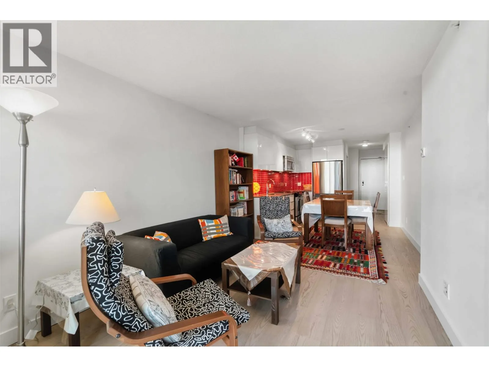 The Rolston Refined Downtown Living, Sophisticated 1 bed, 1 bath residence offering a thoughtfully designed layout and private balcony with open views of False Creek and the marina from both the living area and primary bedroom. Sleek contemporary kitchen appointed with quartz countertops, high-gloss soft-close cabinetry, glass tile backsplash, and premium Samsung stainless steel appliances. Versatile flex space ideal for a home office. Residents enjoy an impressive west-facing rooftop terrace with panoramic English Bay views, outdoor lounge, and BBQ areas, perfect for entertaining. 1 secured parking included. No storage locker. Steps to Yaletown, the Seawall, cafés, fine dining, shopping, and transit. First Open Sat Mar 07th 2-4pm. (id:27476)