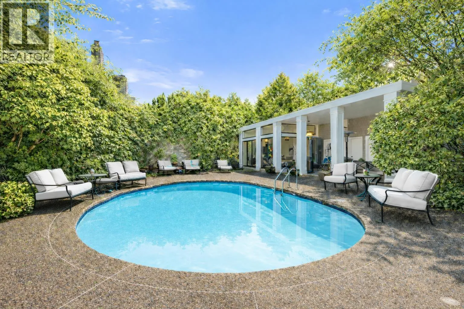 An exceptional offering in prestigious First Shaughnessy. This elegant home sits on beautifully landscaped estate grounds designed for the best of outdoor living and entertaining. The private retreat features its own swimming pool, cabana, glass-enclosed gym, pool bath and shower, and generous outdoor gathering spaces. Inside are gracious principal rooms with garden outlooks, a well-appointed kitchen which opens seamlessly to the outdoor living areas, three bedrooms up including a serene primary suite with marble ensuite and walk-in closet, and a lower level with space for guests, a rec-room, office, wine room and storage. Completing this unique property is a double garage with artist studio above, a perfect finishing touch to this truly special First Shaughnessy residence. (id:27476)