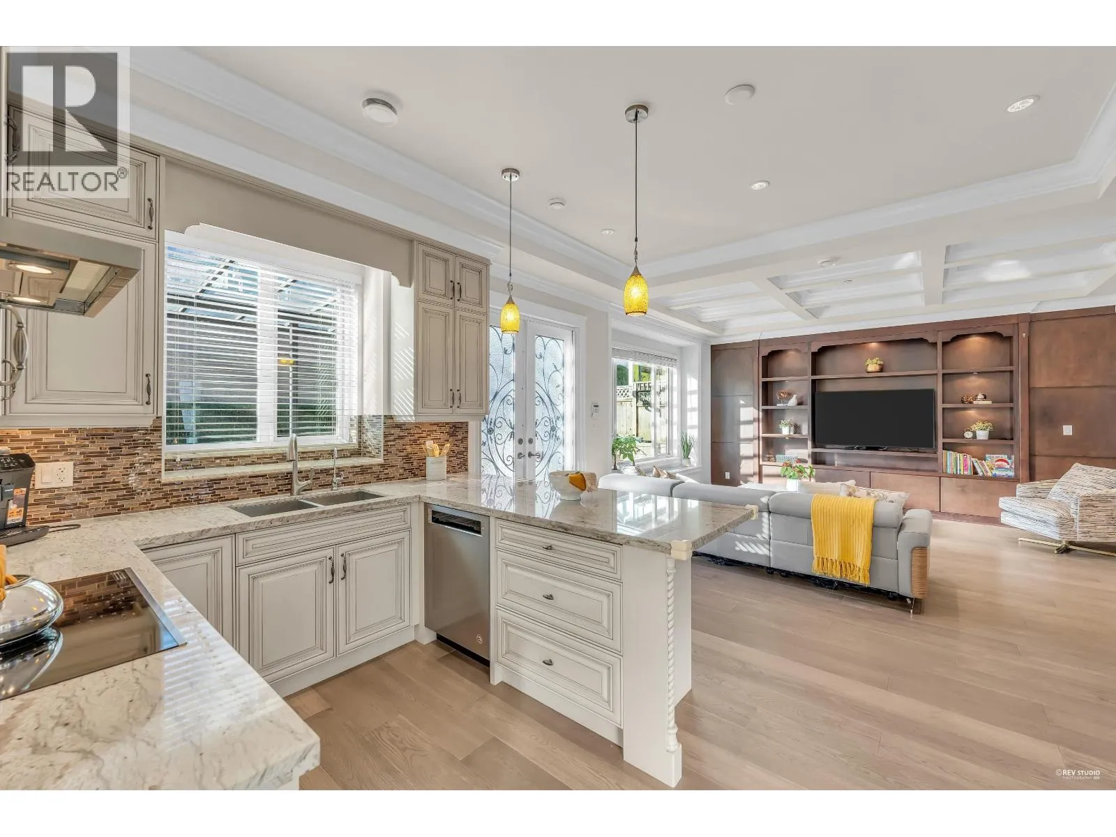 Experience elevated West Side luxury in this exquisite Arbutus residence, where refined design meets breathtaking views. This impressive home located on the higher side of the street offering over 4300 sqft of elegant living space with 6 spacious bdms and 7 bthms. Expansive windows frame serene Mountain and city views, filling the home with natural light. Enjoy sunsets from the private balcony and rooftop deck or even from your bdm. Inside, it showcases superior craftsmanship with rich flooring, custom millwork, and designer lighting throughout. The gourmet kitchen features premium appliances, sleek cabinetry, and a generous island. Luxurious living and dining areas flow effortlessly, highlighted by a cozy fireplace and refined finishes. The primary suite offers a spa-inspired ensuite and a tranquil retreat with stunning outlooks. Basement offers 9' ceiling entertain room, sauna, wet bar, home theater and 2 bdms 2 bthms. Radiant heat, A/C, HRV, 4-car garage etc. Central location convenient yet quiet. True gem! (id:27476)