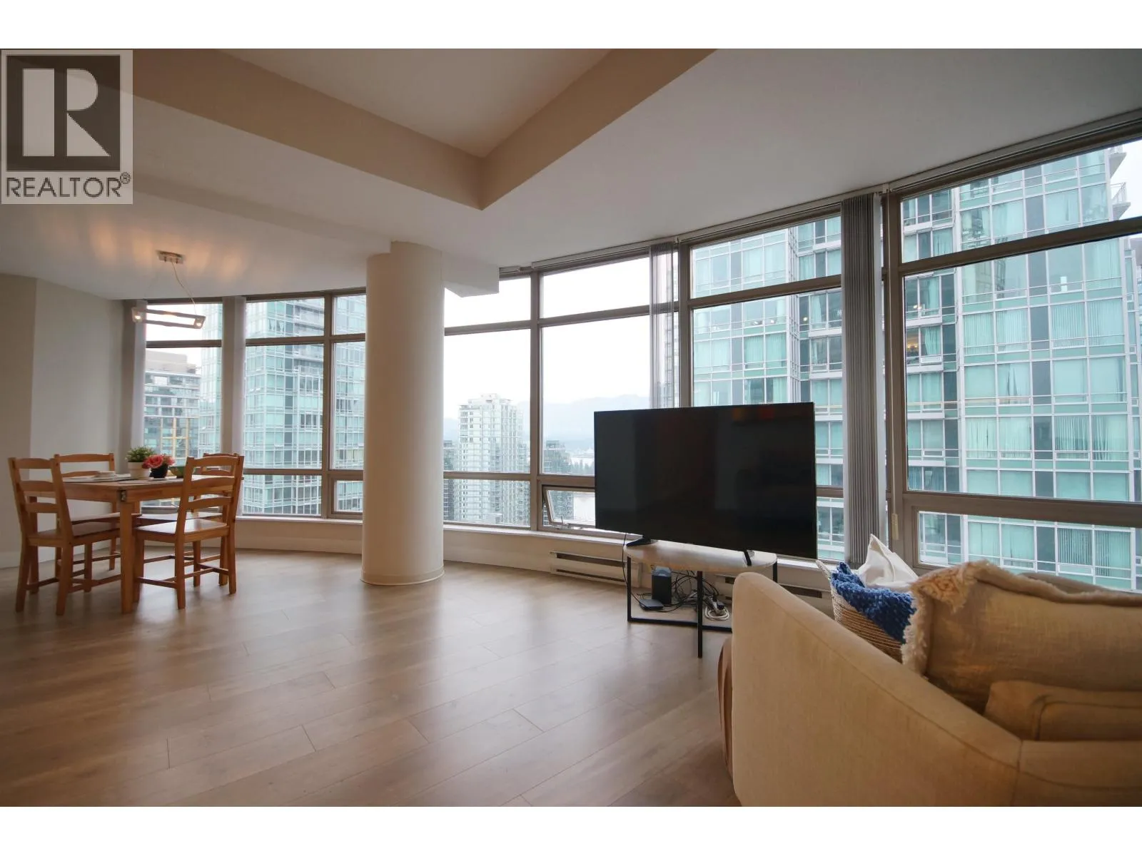The Palisades located on Alberni Street is located walking distance to Robson Street shopping, restaurants, Stanley Park, Marinas and more! This 888sqft corner 2-bed, 2-bath + den has much to offer! The open living and dining room has a curved floor-to-ceiling window for a great view of Coal Harbour and some water view. The kitchen features white cabinets, granite countertops with a pass through window. The bedrooms are both decently sized with carpets. Building features 24-hr concierge, exercise room, library, meeting room, elegant lobby with koi pond, and Japanese inspired Zen Garden. 1 parking and 1 storage locker included. (id:27476)