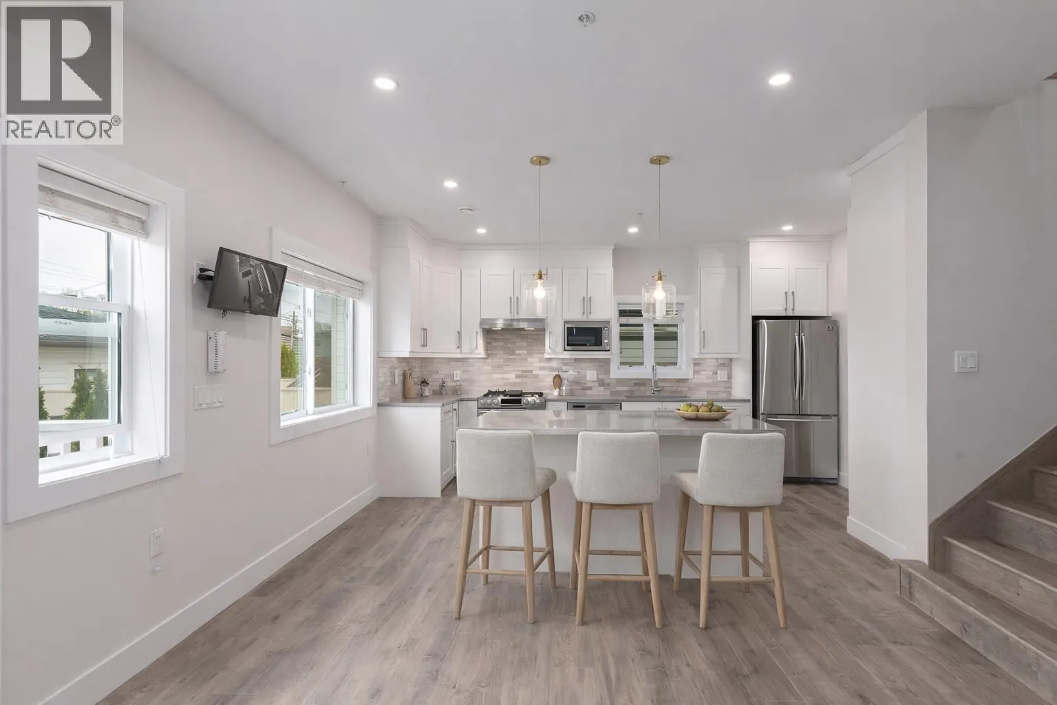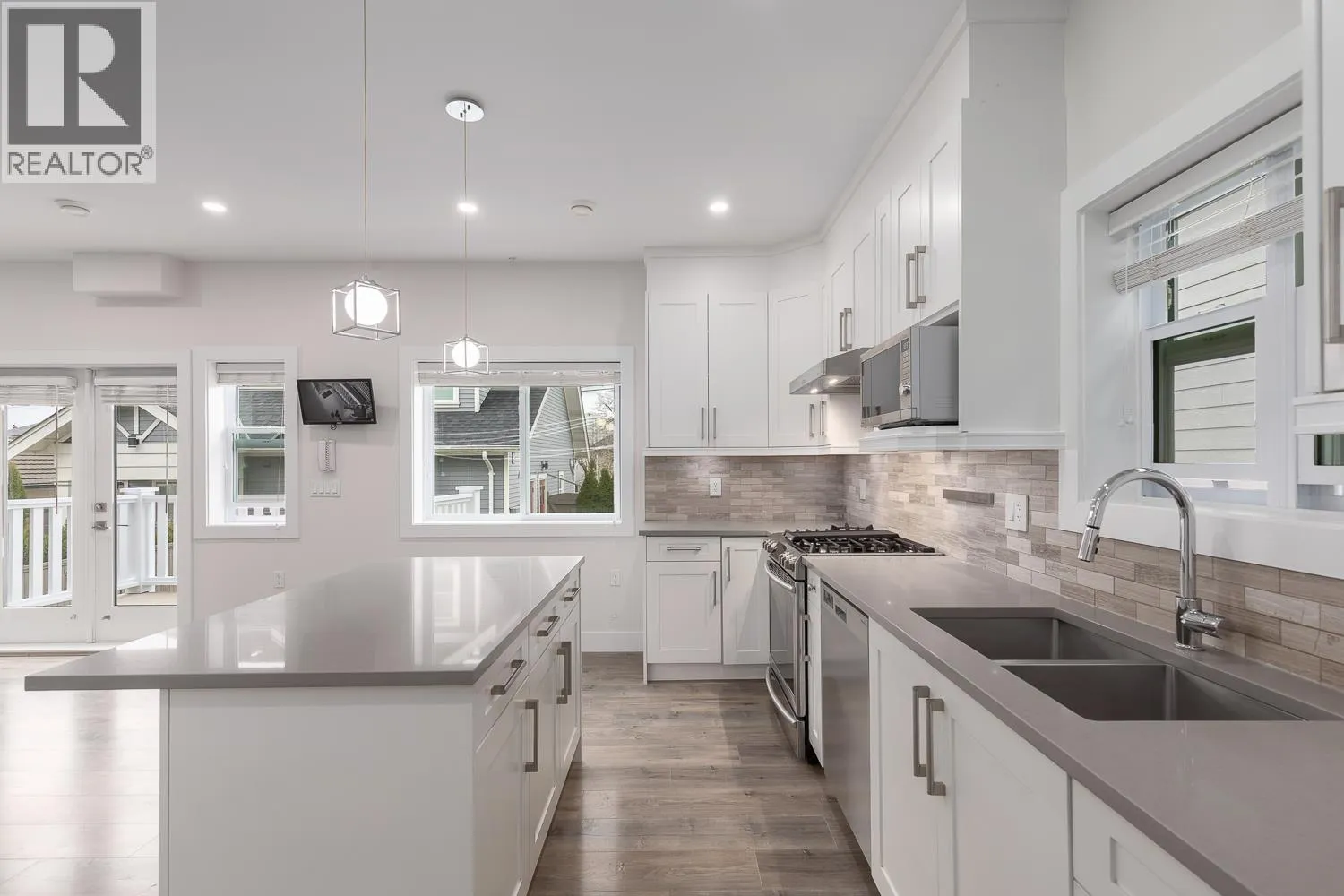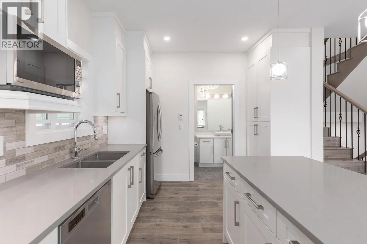 This thoughtfully designed back half duplex home features an open concept layout, quartz countertops, stainless steel appliances, in floor radiant heating, and elegant bathrooms throughout. The upper level includes a spacious primary bedroom with ensuite, two additional bedrooms, a full bathroom, and laundry. Enjoy comfortable living spaces on the main floor with a large balcony over looking the backyard. BONUS- a full legal basement suite with separate entry, ideal for rental income or extended family. A great opportunity you will not want to miss! (id:27476)