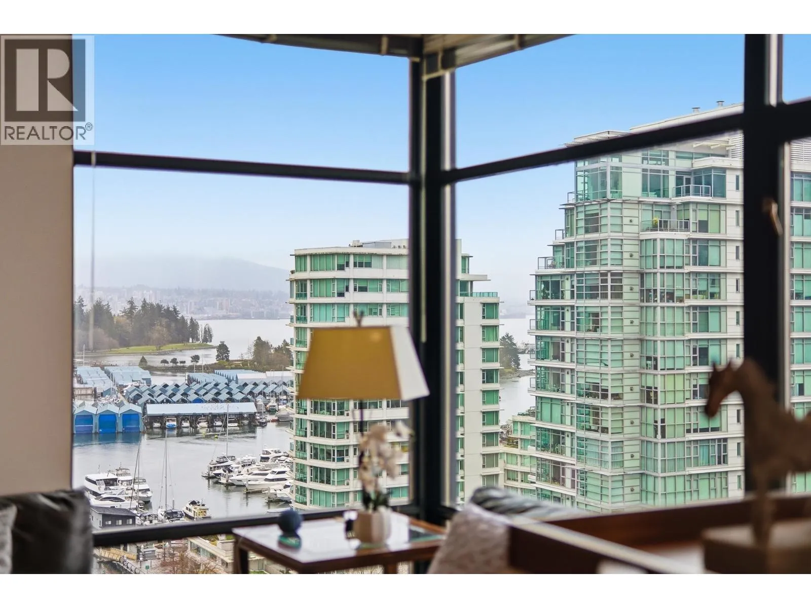 Rare Water-Front unit, right beside Stanley Park. Welcome to "Lumiere Residences"! This bright corner unit offers 2 bedrooms, 2 bathrooms plus a den, along with 1 parking and 1 storage locker. Your luxury living just steps from Stanley Park and Robson Street. Thoughtful layout, bedrooms on opposite sides for added privacy. Featuring floor-to-ceiling windows with stunning water views, a double-sided fireplace, California shutters, granite countertops, Bosch appliances, and air conditioning for year-round comfort. Various amenities include concierge, gym, steam rooms, lounge, billiard room, bike storage, and secure visitor parking. Located in the Prime Coal Harbour location near parks, cafés, and boutique shopping. Do Not miss out! Pleasure to show! (id:27476)