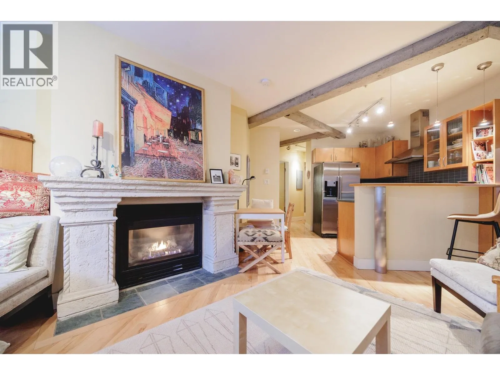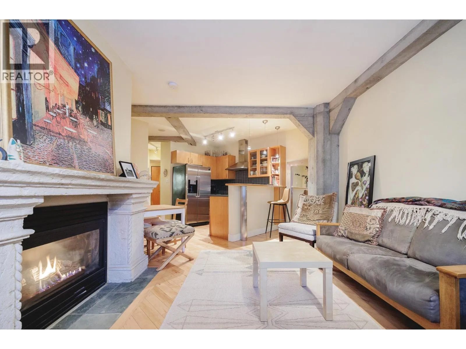 The Murchies Warehouse! One of the city´s most sought-after heritage conversions, this iconic 1912 warehouse was transformed into unique loft residences in 1997. This 548 square ft studio features a spacious open layout with high ceilings, hardwood flooring, exposed concrete posts and beams, and large swing windows that fill the space with natural light. The stunning gas fireplace creates a beautiful focal point in the living area, adding warmth and character. Enjoy unbeatable access to Yaletown´s top restaurants, shopping, parks, the Seawall, Canada Line, and Aquabus to Granville Island. Includes 1 storage locker, and the current owner rents a parking stall nearby that may be transferable. (id:27476)