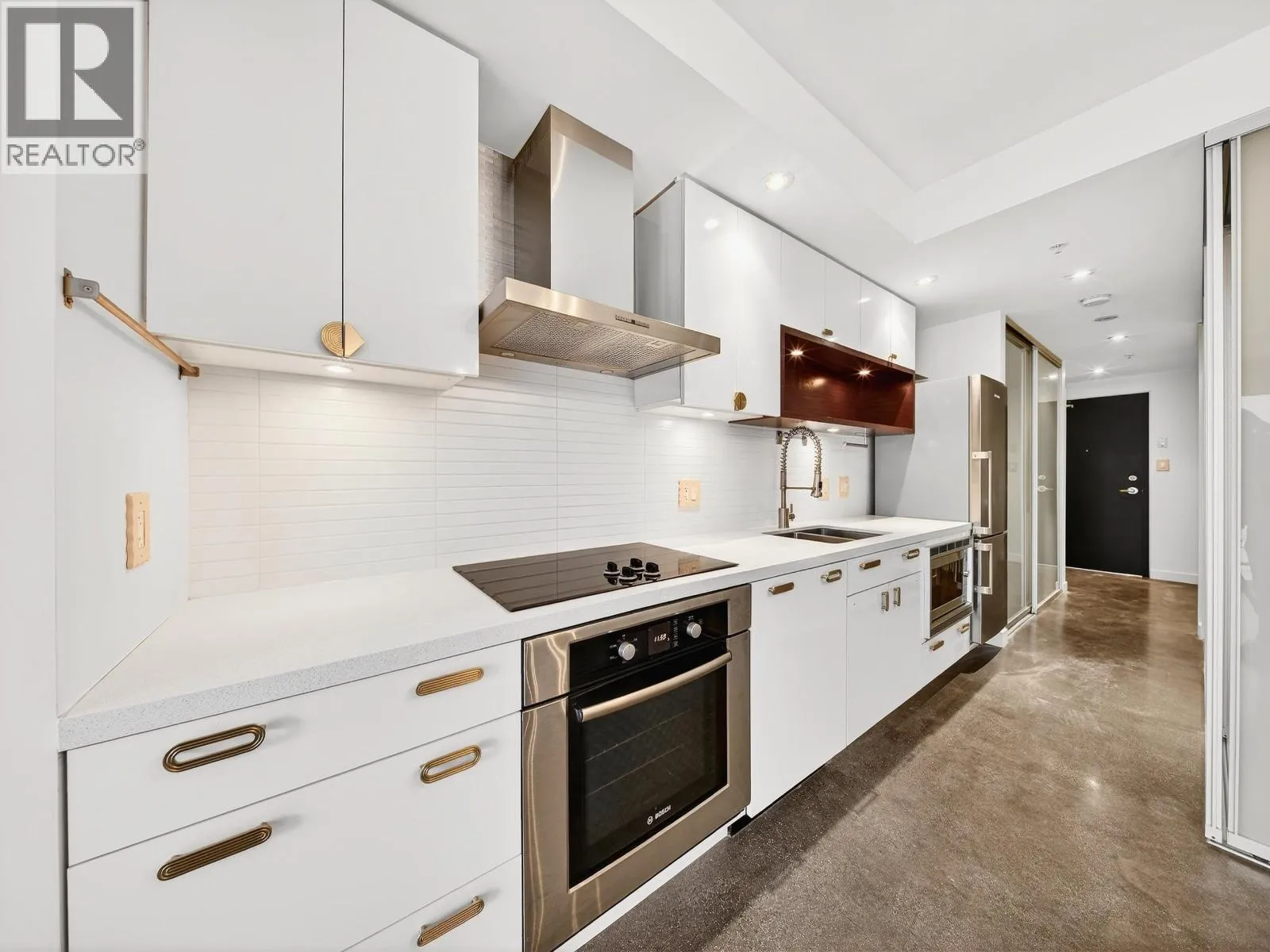 Don't Miss! Freshly painted sub-penthouse concrete corner unit on the quiet side of the building overlooking a vibrant community garden hosting markets, theatre and live music. Built in 2009 with 2 elevators and a proactive strata with a healthy CRF. This bright home features $25K in California Closets upgrades, a chef´s kitchen with Bosch & Blomberg appliances, double undermount sink, in-suite laundry, spacious bath with walk-in shower and a bedroom with frosted retractable glass panels that fits a king bed. Enjoy the private 90 square ft deck. Includes parking, locker and bike room access. Gym, workshop, amenity room and large 2nd floor patio. Pets and rentals allowed. Walk to Olympic Village, Emily Carr, VCC and future UBC rapid UBC rapid rail. Low strata fees. Novus internet ready! (id:27476)