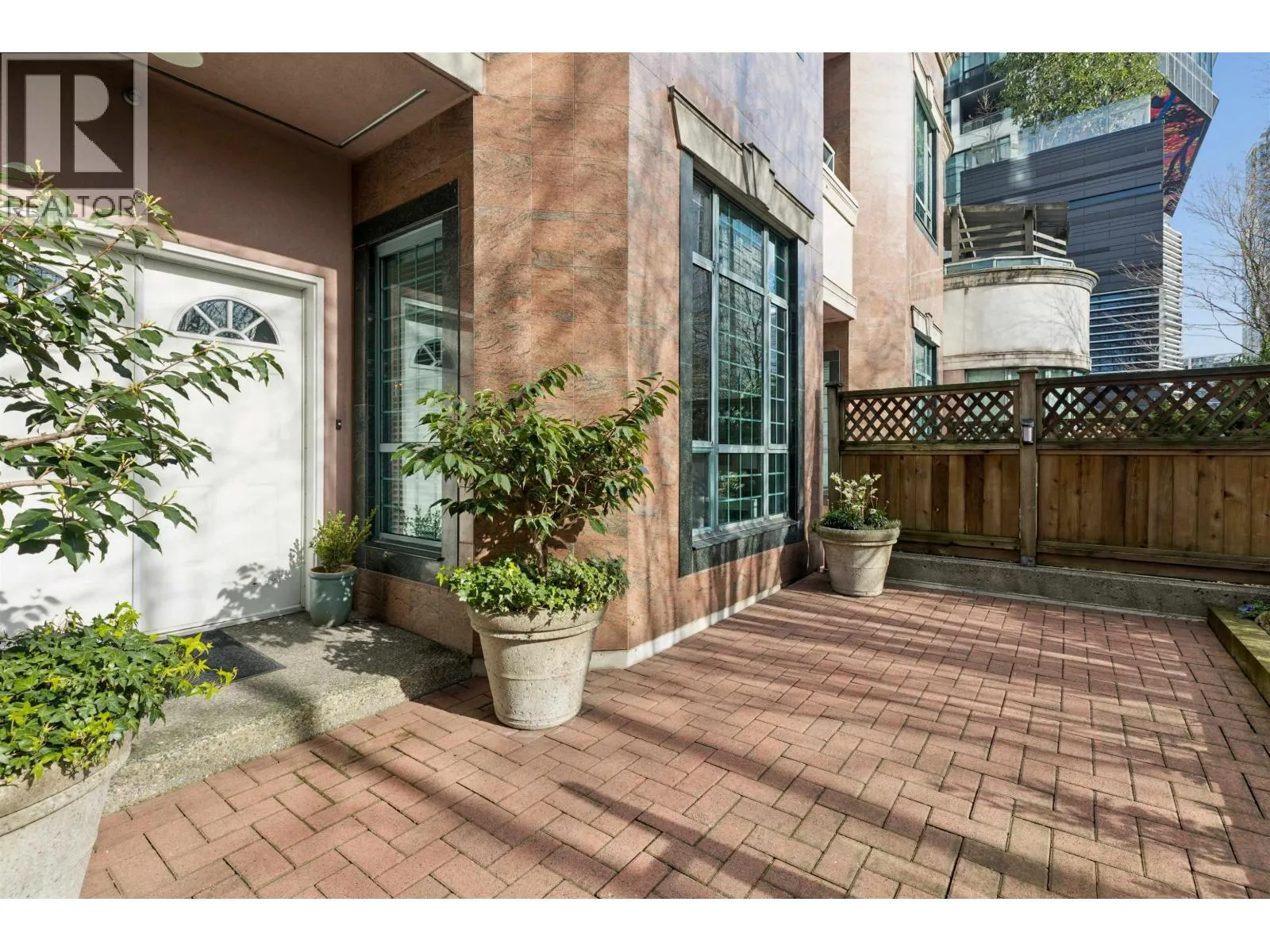 Rarely available New York-style two-level townhouse at Rosedale Gardens, elevated above street level with a gated entry for exceptional privacy in the heart of downtown. The spacious main floor features soaring 10-ft ceilings, an open-concept layout, and a chefs kitchen with integrated appliances designed for easy entertaining. Upstairs, the generous primary bedroom retreat offers a true sense of space rarely found in city living. Enjoy a large, sun-filled patio perfect for indoor-outdoor living. Complete with two parking stalls and a storage locker, plus access to hotel-style amenities including concierge, pool, and gym-all just steps to Robson Street, Yaletown, the Seawall, and Vancouver's best shopping and dining. OH Sat 2-4PM (id:27476)
