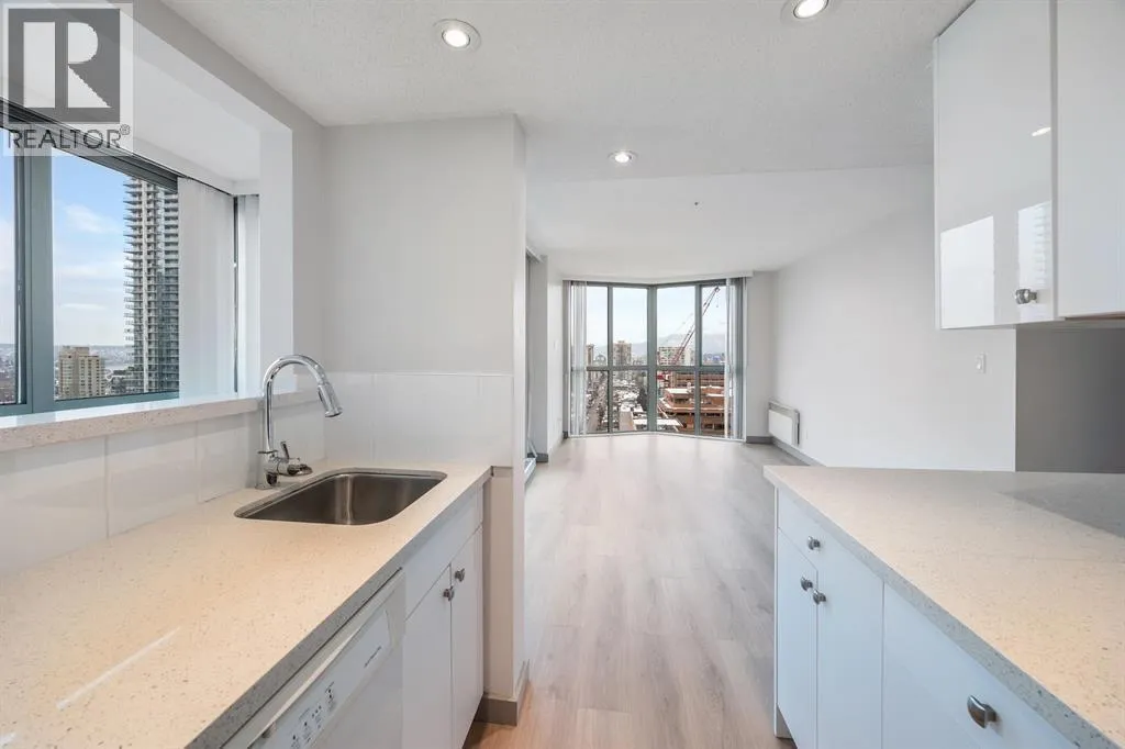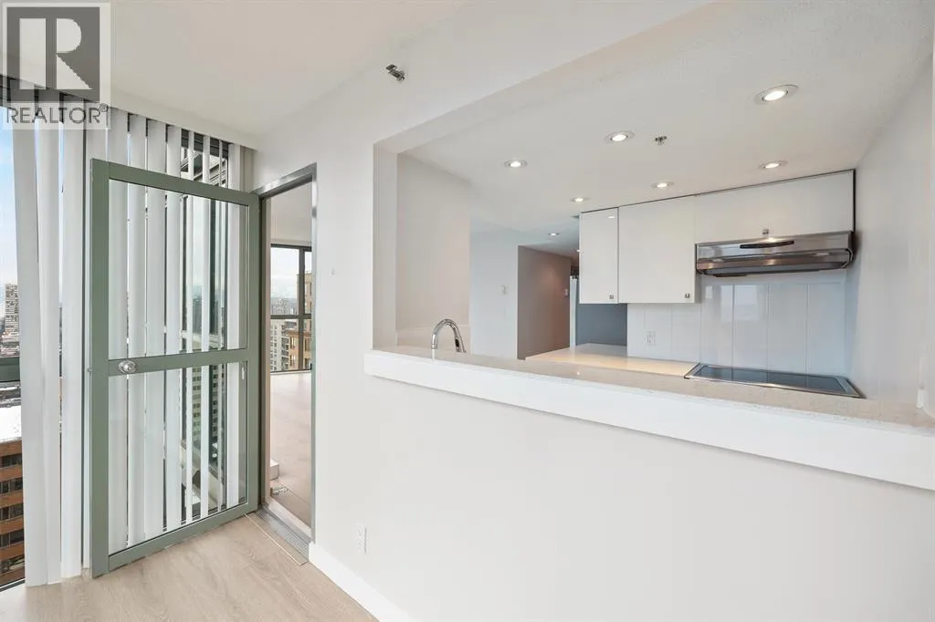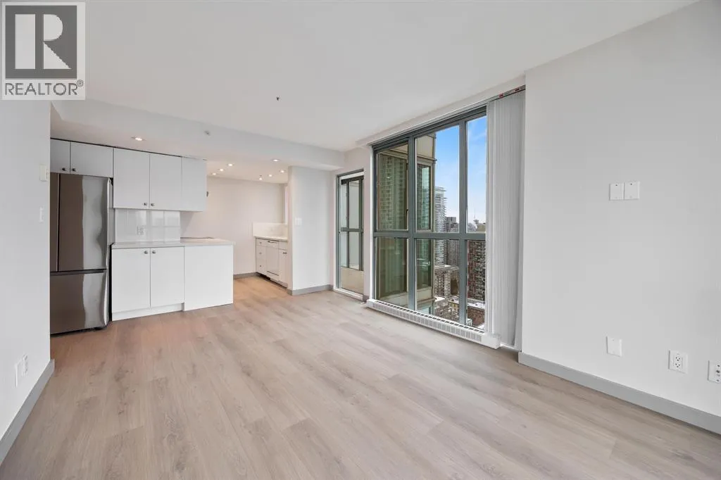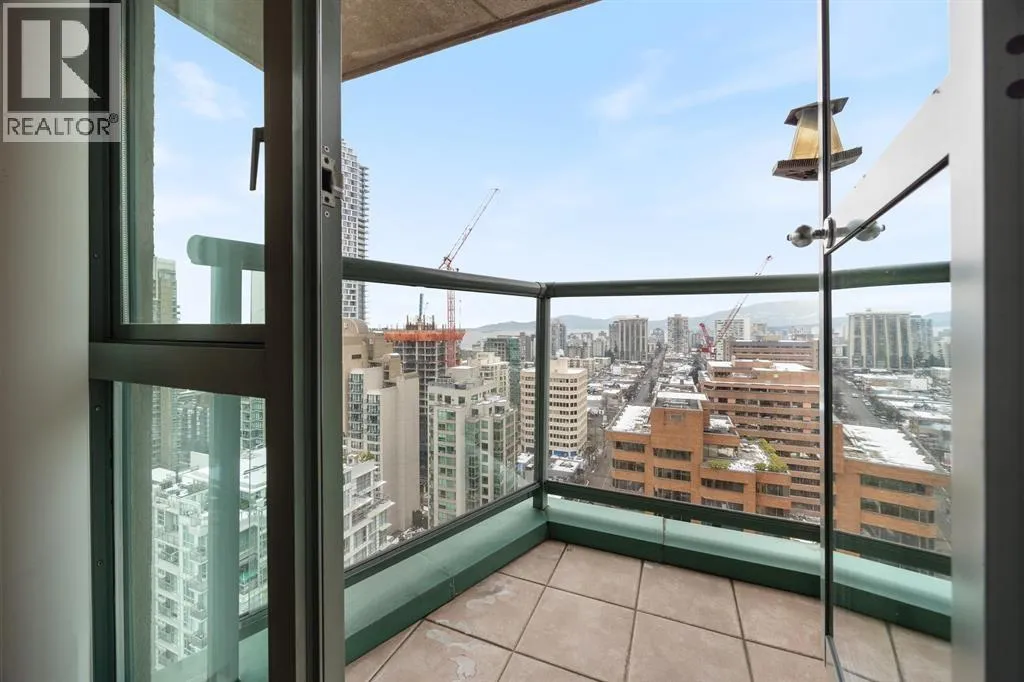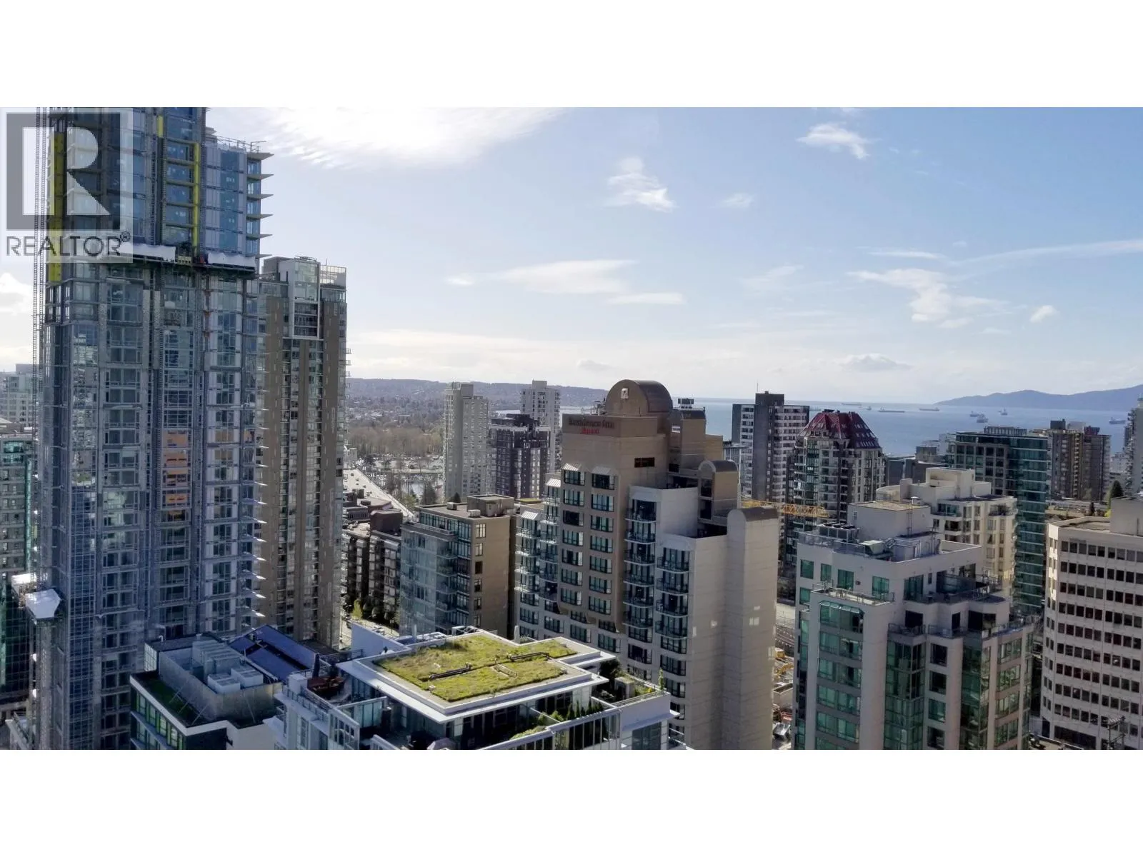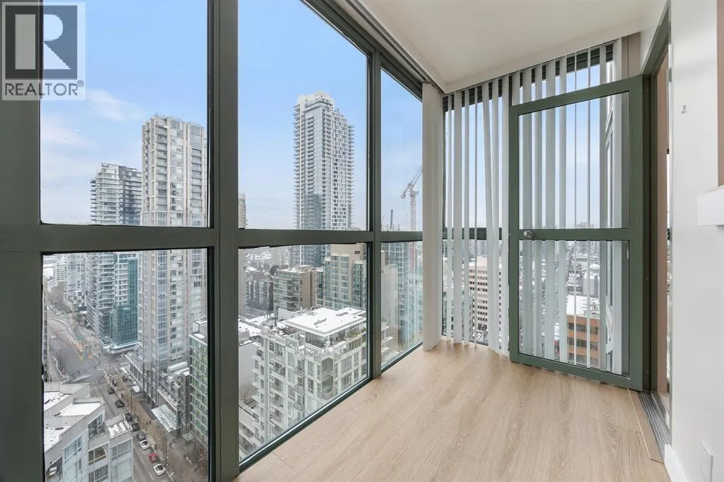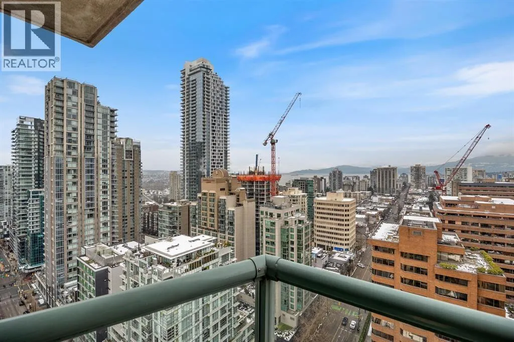 Experience the Sub-Penthouse lifestyle: 27 stories up, this exclusive 2-bed, 2-bath plus sunlit solarium residence offers panoramic English Bay and Granville Bridge views perfect for entertaining and daily awe. The primary bedroom opens to a balcony, ideal for morning coffee, while every room enjoys ocean vistas. Move-in ready with fresh paint and laminate flooring. Steps to the upcoming pedestrian-only Granville St district during FIFA, plus easy access to shopping, False Creek ferries, and transit. Enjoy resort-style amenities including a large parking space, bike locker, storage locker, pool, hot tub, and gym. EV charging on site and repiping already paid. Walk to Granville & Yaletown, or jog the Seawall-city living at its best. No dogs permitted. (id:27476)